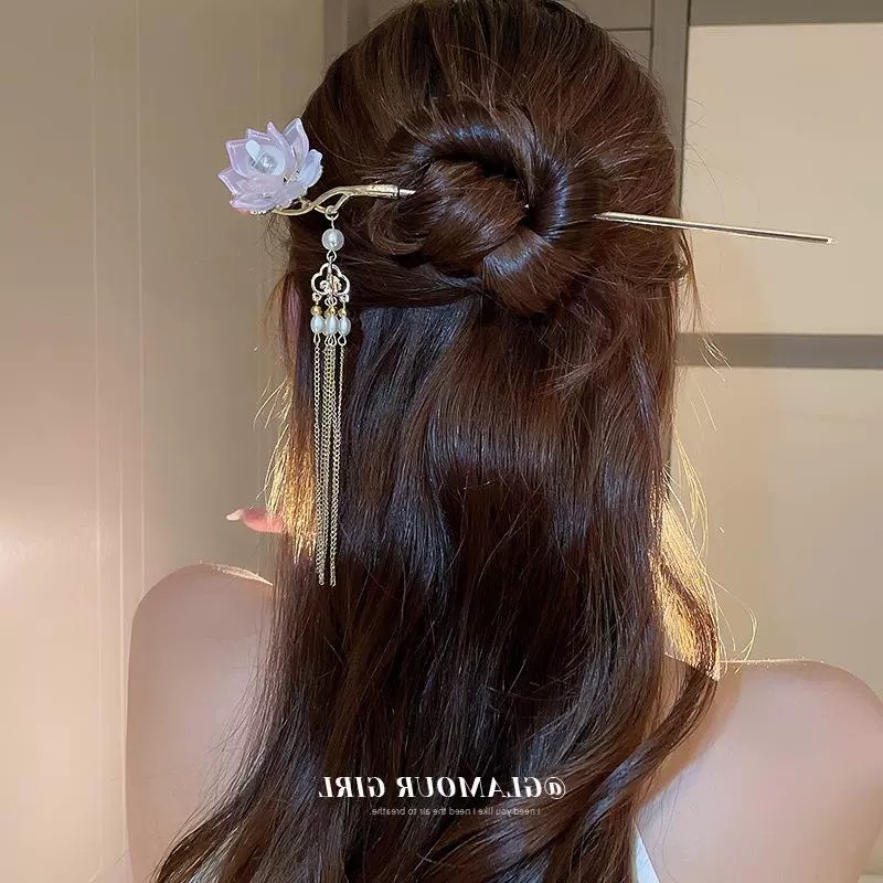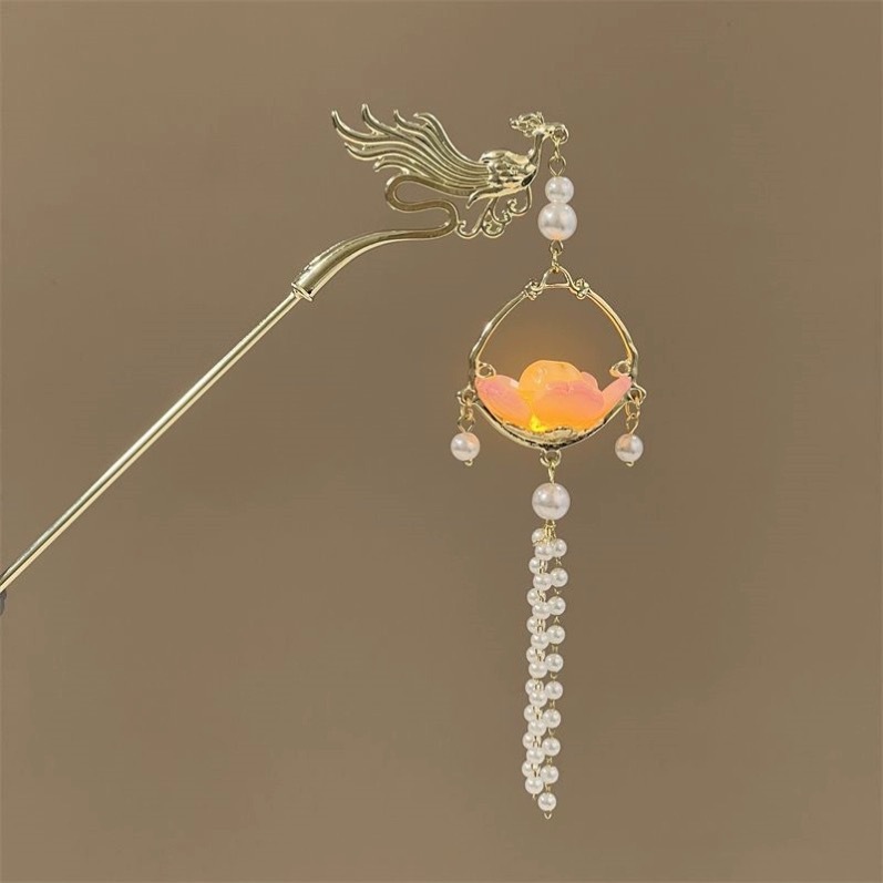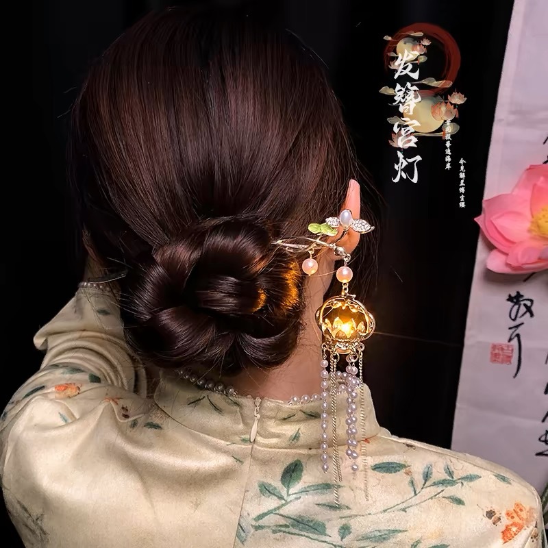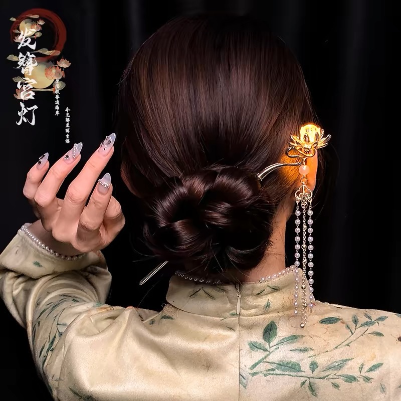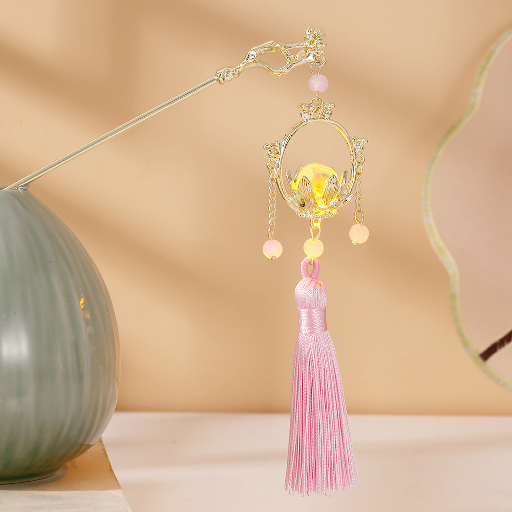 会发光的古风莲花灯笼发簪小仙女汉服盘发流苏步摇簪子发饰批发