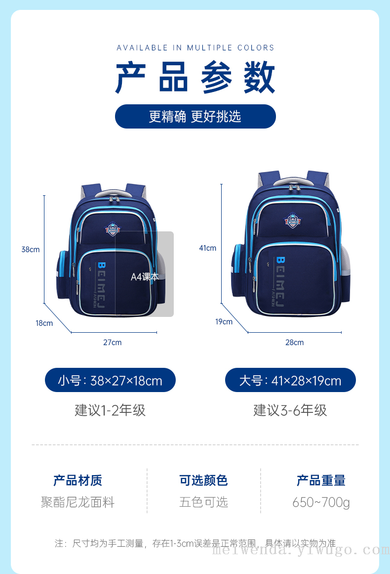 美文达箱包厂 位于“书包之都”湖南省邵东市。从事箱包制造行业近20年,生产能力强,员工500余人,设备400台套,日均生产书包4000个。产品畅销俄罗斯、南非、欧美、东南亚等几十个地区。 我们期待与您携手共进! 支持大量批发、少量混批、一件代发 支持来样加工、打样定制、OEM、来图定制、定制LOGO 长期库存,源头工厂,一手货源 欢迎实体商家、电商平台卖家、捐赠机构、培训学校咨询合作 质量保证,款式新颖,价格便宜,欢迎来电咨询!