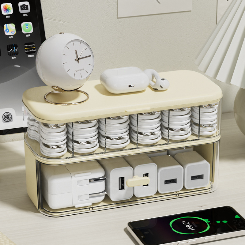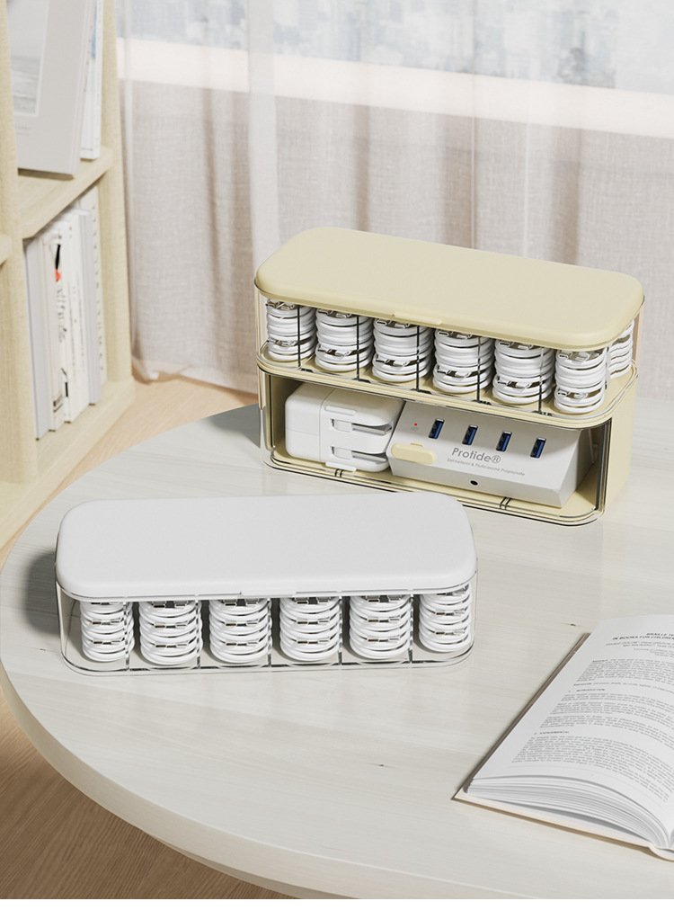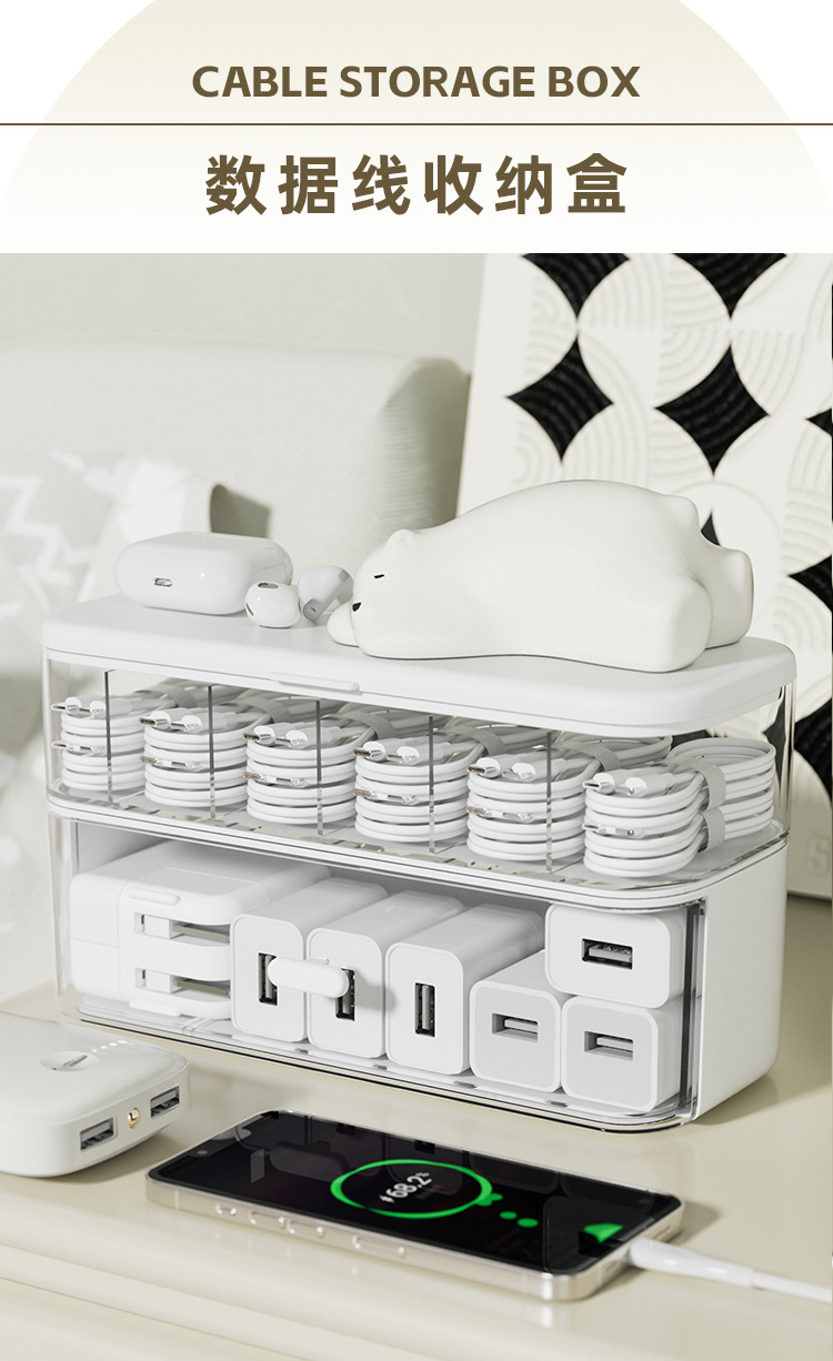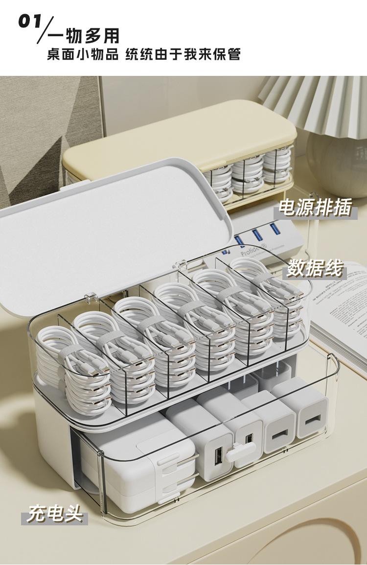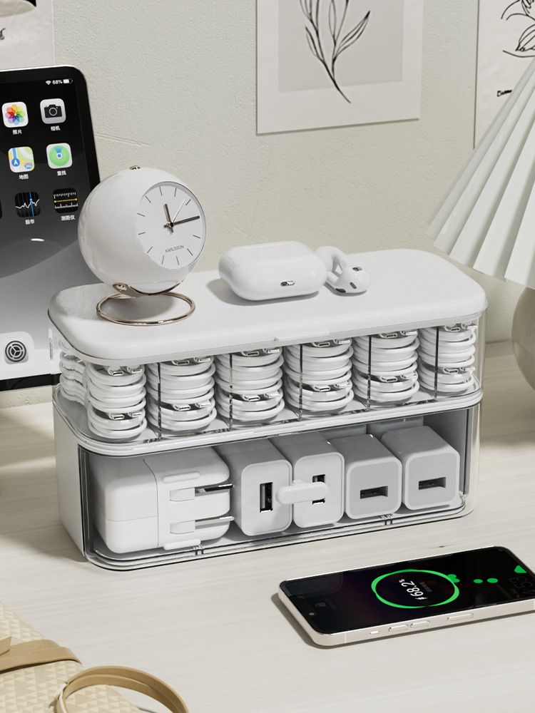 桌面数据线收纳神器手机充电器充电线整理分格绕线器电源线收纳盒