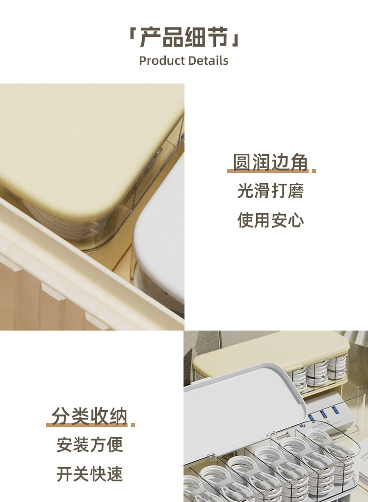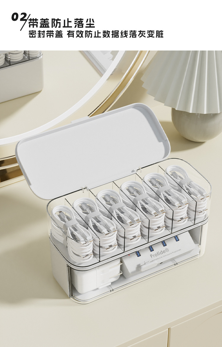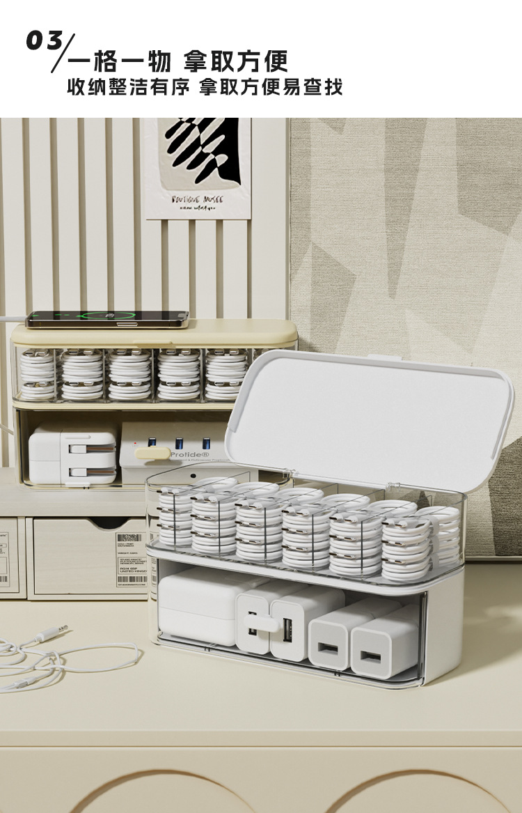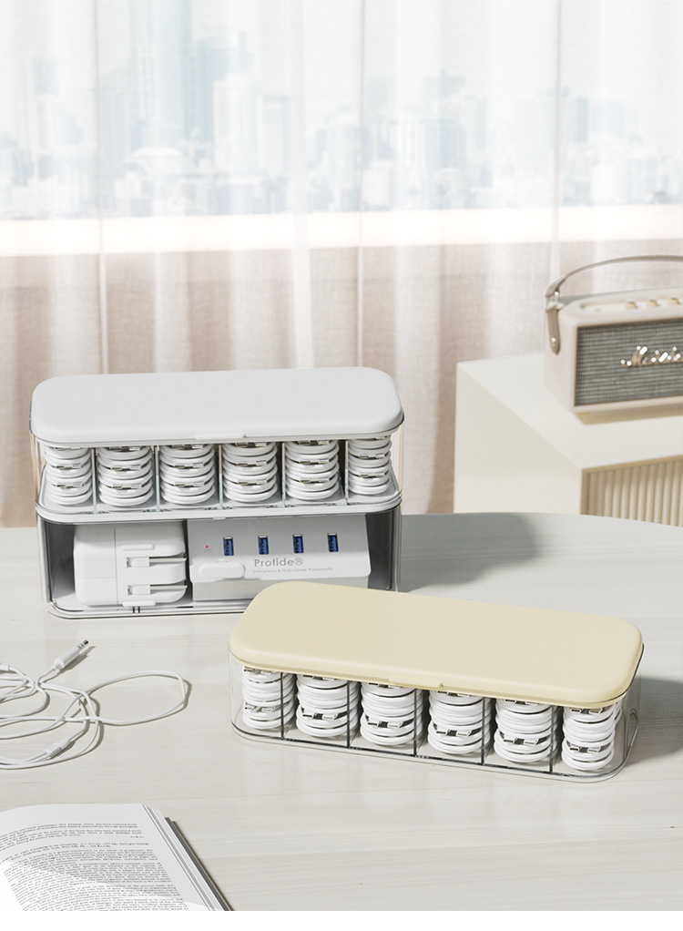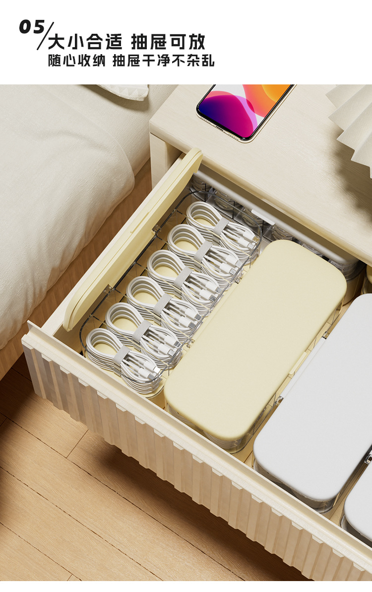 桌面数据线收纳神器手机充电器充电线整理分格绕线器电源线收纳盒