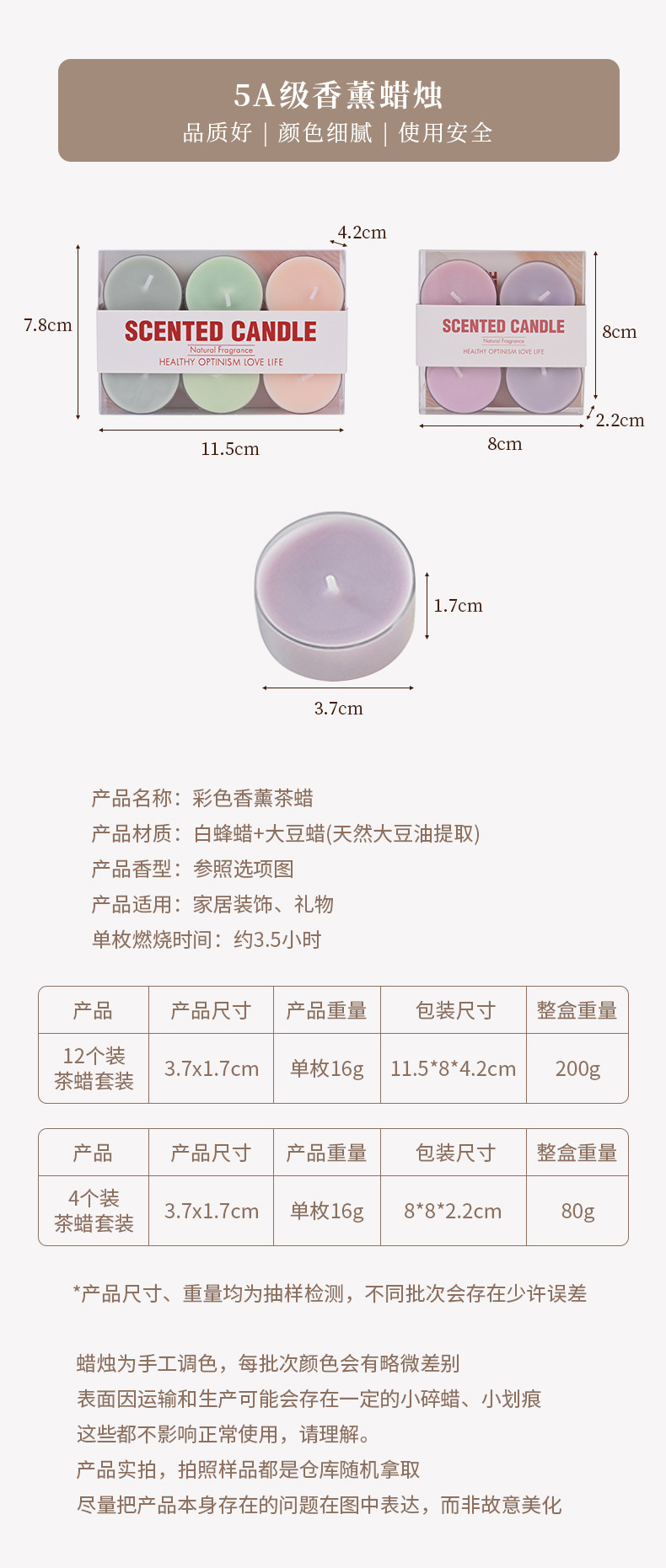 手工圆形小茶蜡氛围感礼物创意香薰蜡烛批发香氛高级感结婚伴手礼