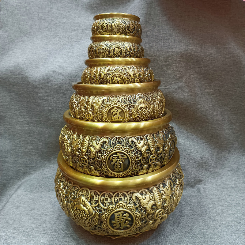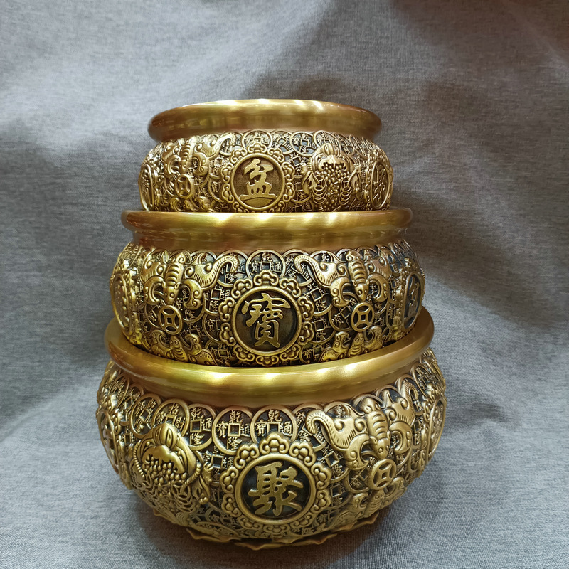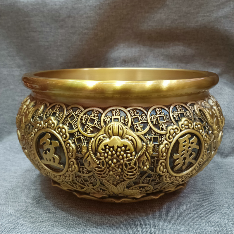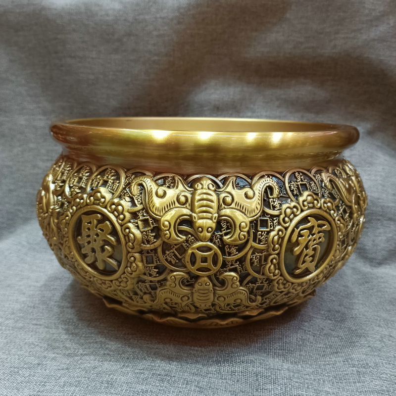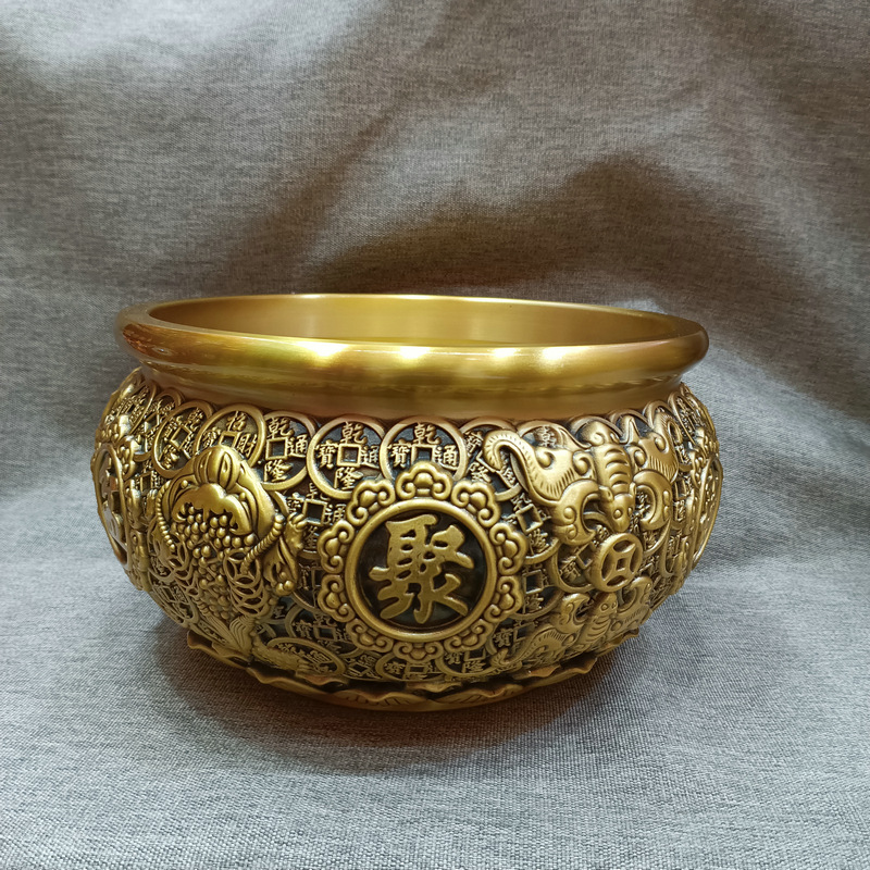 大量批发铜工艺品聚宝盆金钱聚宝盆铜摆件桌面摆件开业铜盆