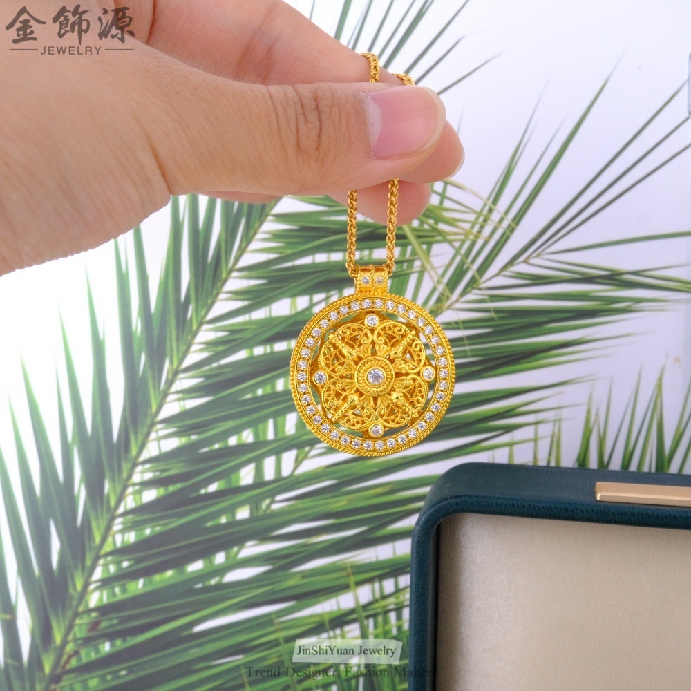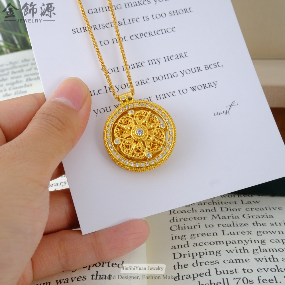 金店同款可转动四方有福镶钻八宝罗盘项链铜镀金古法中式女款首饰