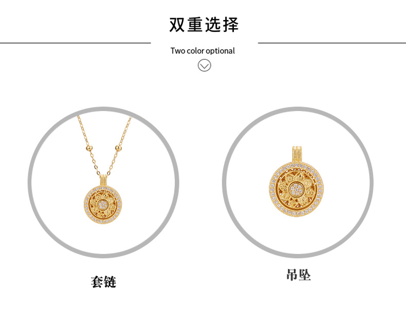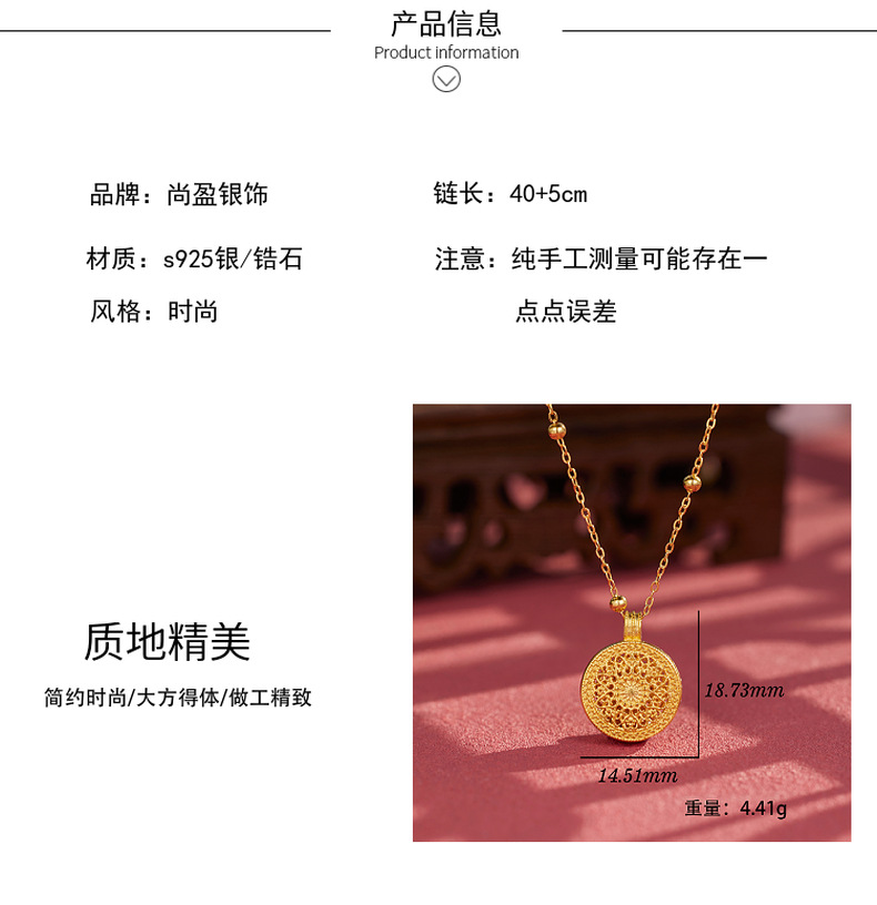 S925纯银新款新中式古法旋转太阳花八宝罗盘吊坠项链民族风锁骨链