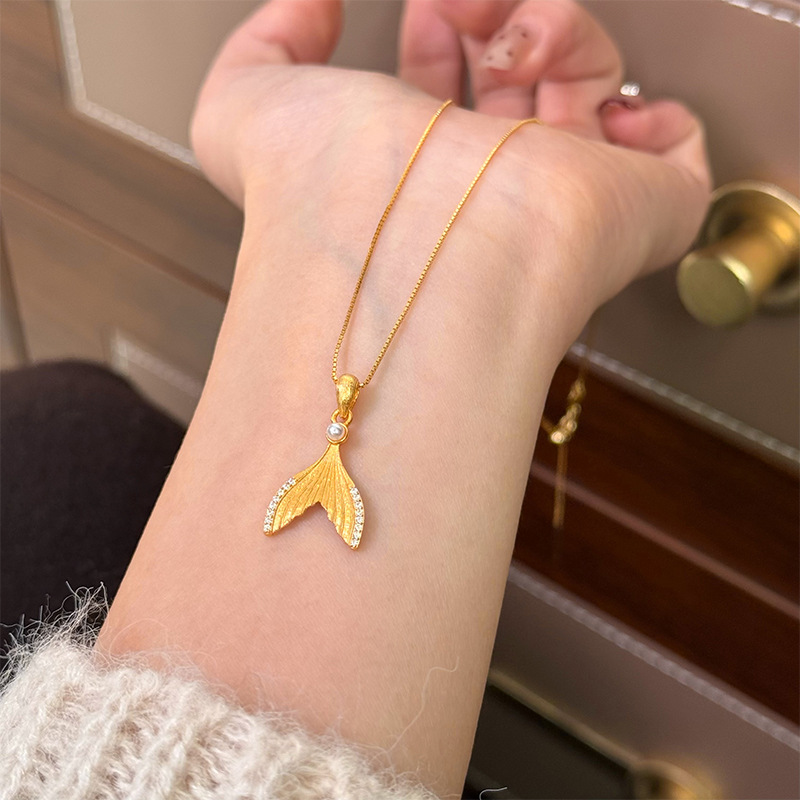 新中式复古时尚精致小巧罗盘通体925银项链轻奢高级感鱼尾锁骨链
