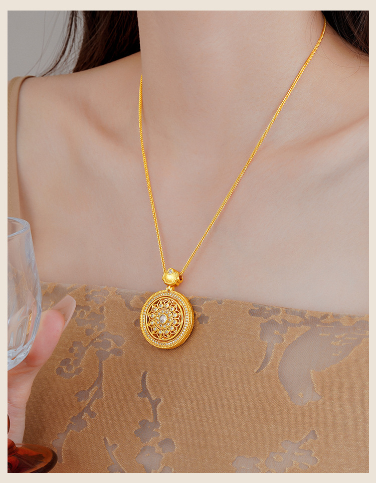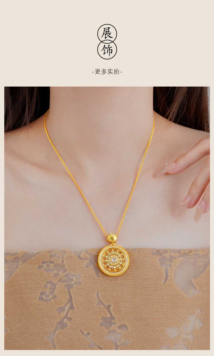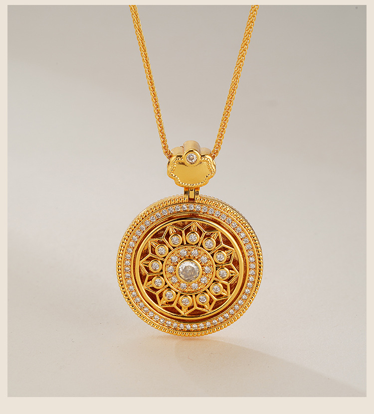 窗花可旋转八宝罗盘项链复古高级感精致时尚小众缕空编织绳饰品