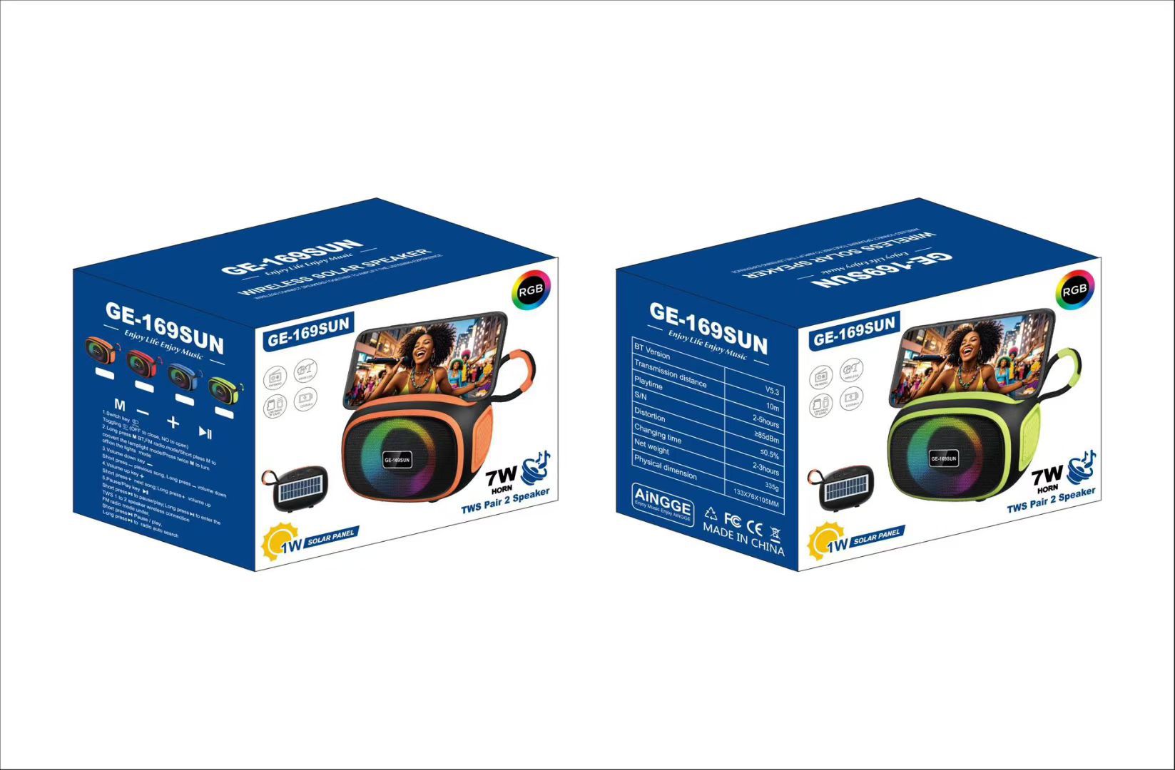 GE-169SUN跨境太阳能蓝牙音箱RGB插卡无线低音炮户外便携式小音响