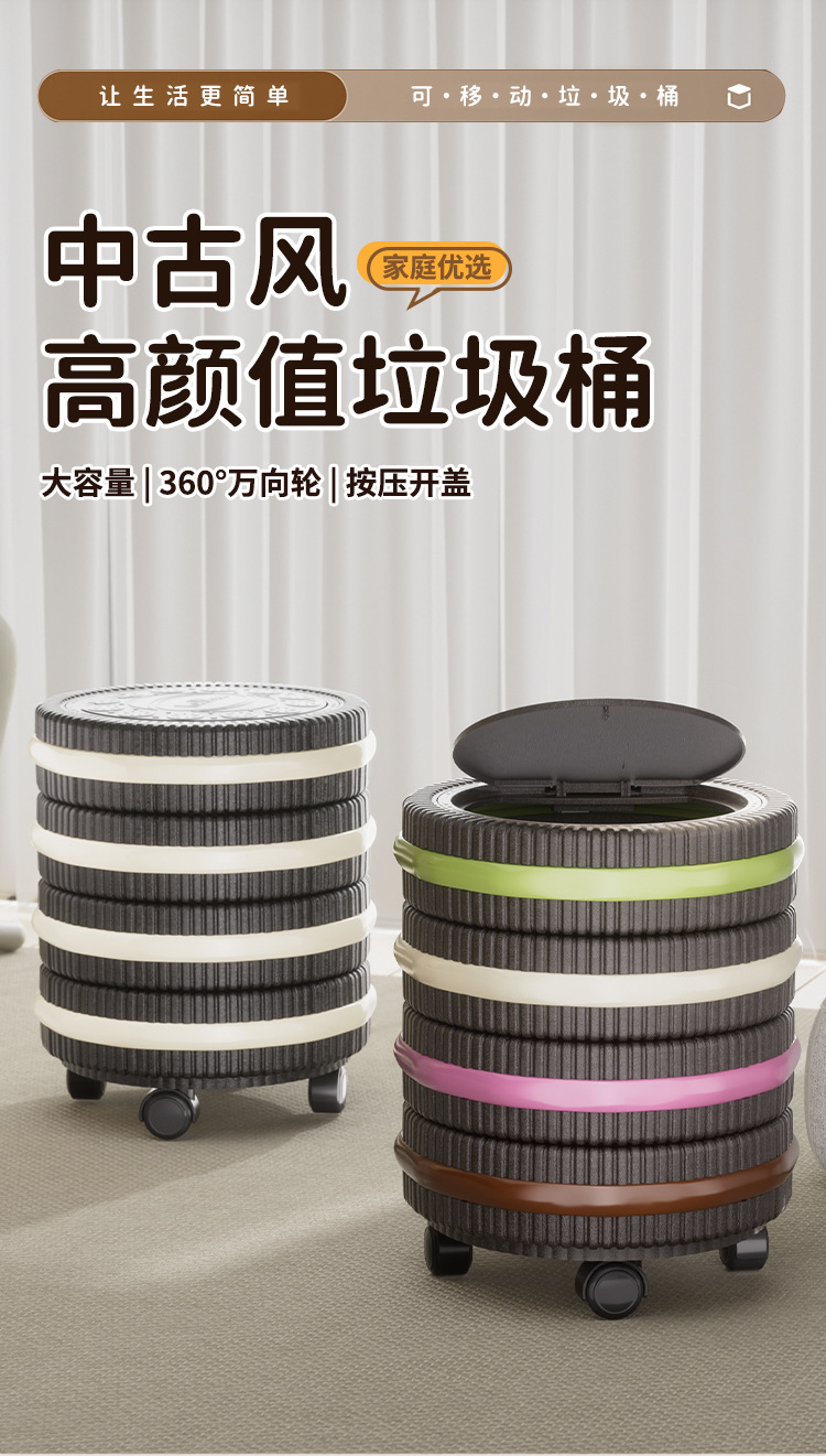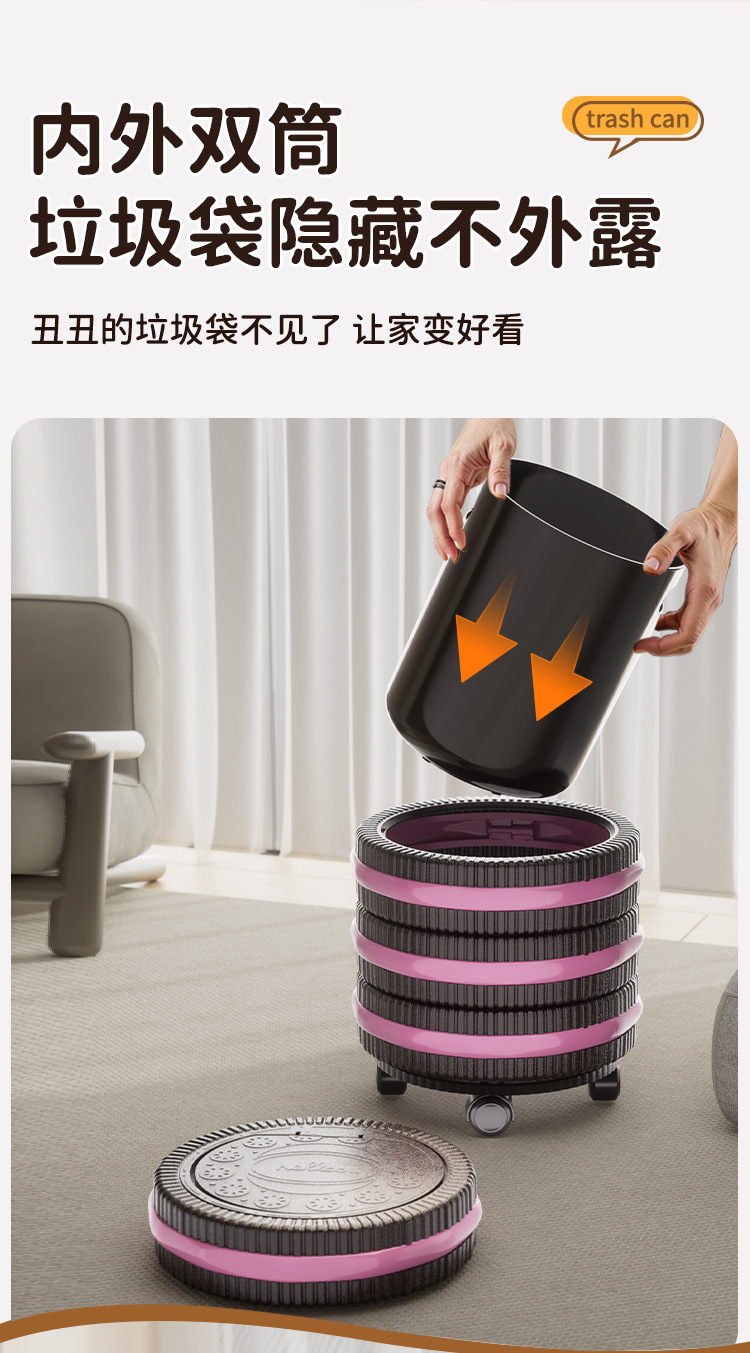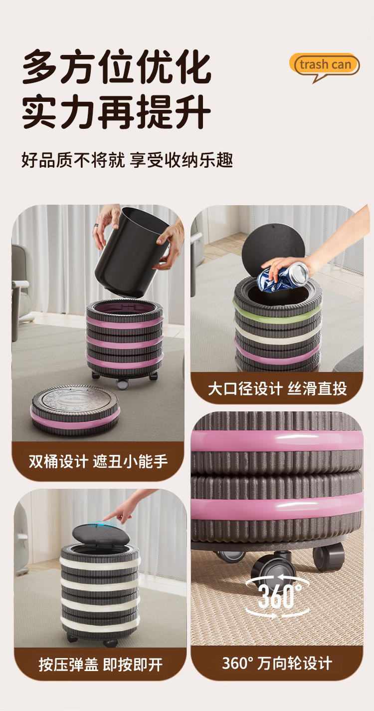 创意垃圾桶家用可移动大容量垃圾收纳桶客厅卫生间高颜值纸篓