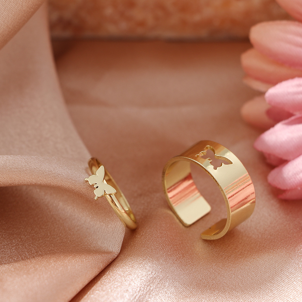 慕尚欧美跨境热销戒指套装2件套创意个性蝴蝶朋克风情侣戒指MS497