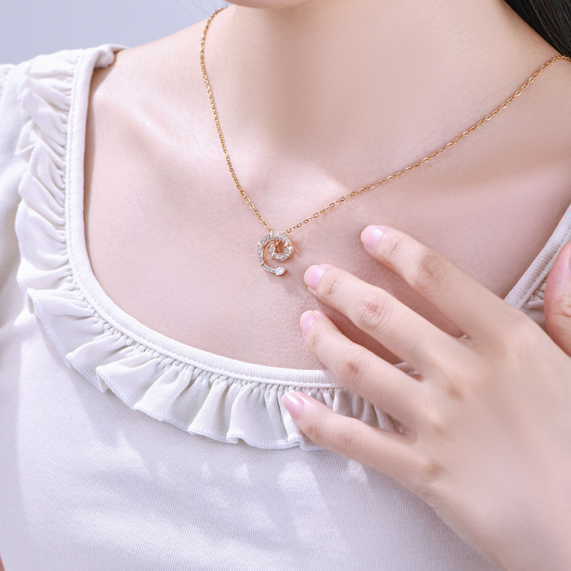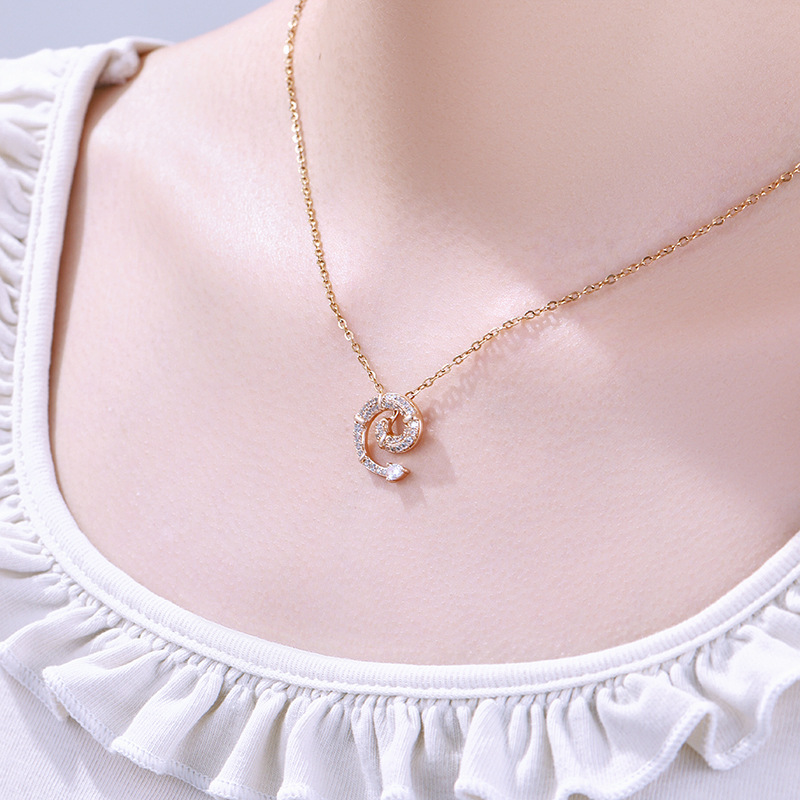 旭平欧美跨境 铜合金镀18k金色时尚复古镶嵌锆石个性蛇形项链吊坠