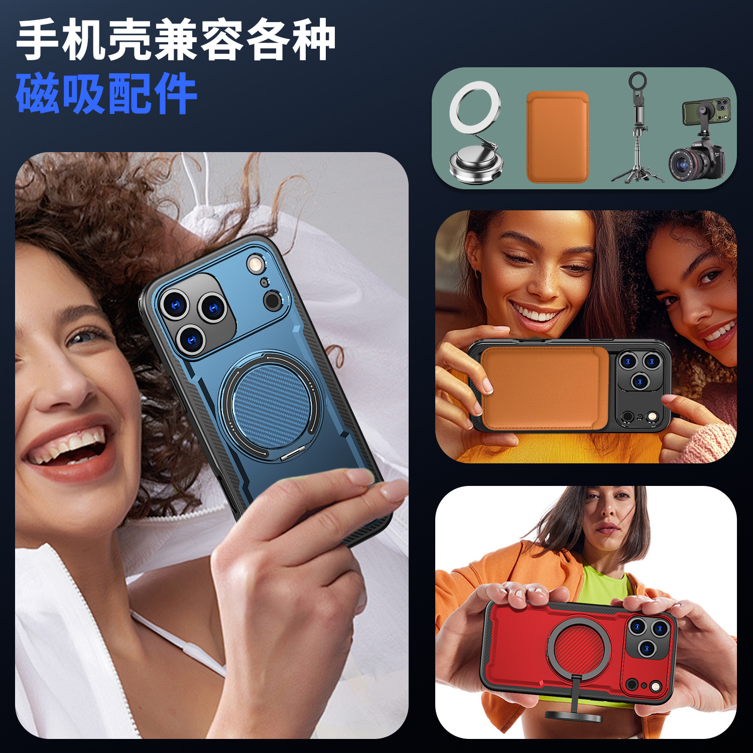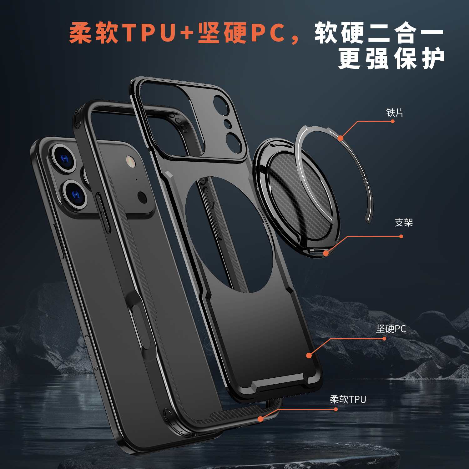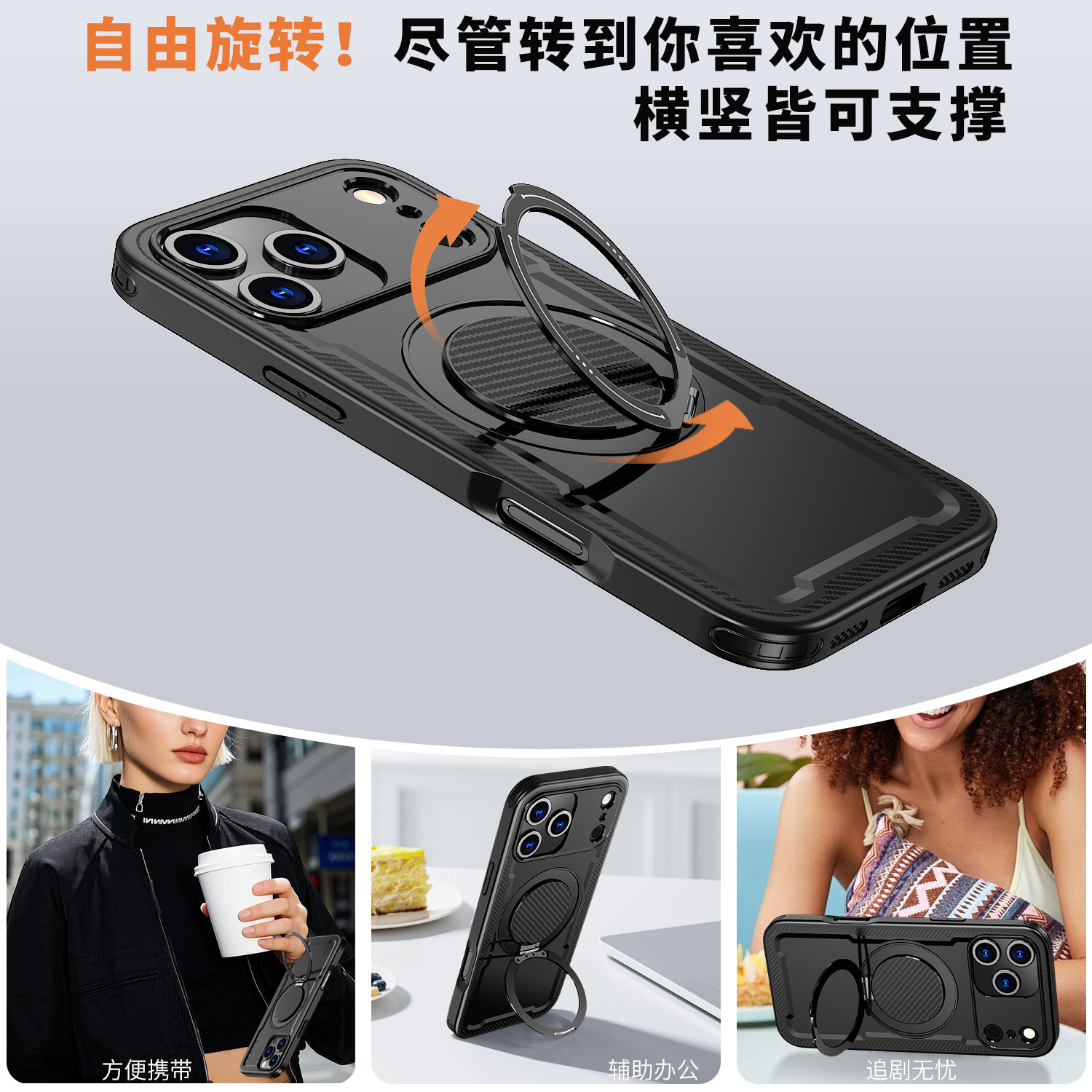 新款适用iphone17promax手机壳磁吸防摔360旋转阻尼支架苹果16pro