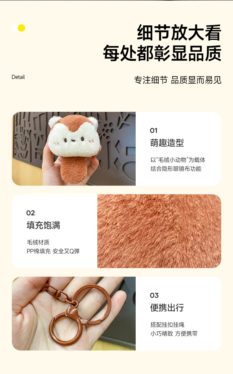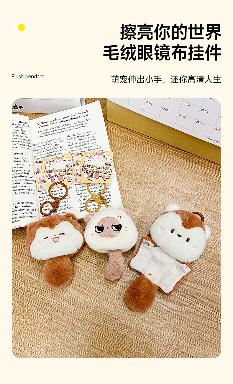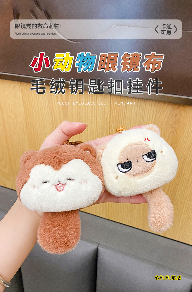 严选正版小狗猫咪小飞鼠眼镜布毛绒钥匙扣实用书包挂件小饰品批发