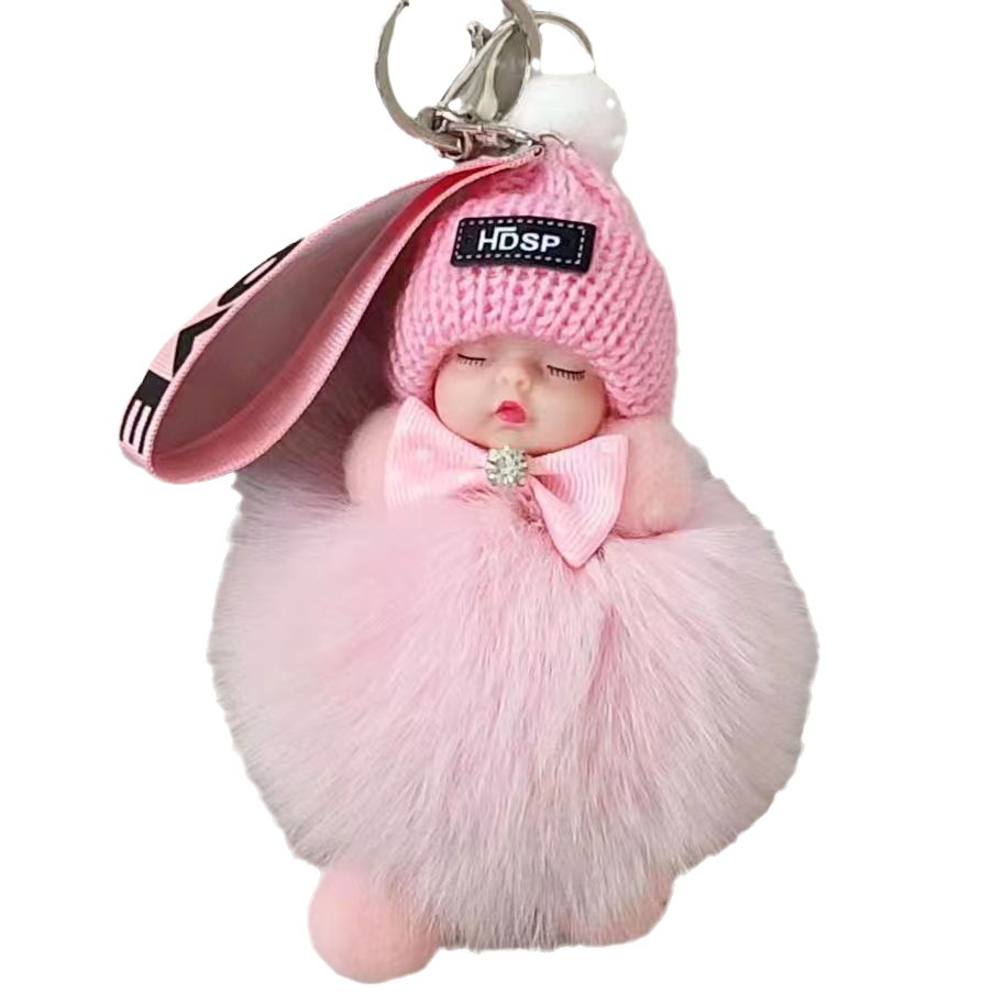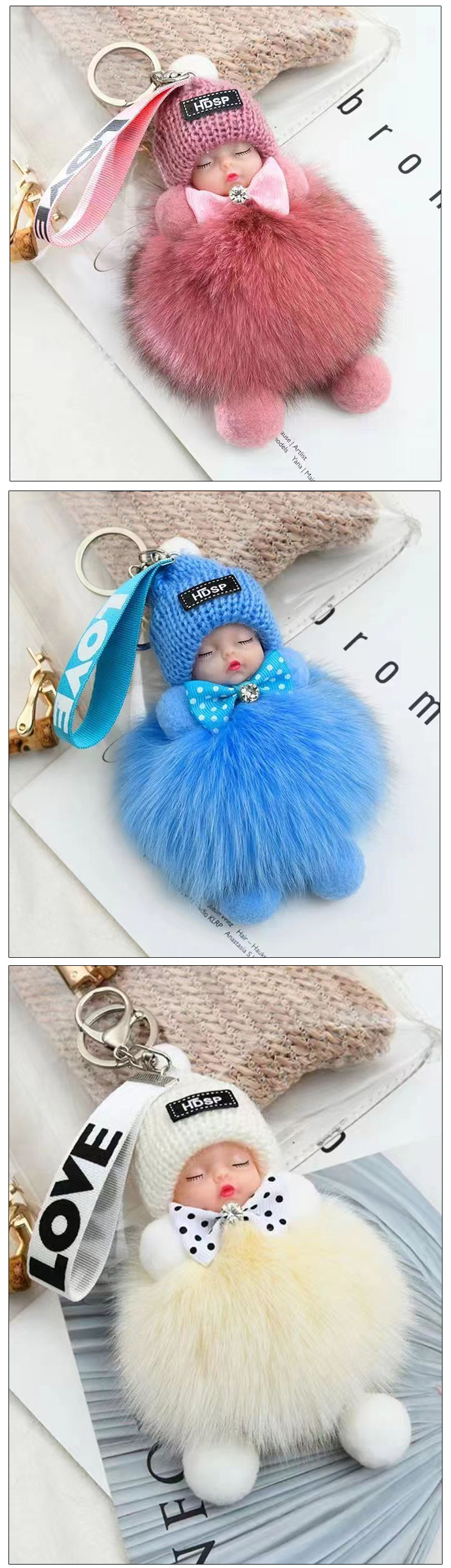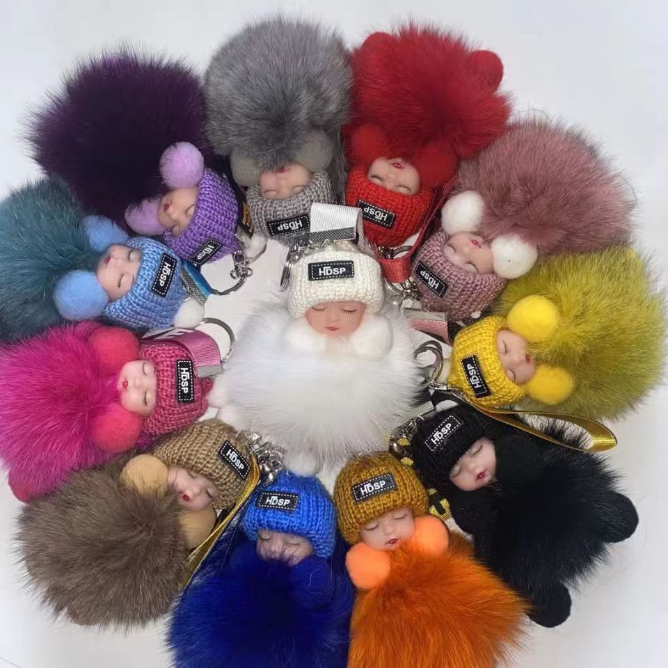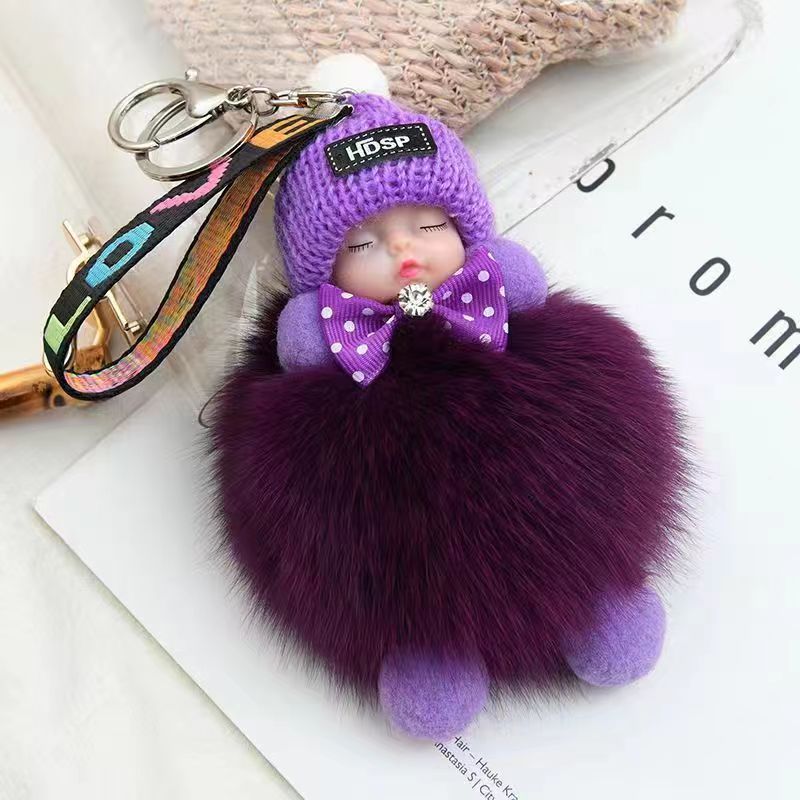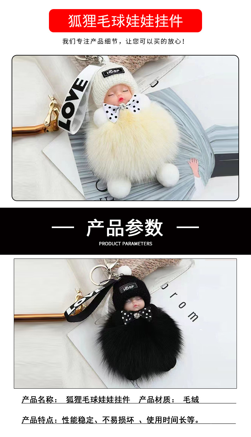 包包挂饰公仔狐狸毛球钥匙扣可爱可爱睡眠娃娃挂件车钥匙扣现货批