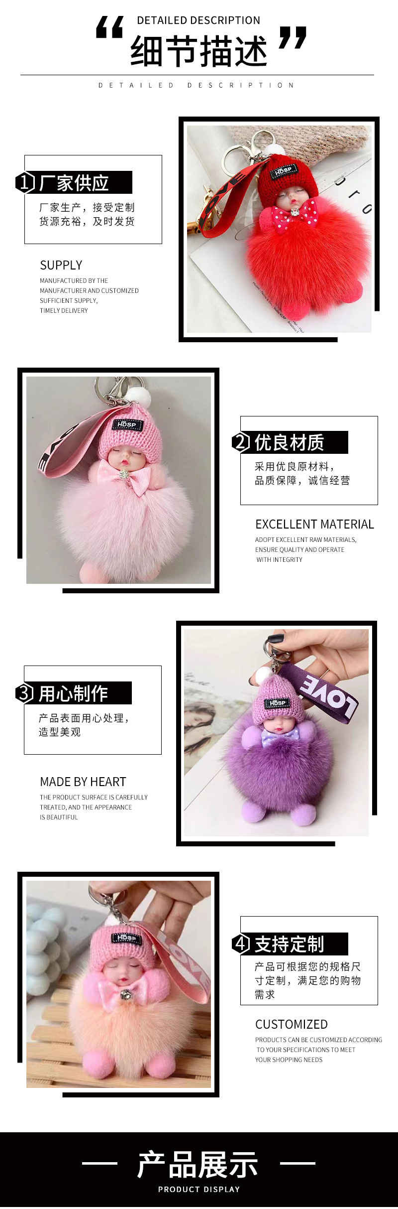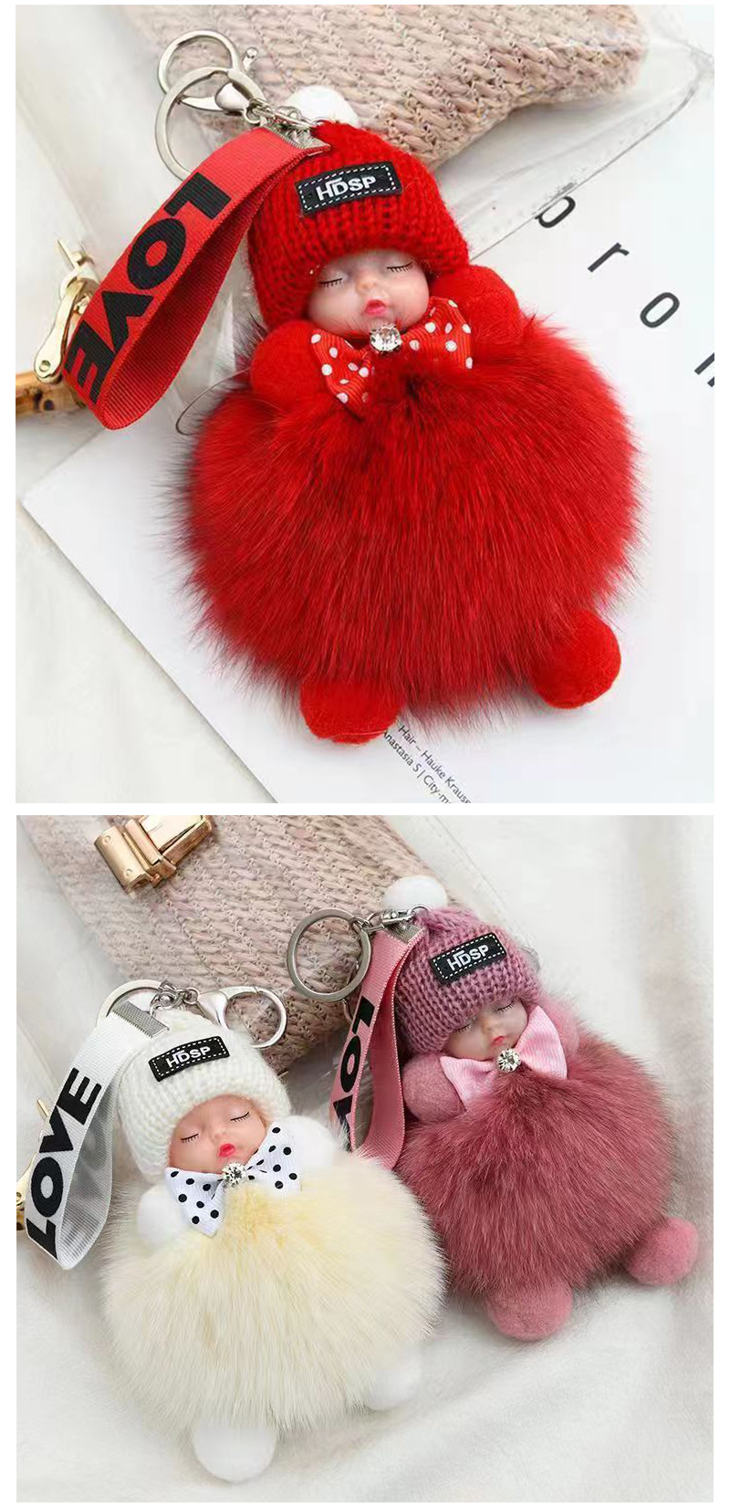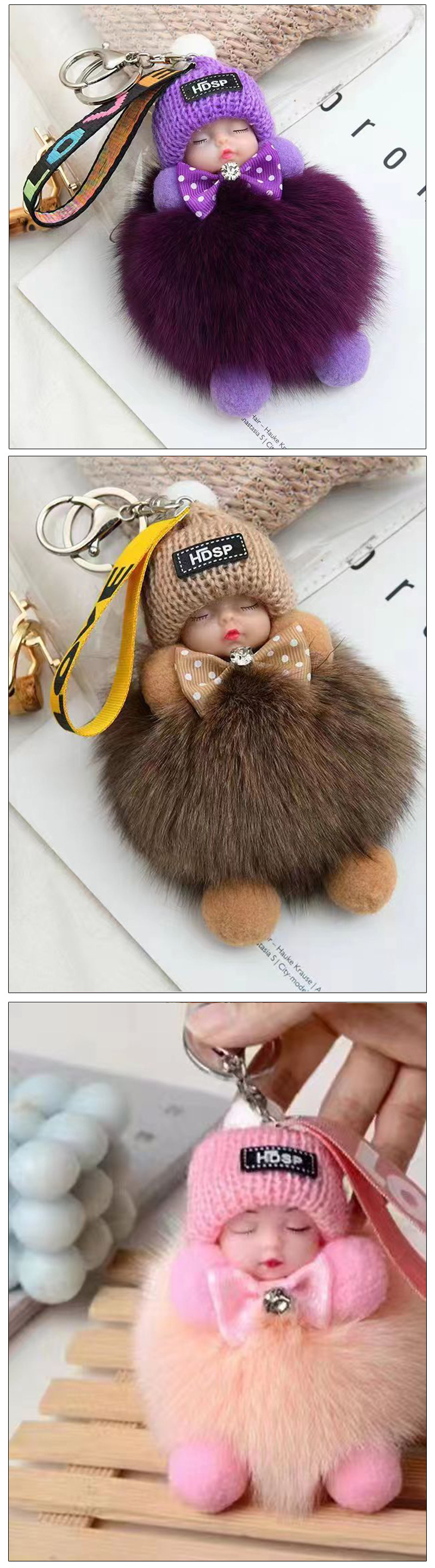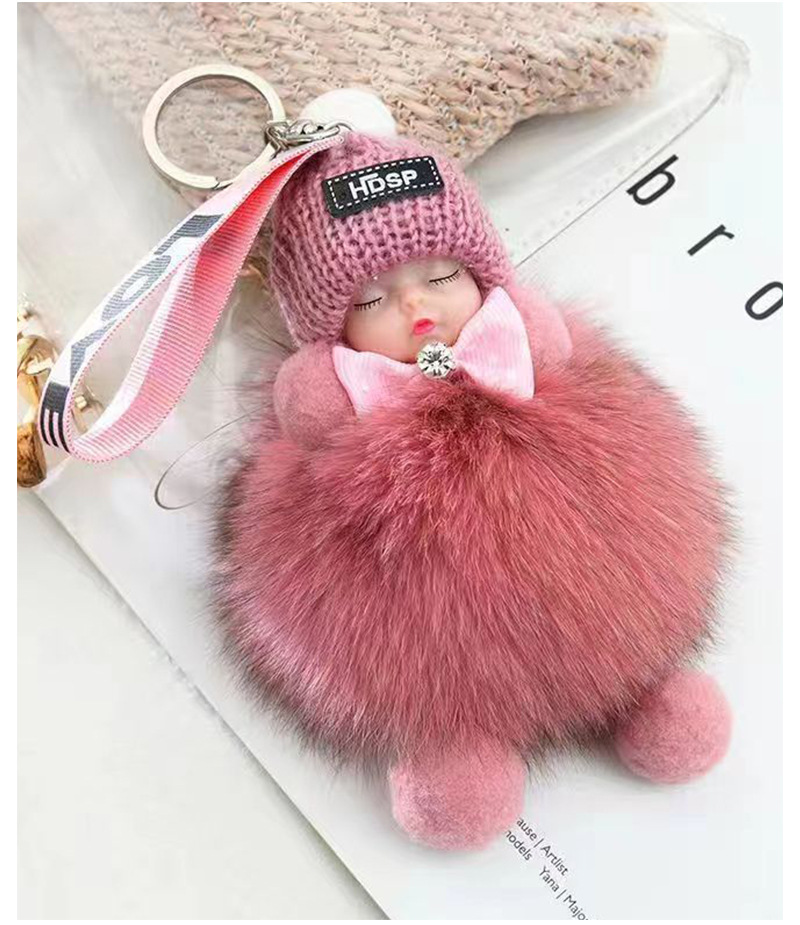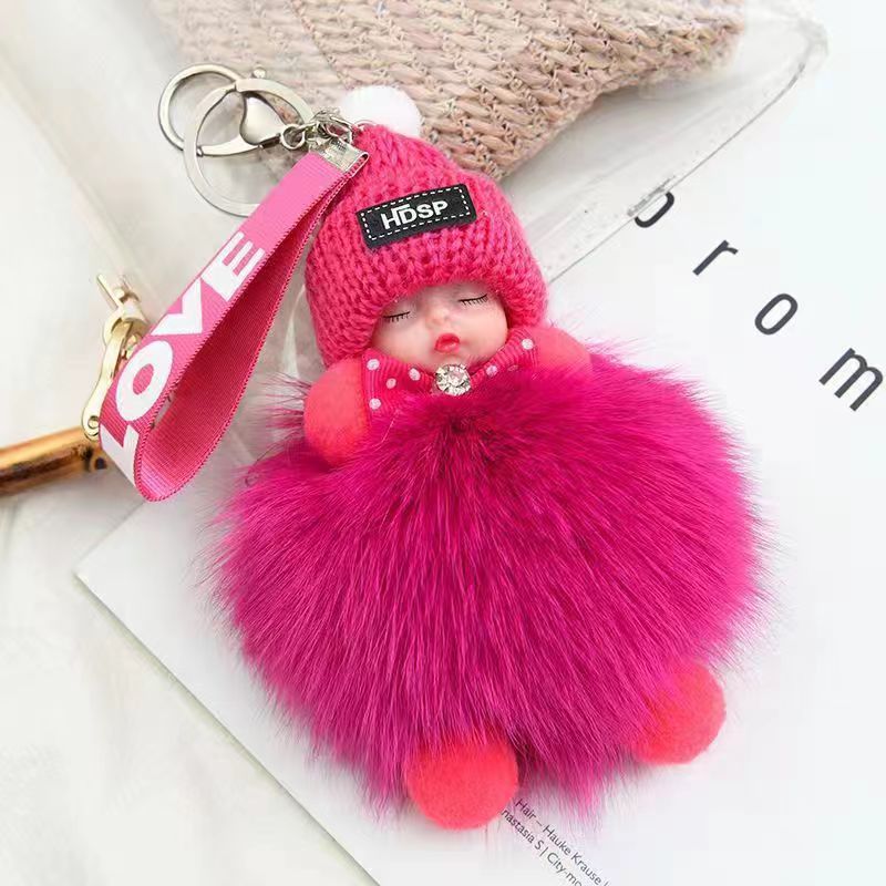 包包挂饰公仔狐狸毛球钥匙扣可爱可爱睡眠娃娃挂件车钥匙扣现货批