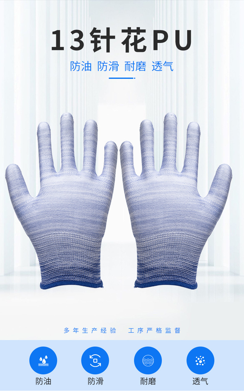 PU斑马纹涂指涂掌手套劳保工作耐用防滑耐磨透气手套厂家批发