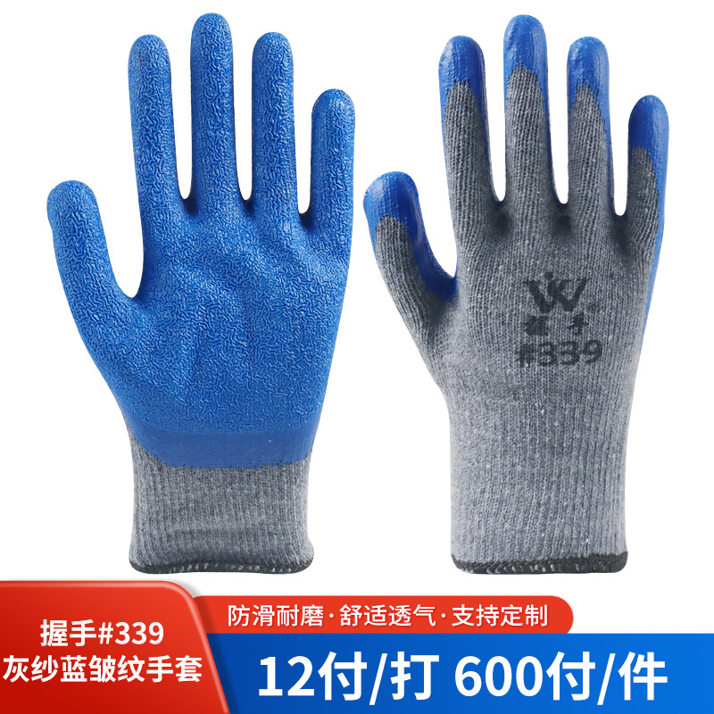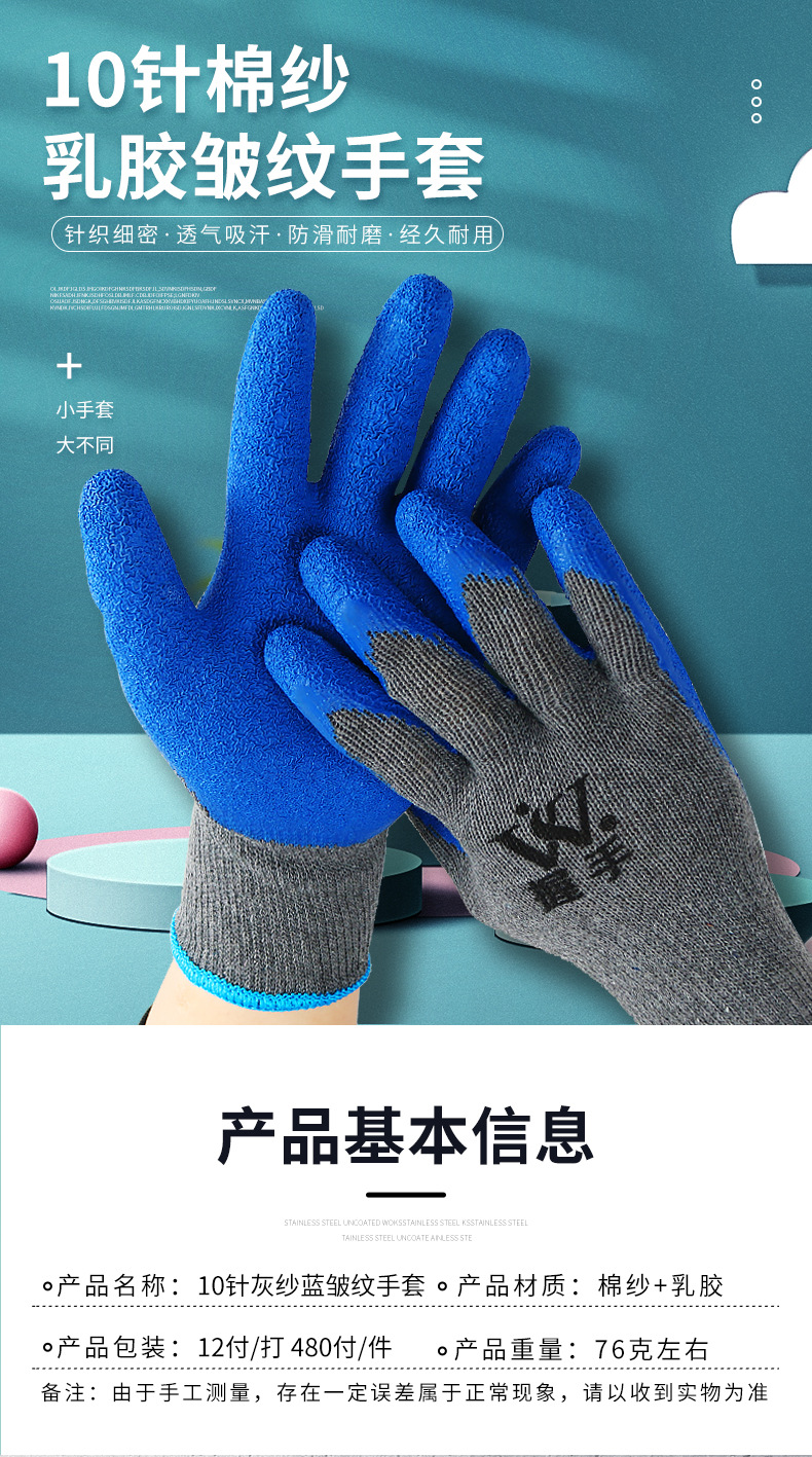 握手十针棉纱皱纹手套皱纹手套批发耐磨耐油防滑劳保防护工业涂挂