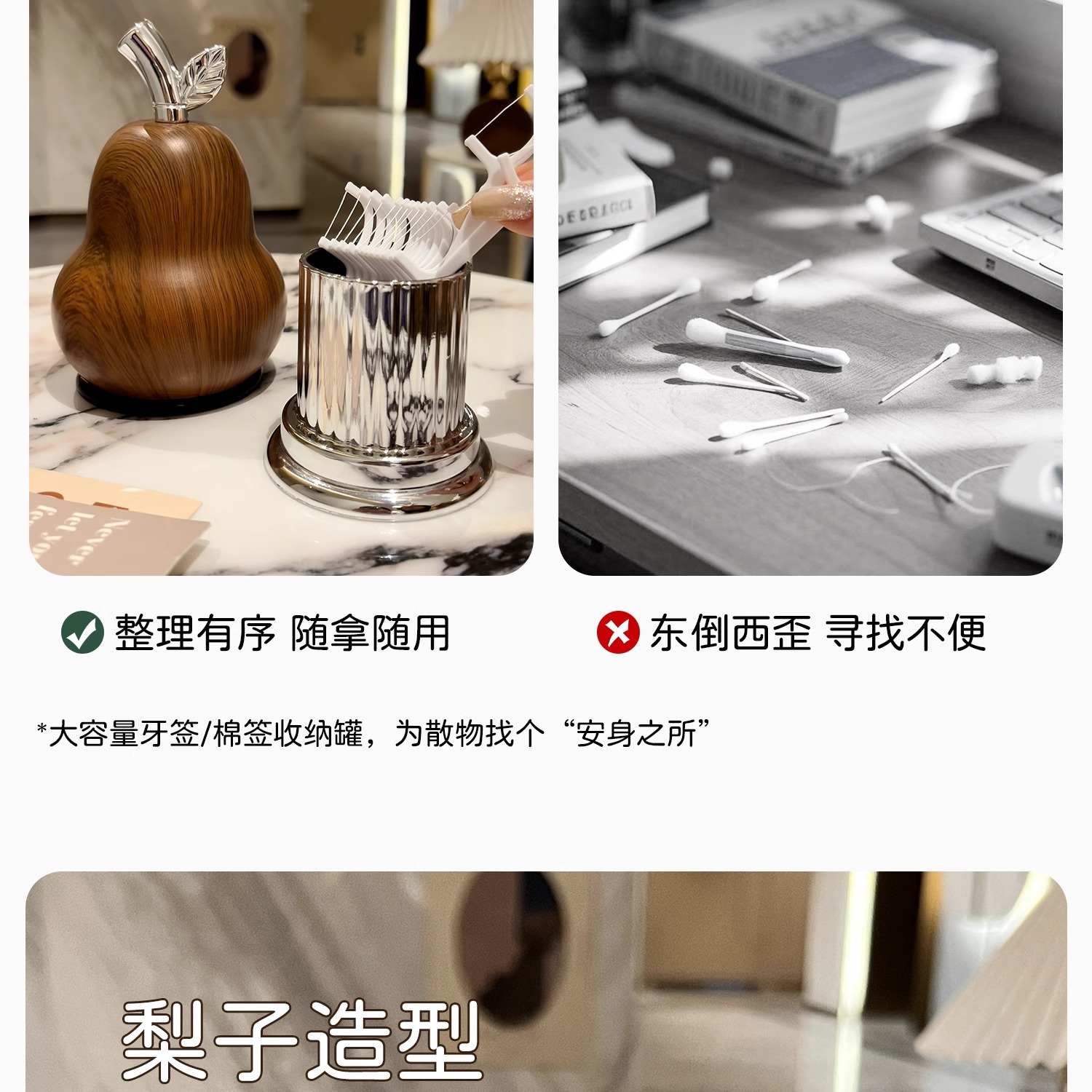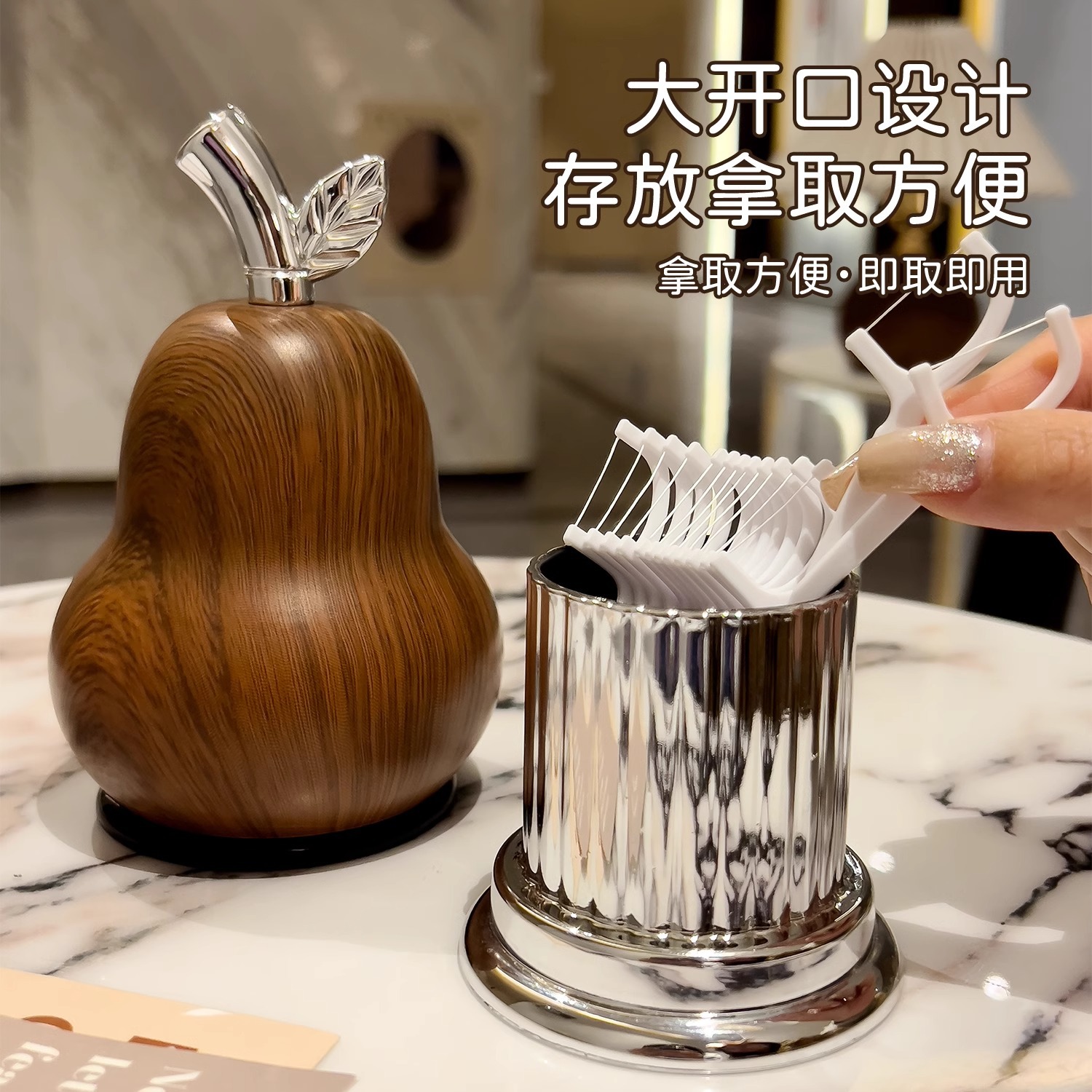 牙签盒木纹新款家用轻奢高级高颜值牙线收纳盒创意葫芦棉签牙签筒