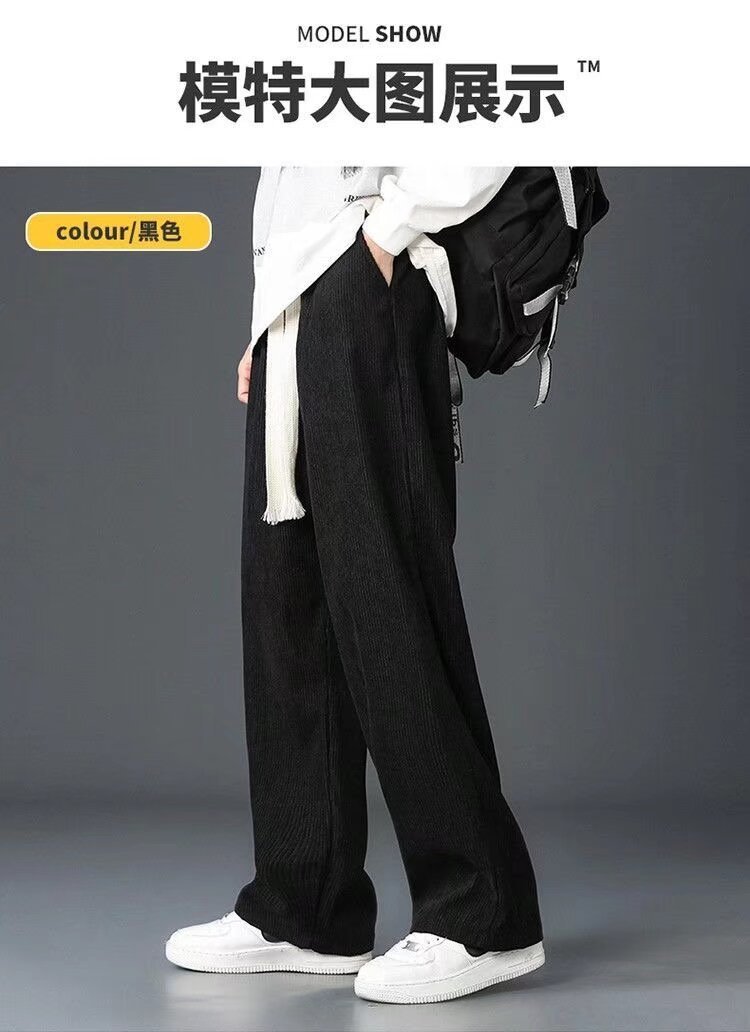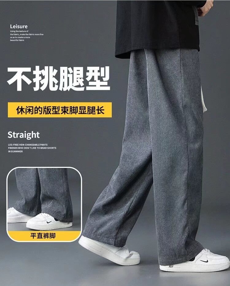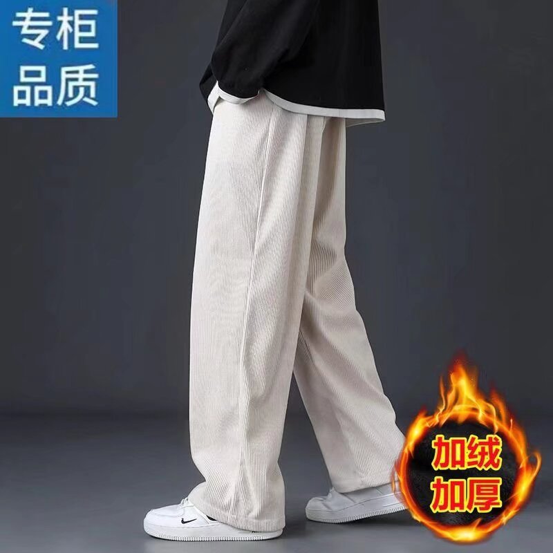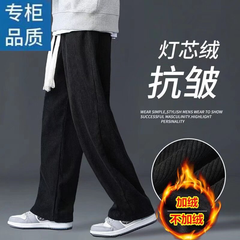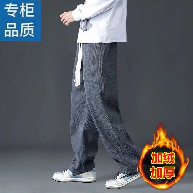 灯芯绒裤子男士秋冬季新款宽松直筒加绒加厚卫裤男生运动休闲长裤