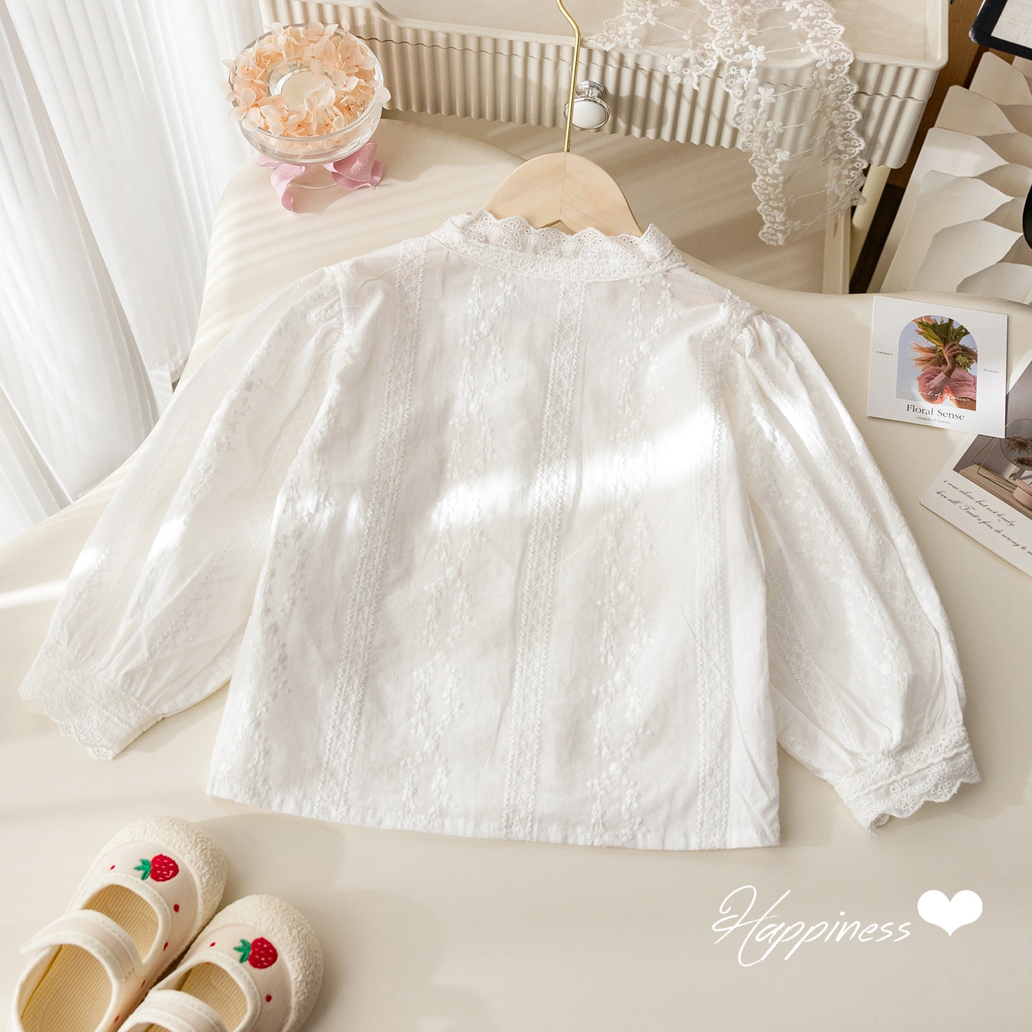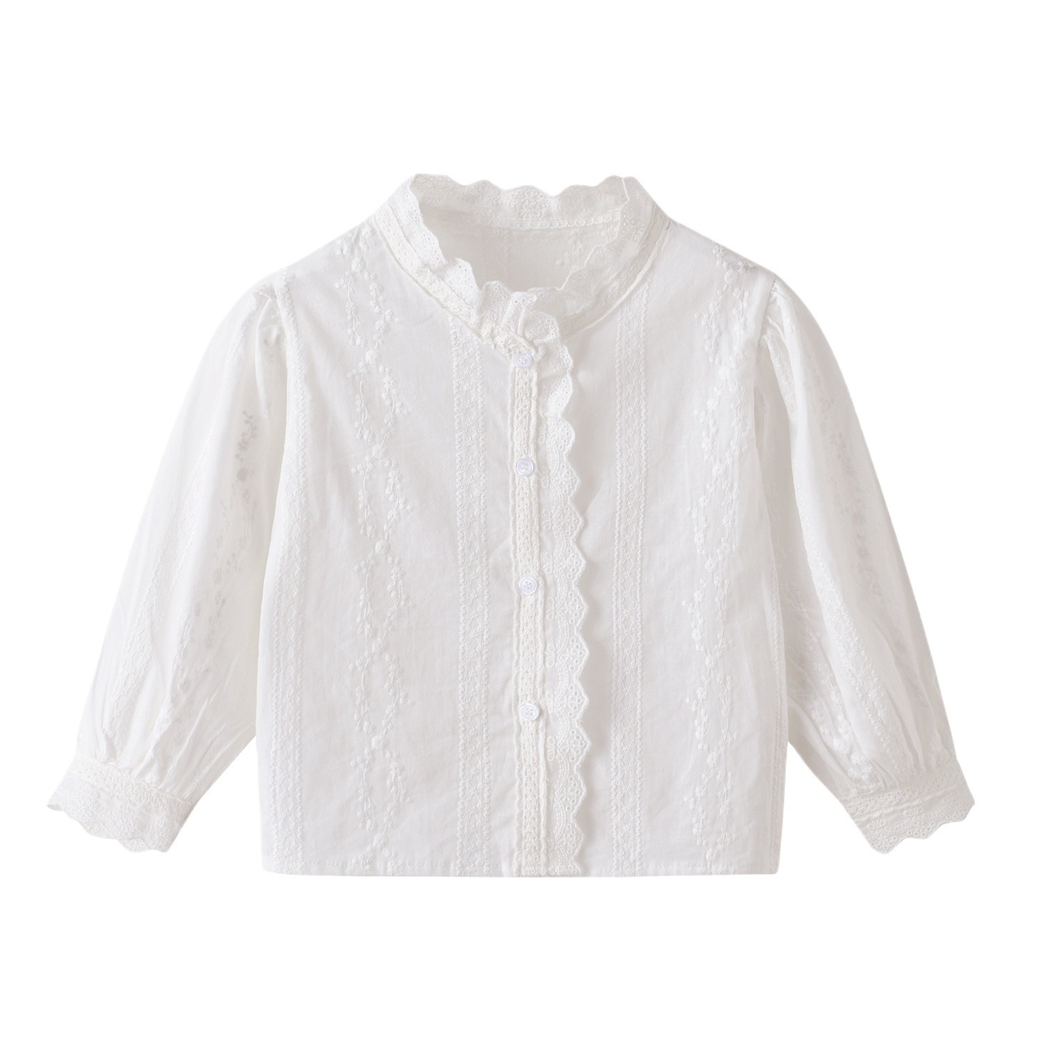 女童法式蕾丝花边衬衫春秋新款时髦甜美上衣女孩秋季高级气质衬衣