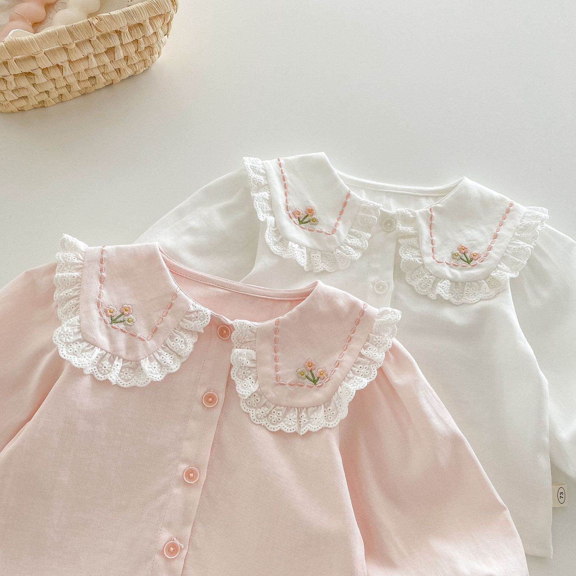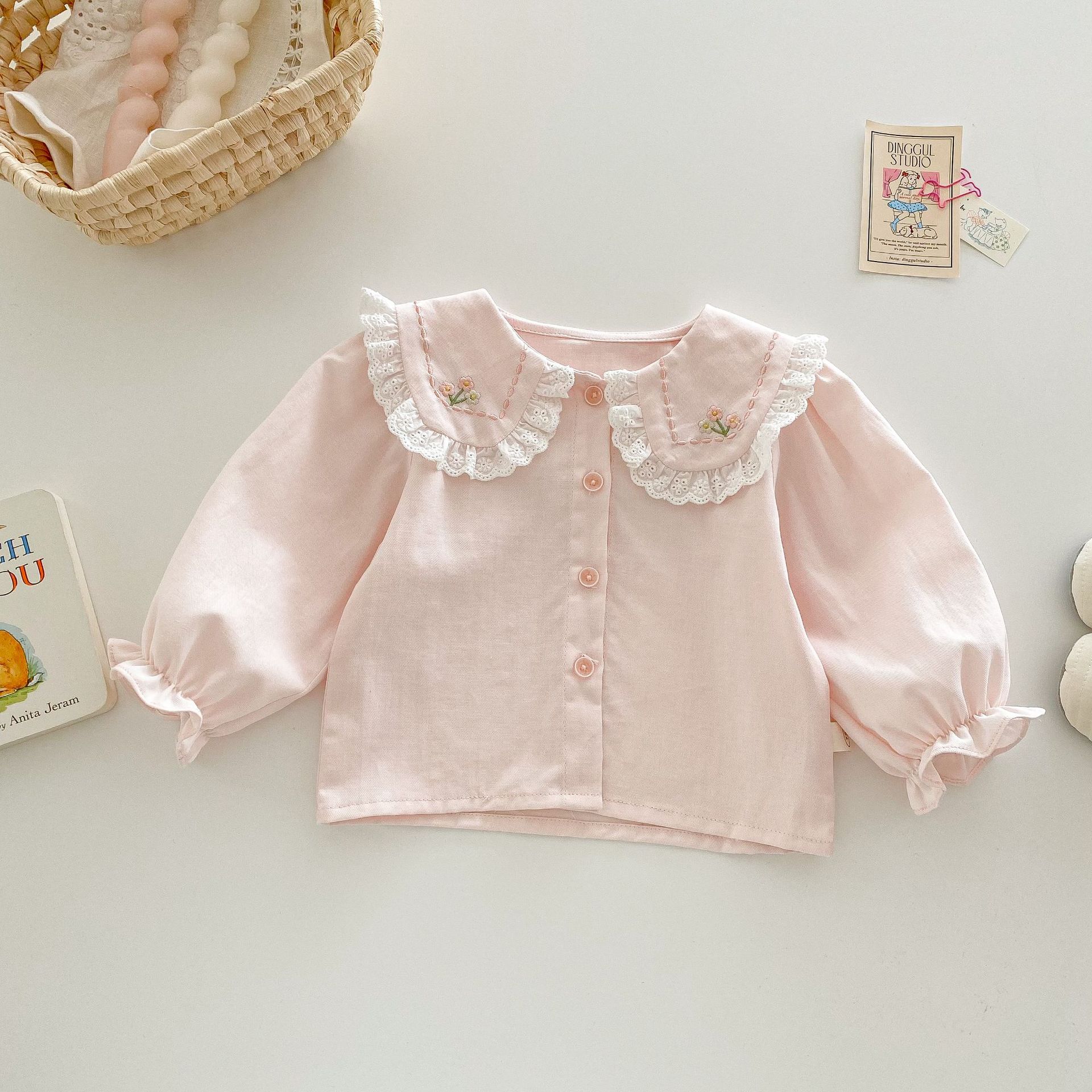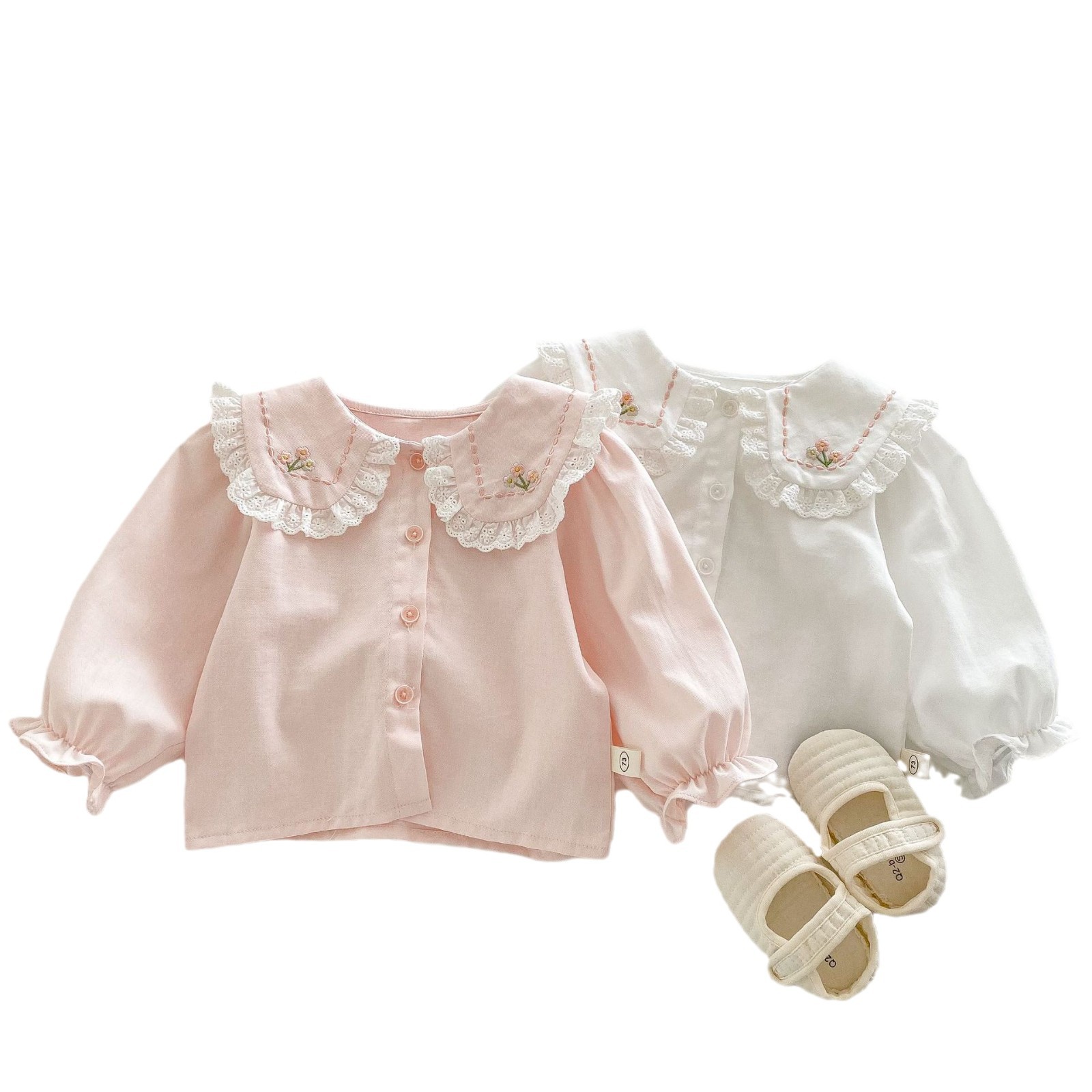 女童韩版衬衫2025新款春季0-5岁宝宝花边领衬衣儿童洋气春装上衣