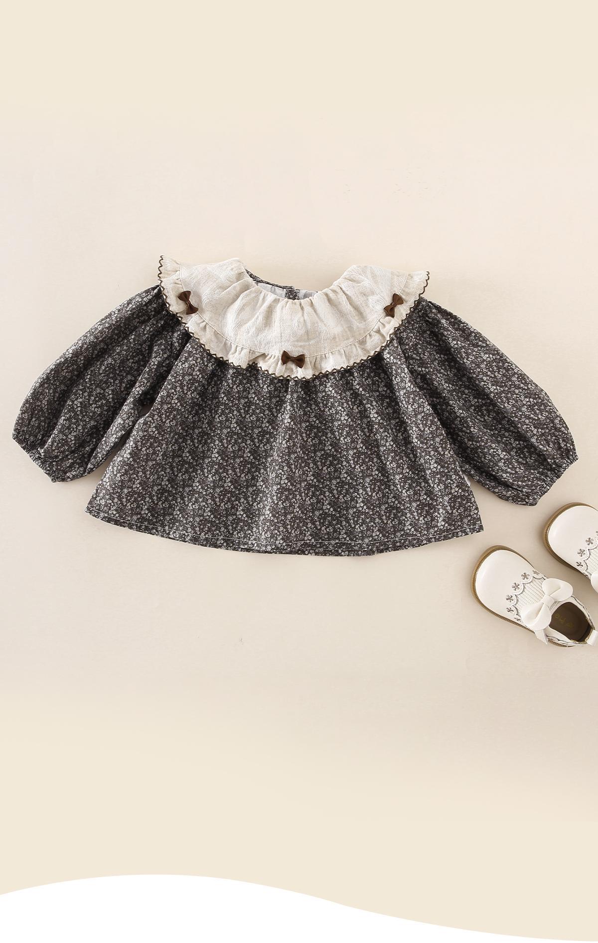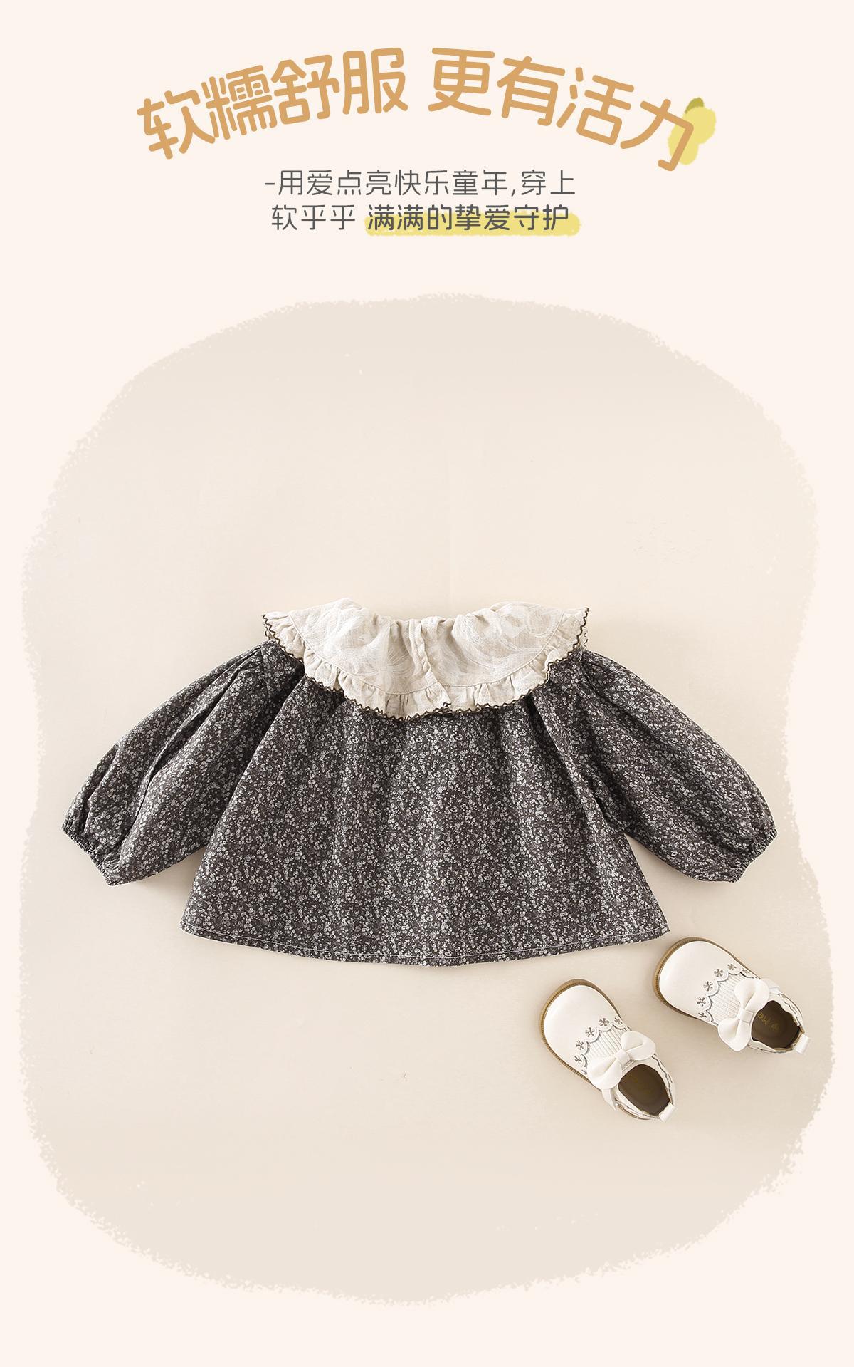 秋季新款A类童装秋款碎花森系风女宝宝娃娃领法式衬衣婴幼儿衬衫