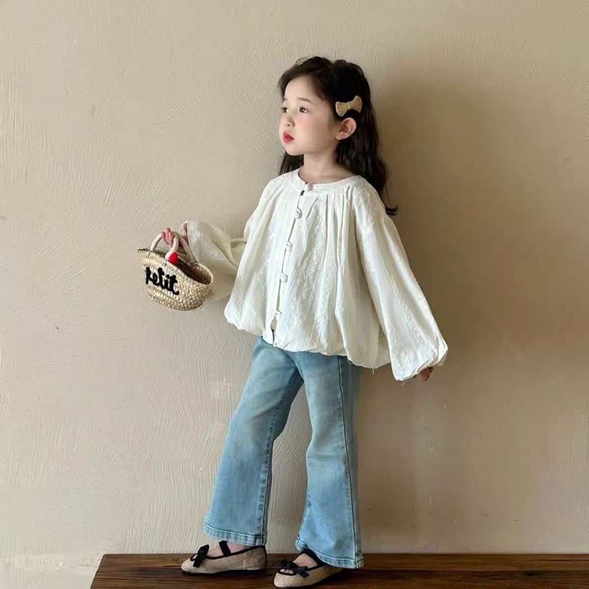 女童蕾丝衬衫秋季新款上衣儿童韩系泡泡袖上衣服女宝宝中国风3112