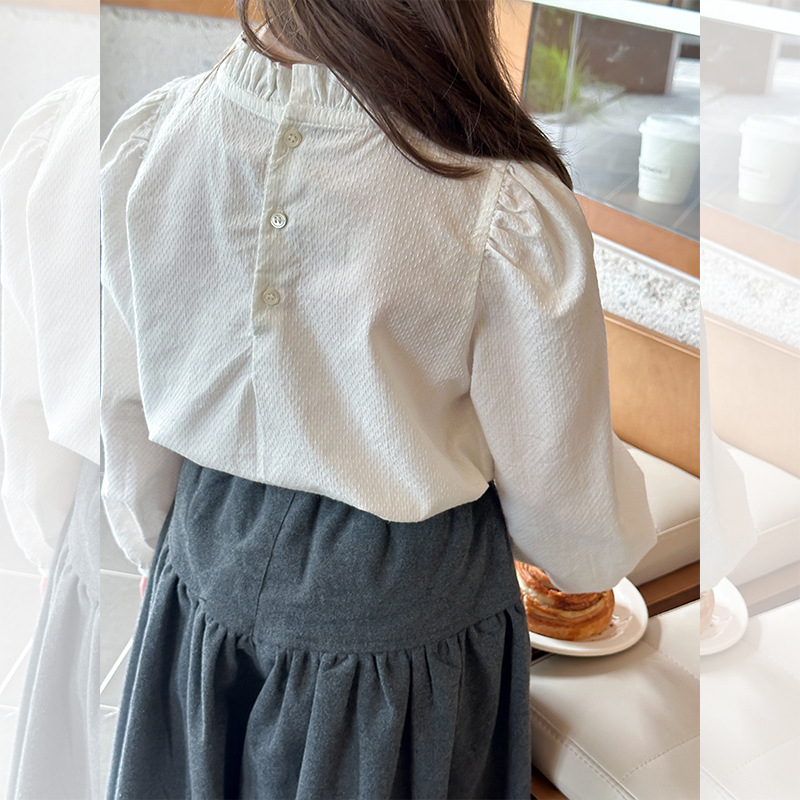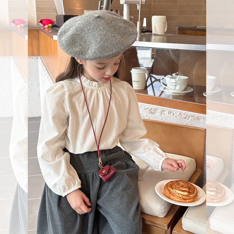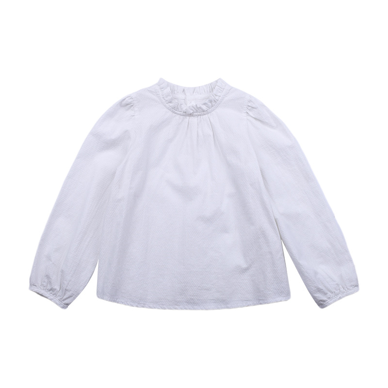 艾摩贝贝女童秋季洋气内搭白色衬衣儿童气质花边立领提花衬衫上衣