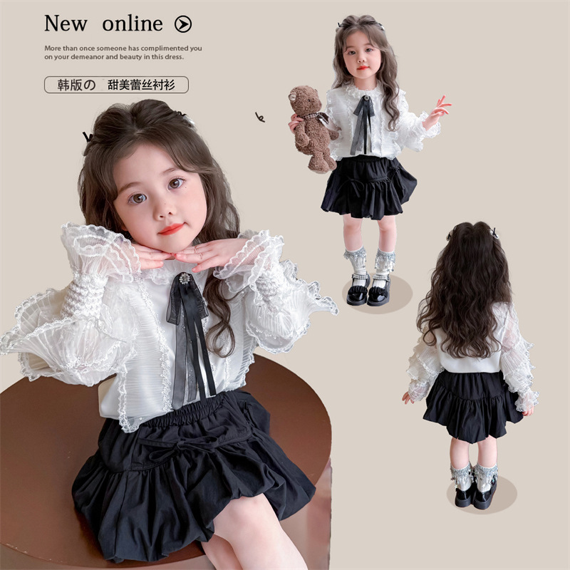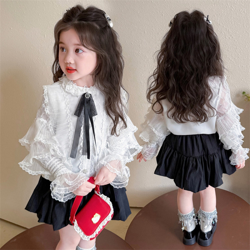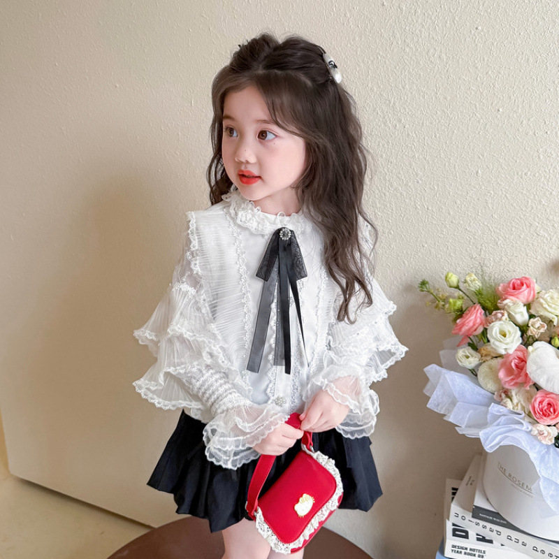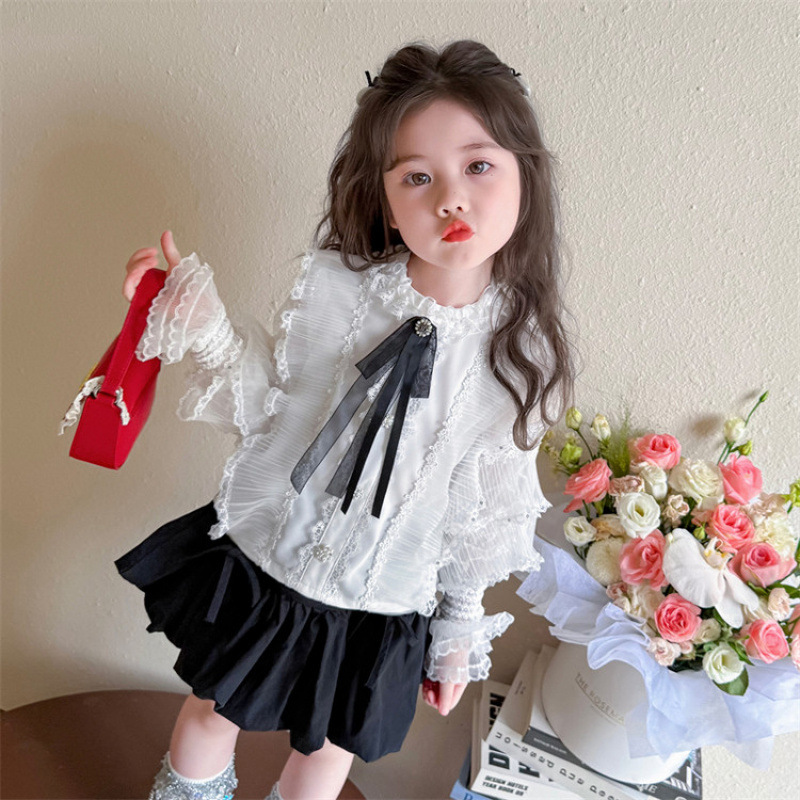 女小童蕾丝花边长袖衬衫2025秋季新款时髦洋气女宝宝学院风衬衣潮