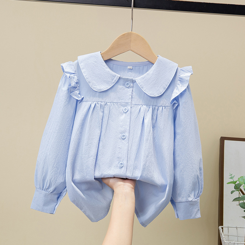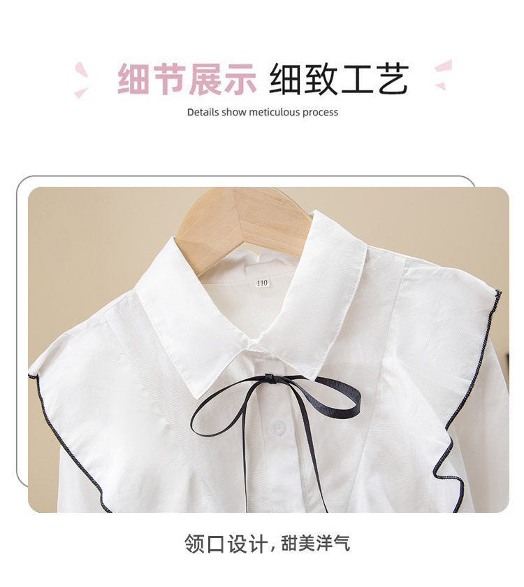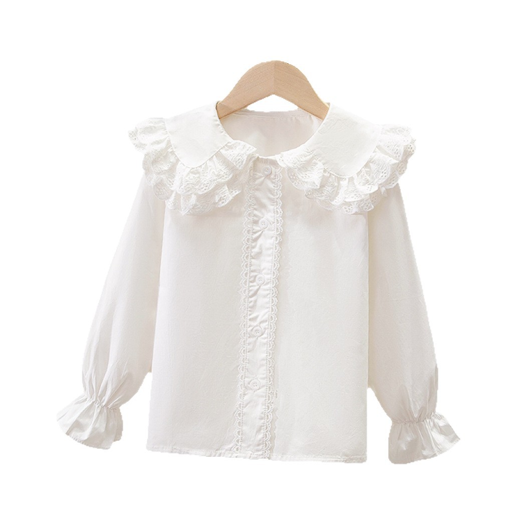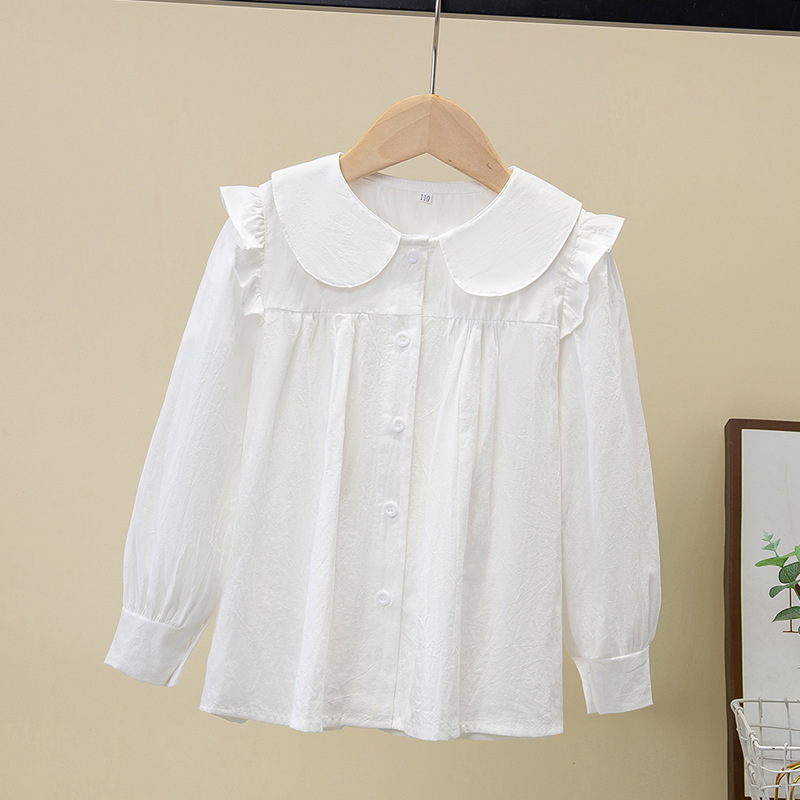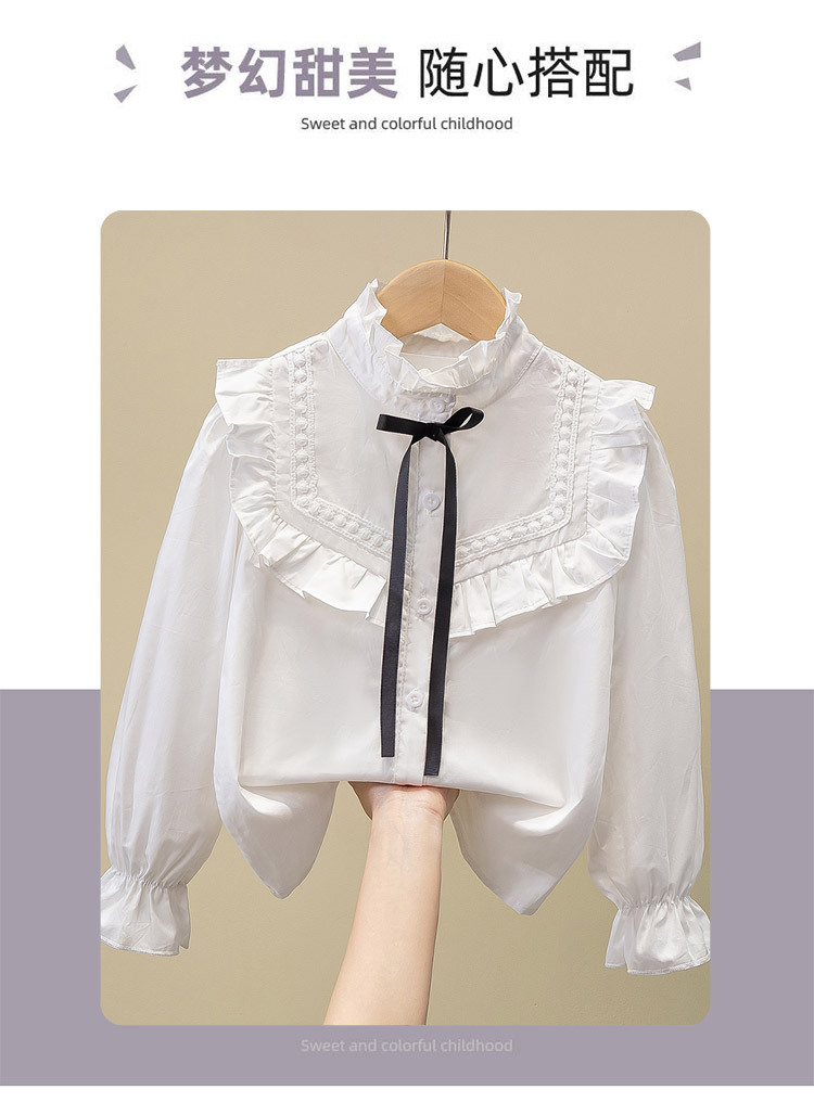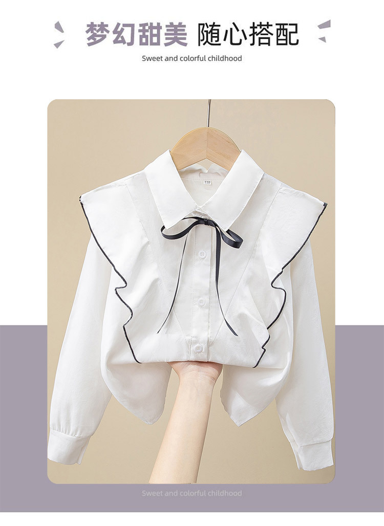 外贸女童白衬衫春秋花边新款上衣儿童娃娃领蝴蝶结纯棉韩版公主款