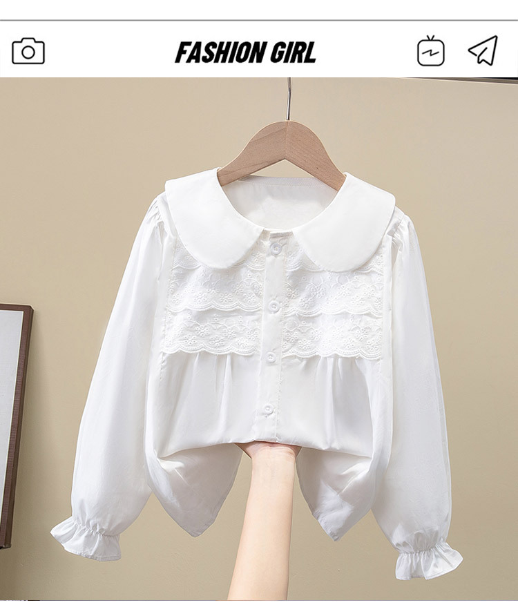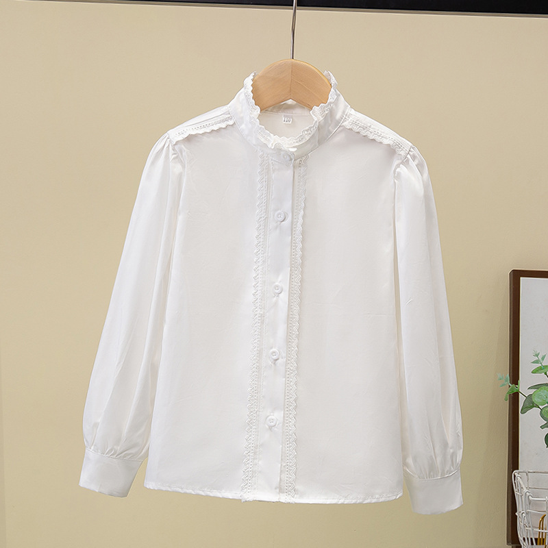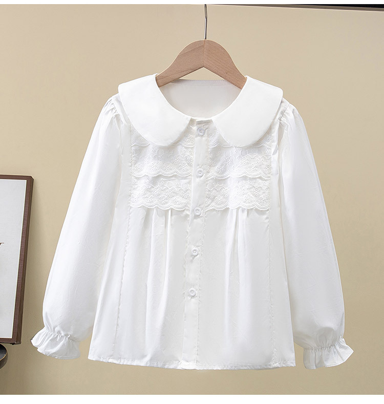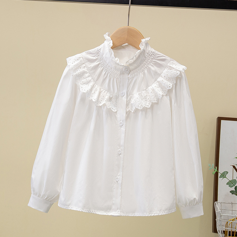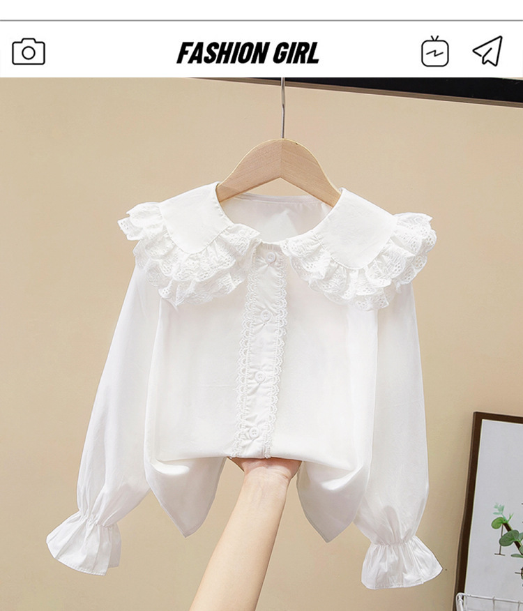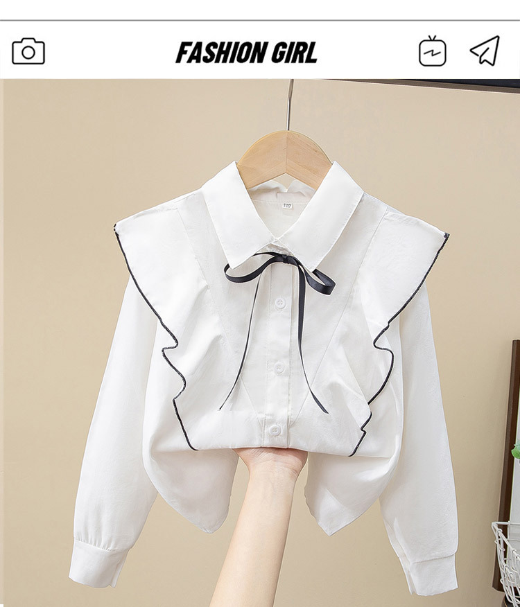 外贸女童白衬衫春秋花边新款上衣儿童娃娃领蝴蝶结纯棉韩版公主款