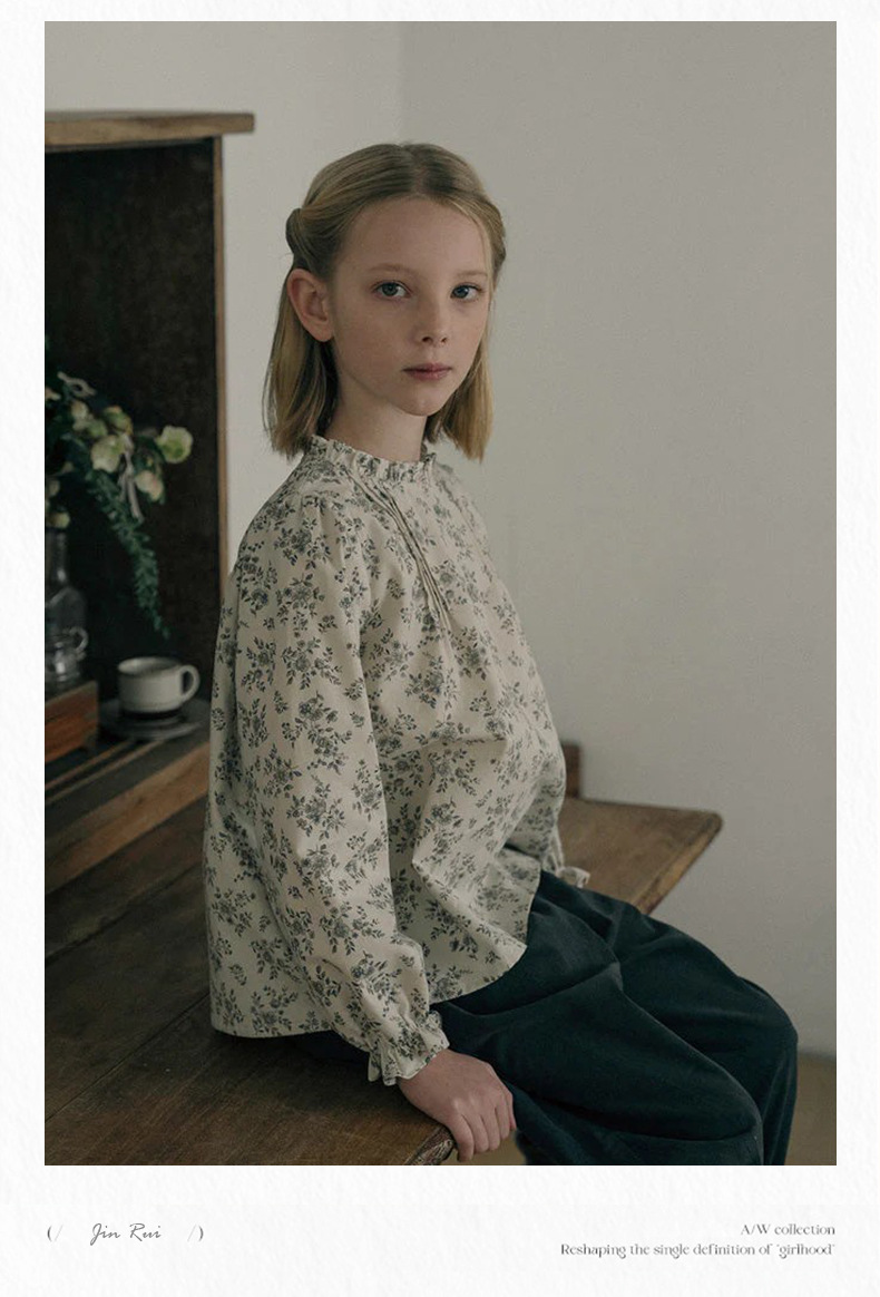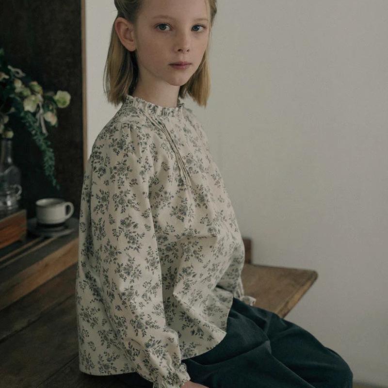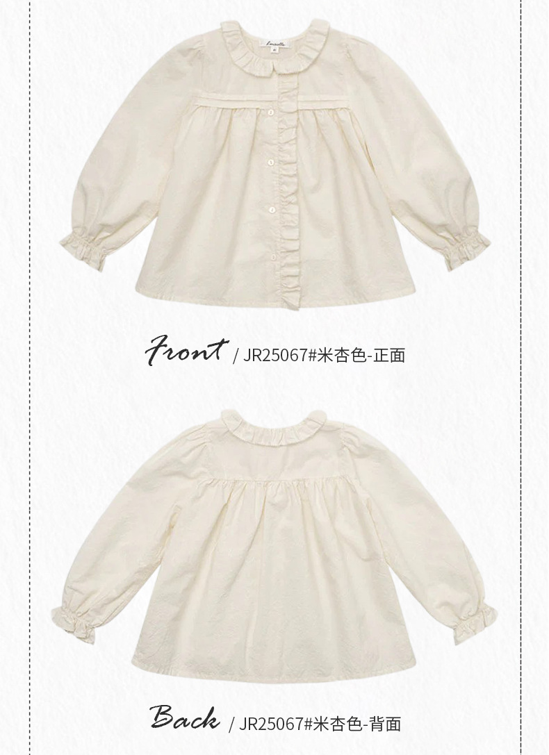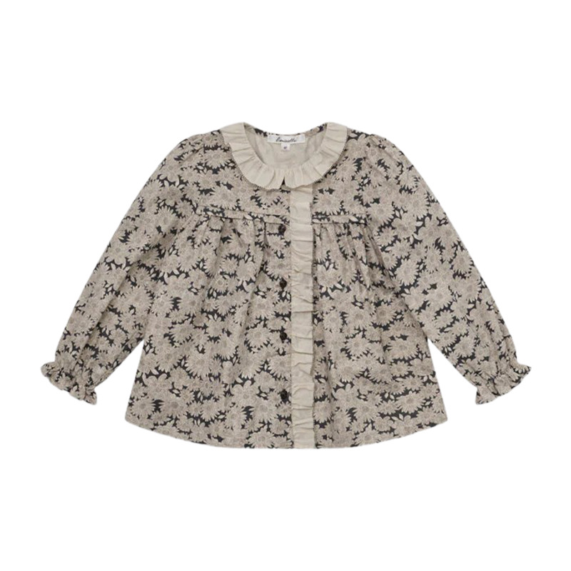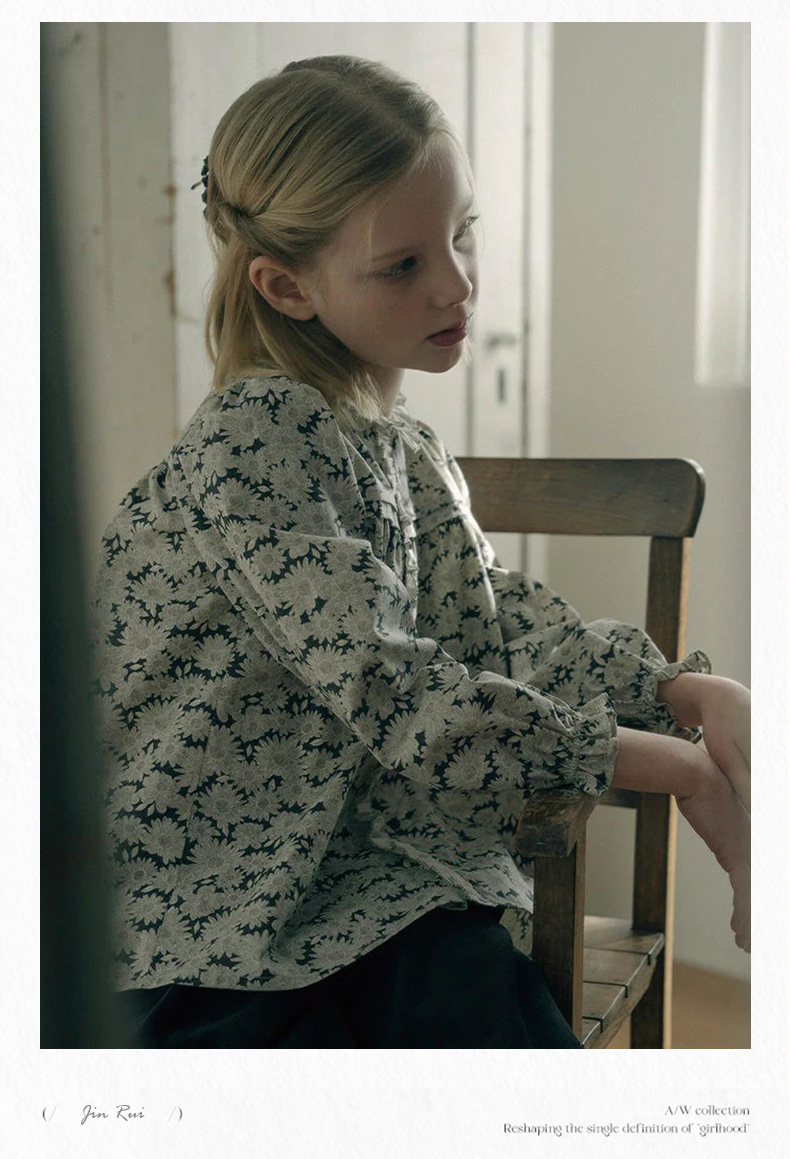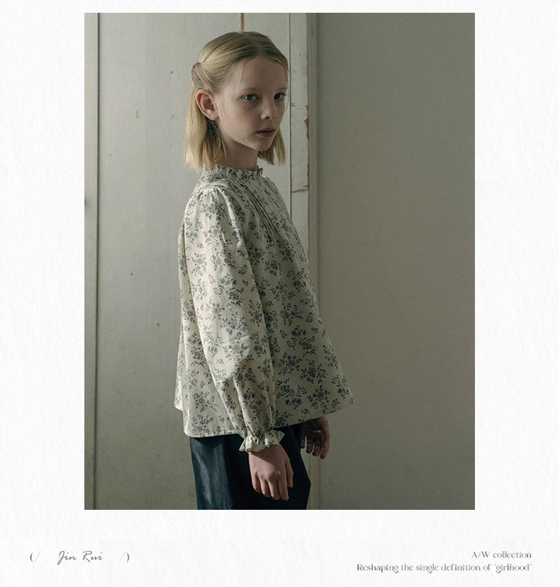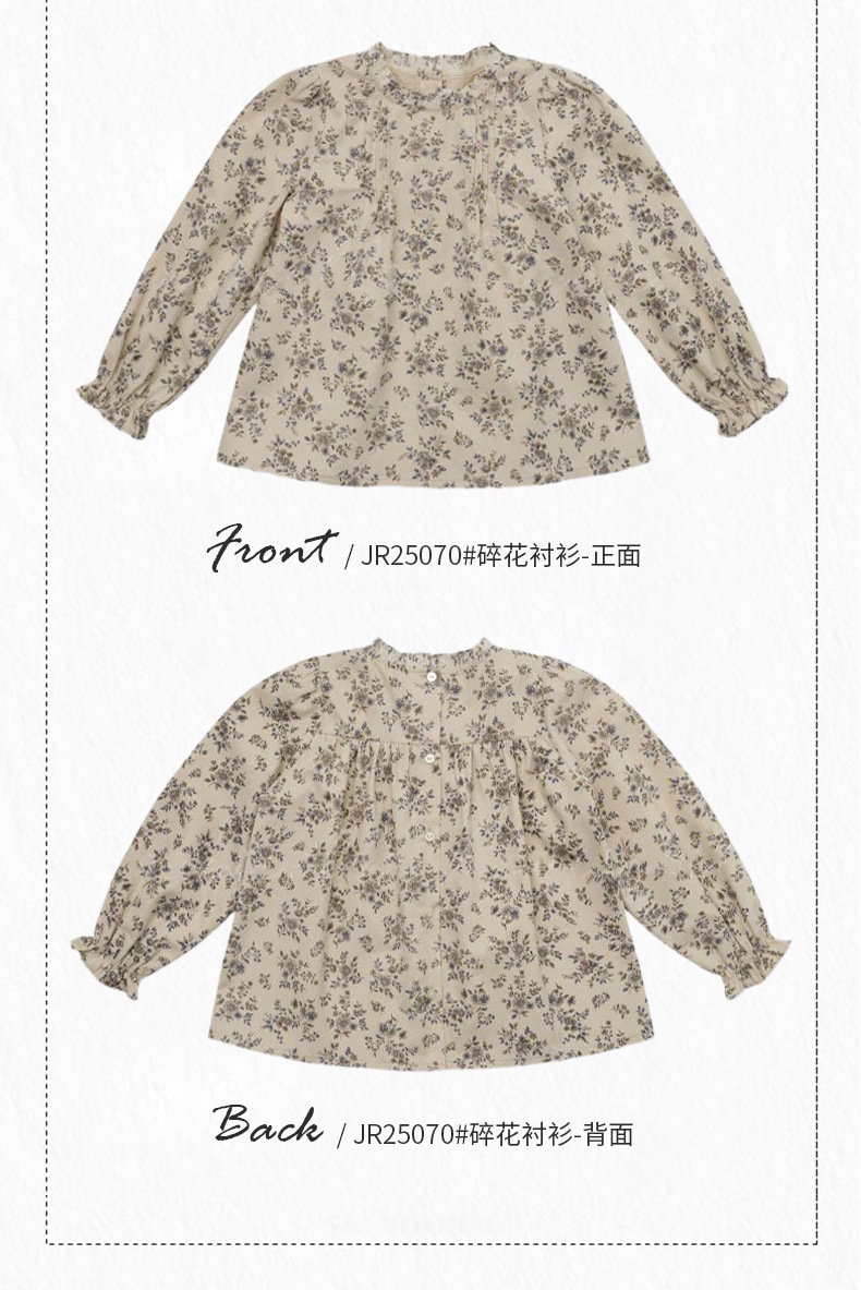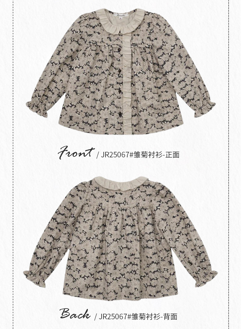 预售 2025秋冬Lou新款女童百搭纯棉长袖衬衣可爱木耳边小碎花上衣