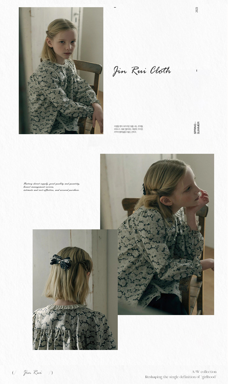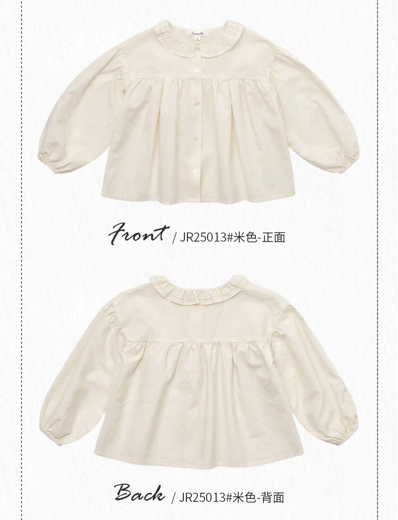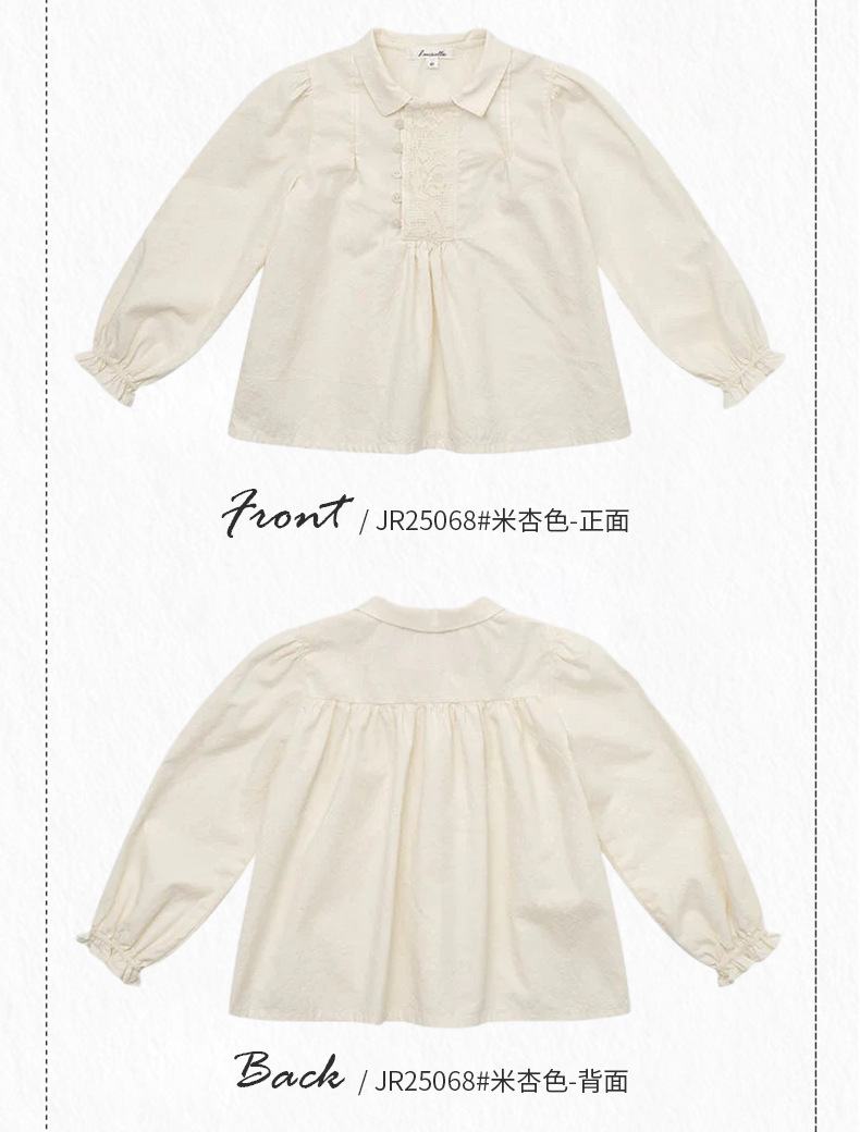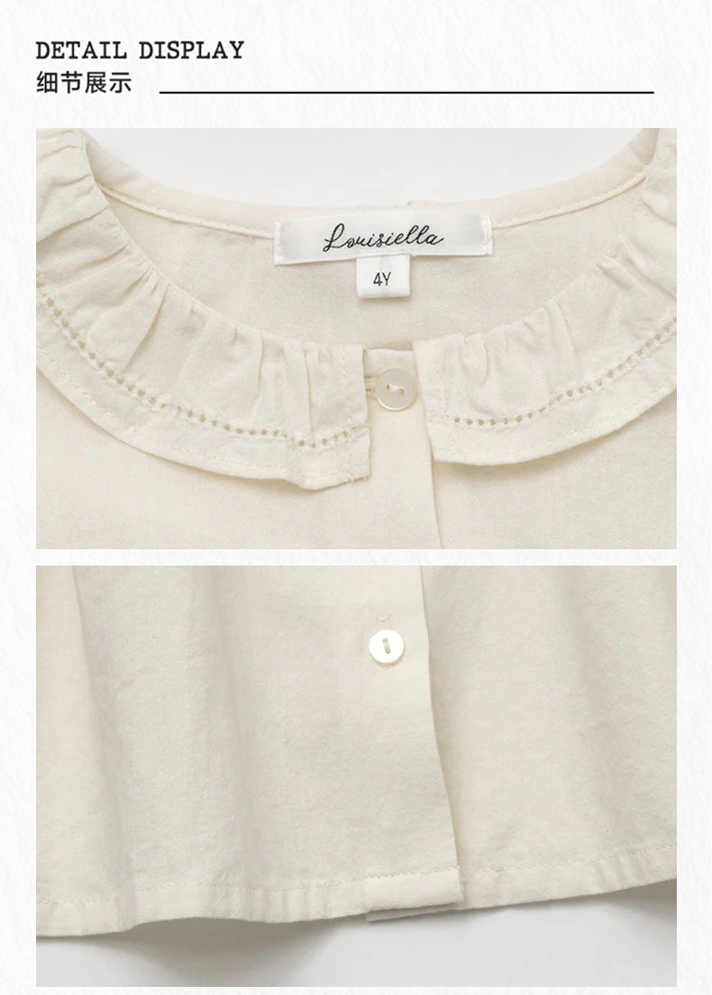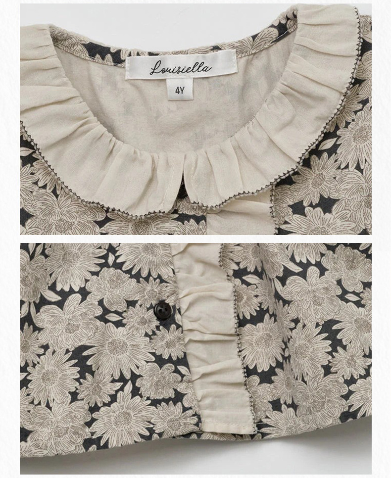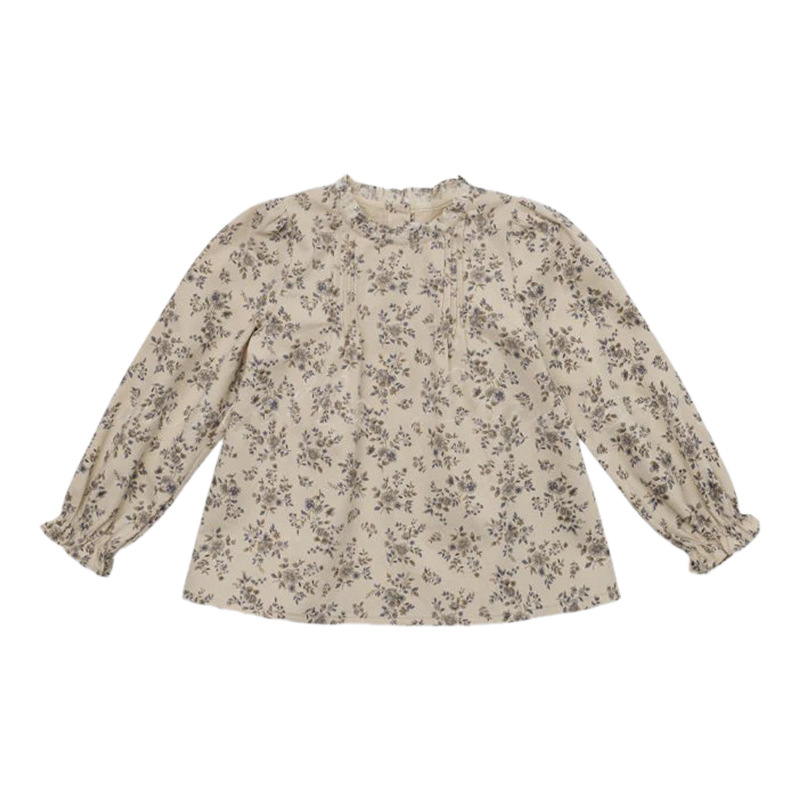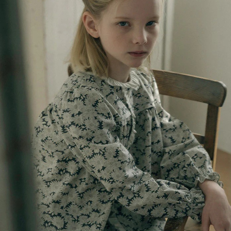 预售 2025秋冬Lou新款女童百搭纯棉长袖衬衣可爱木耳边小碎花上衣