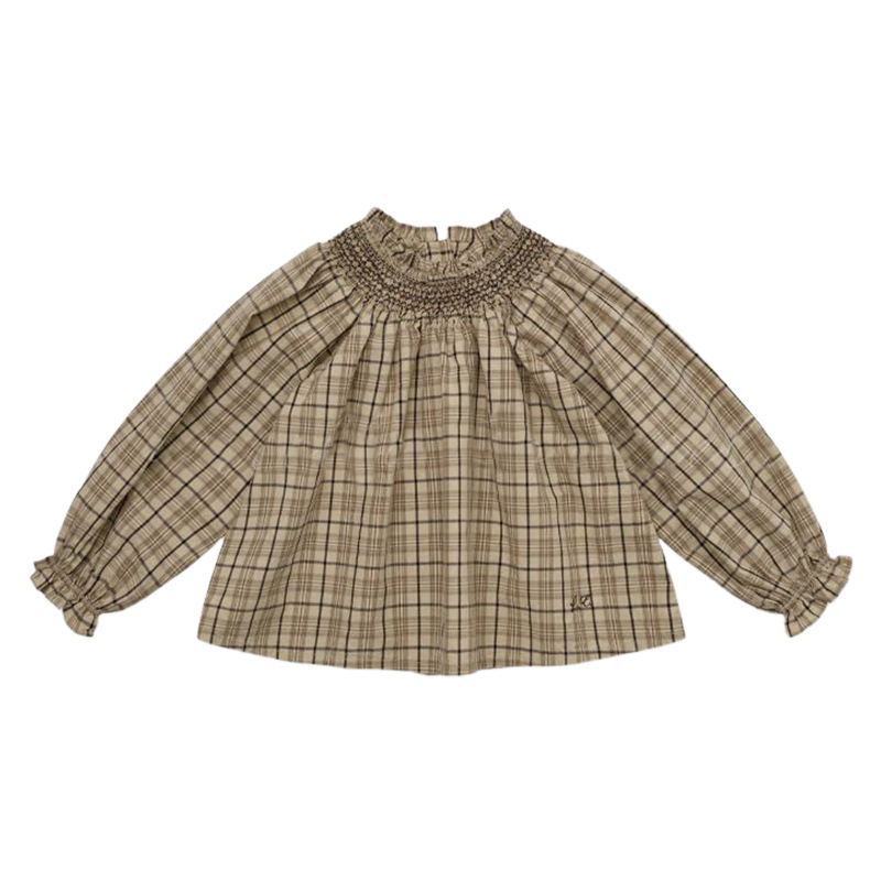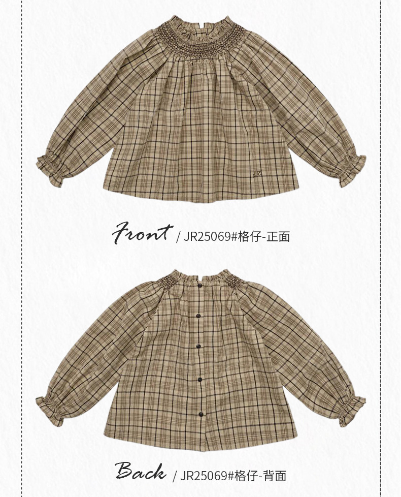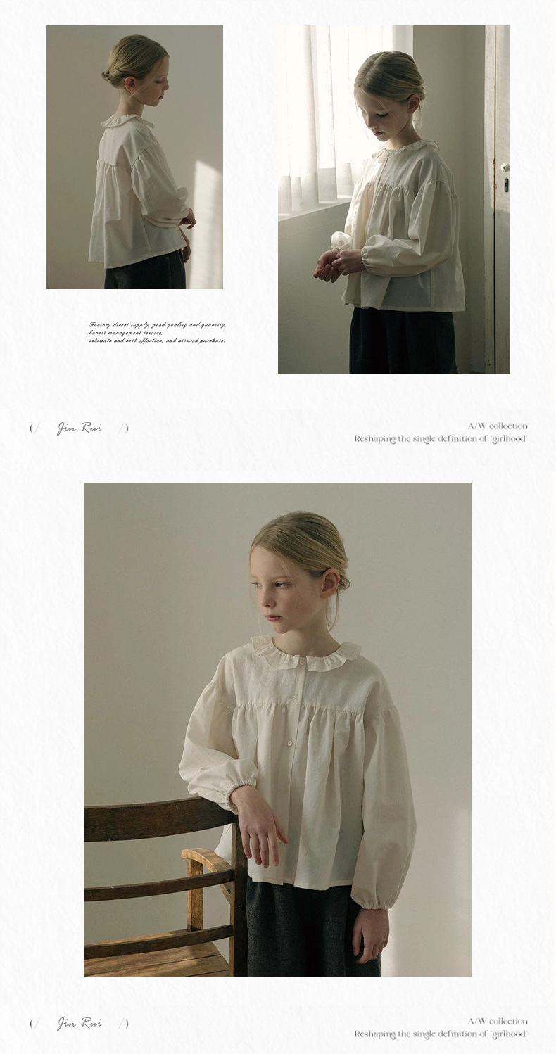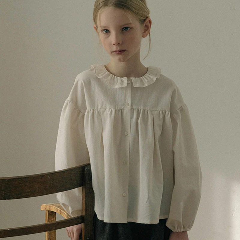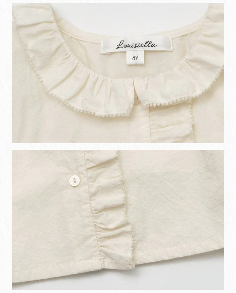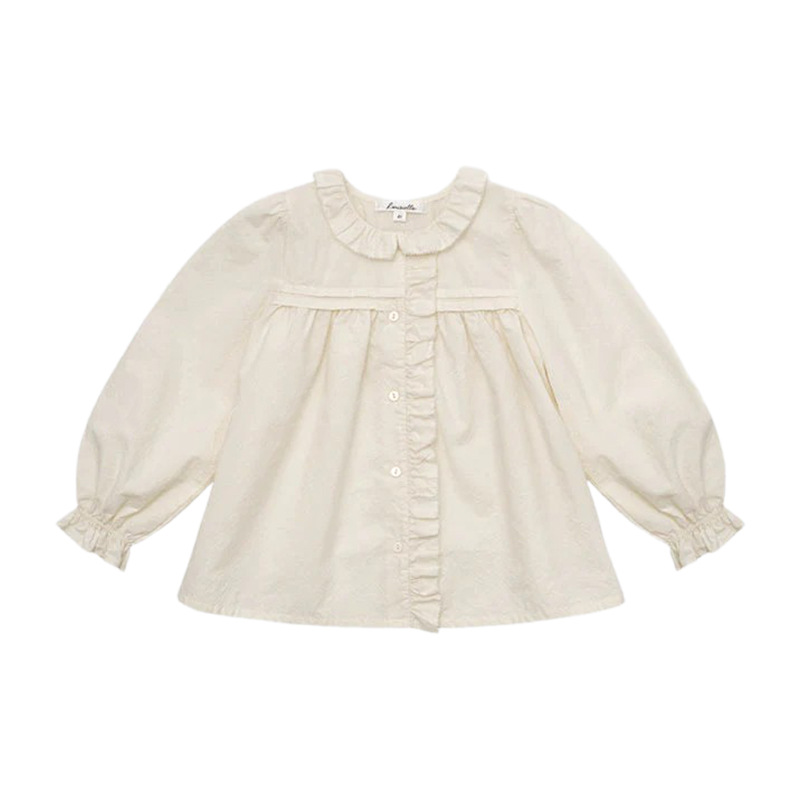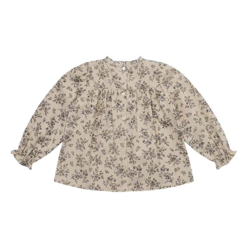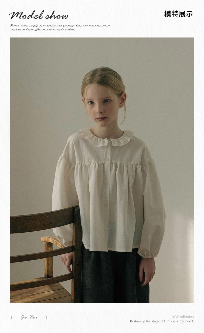 预售 2025秋冬Lou新款女童百搭纯棉长袖衬衣可爱木耳边小碎花上衣