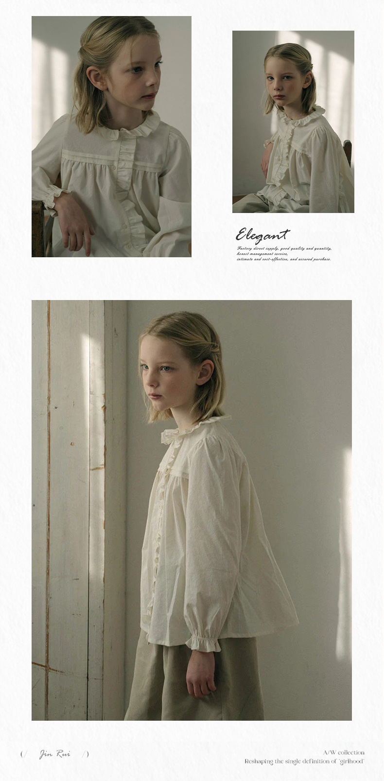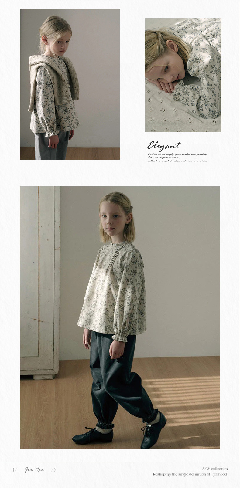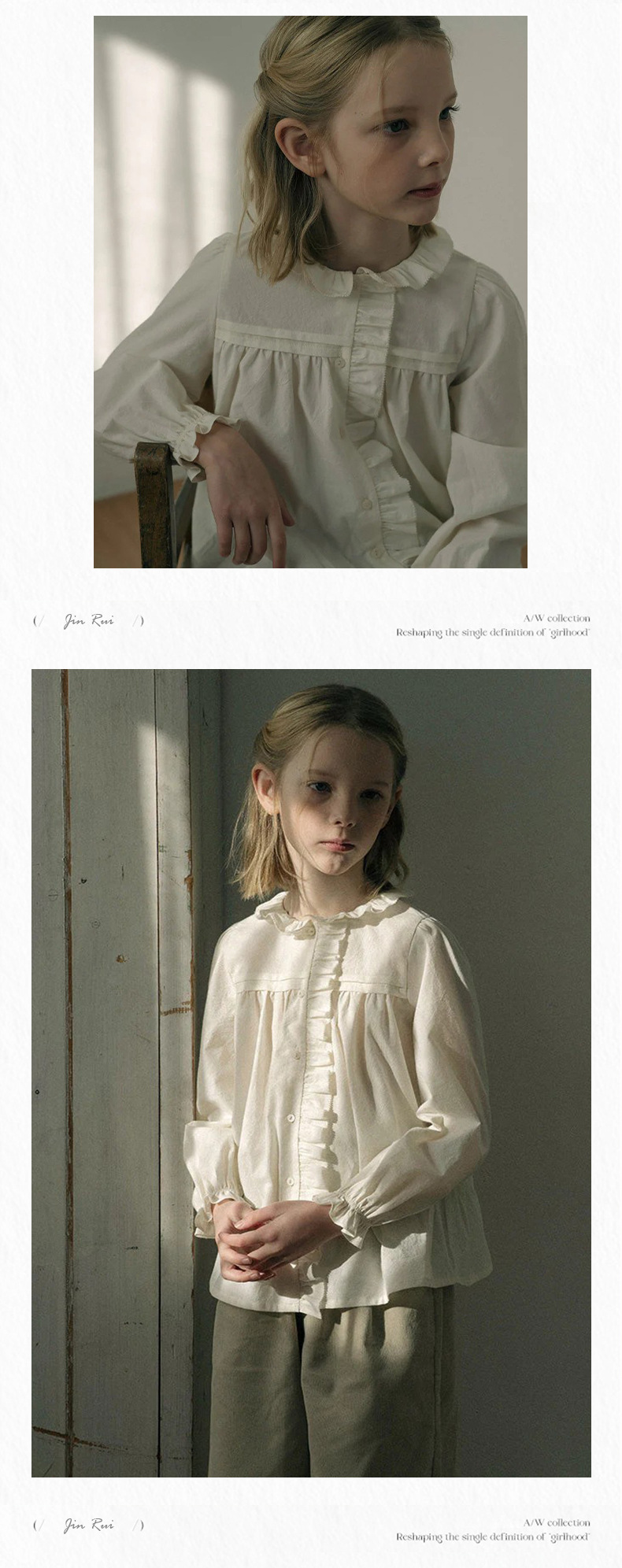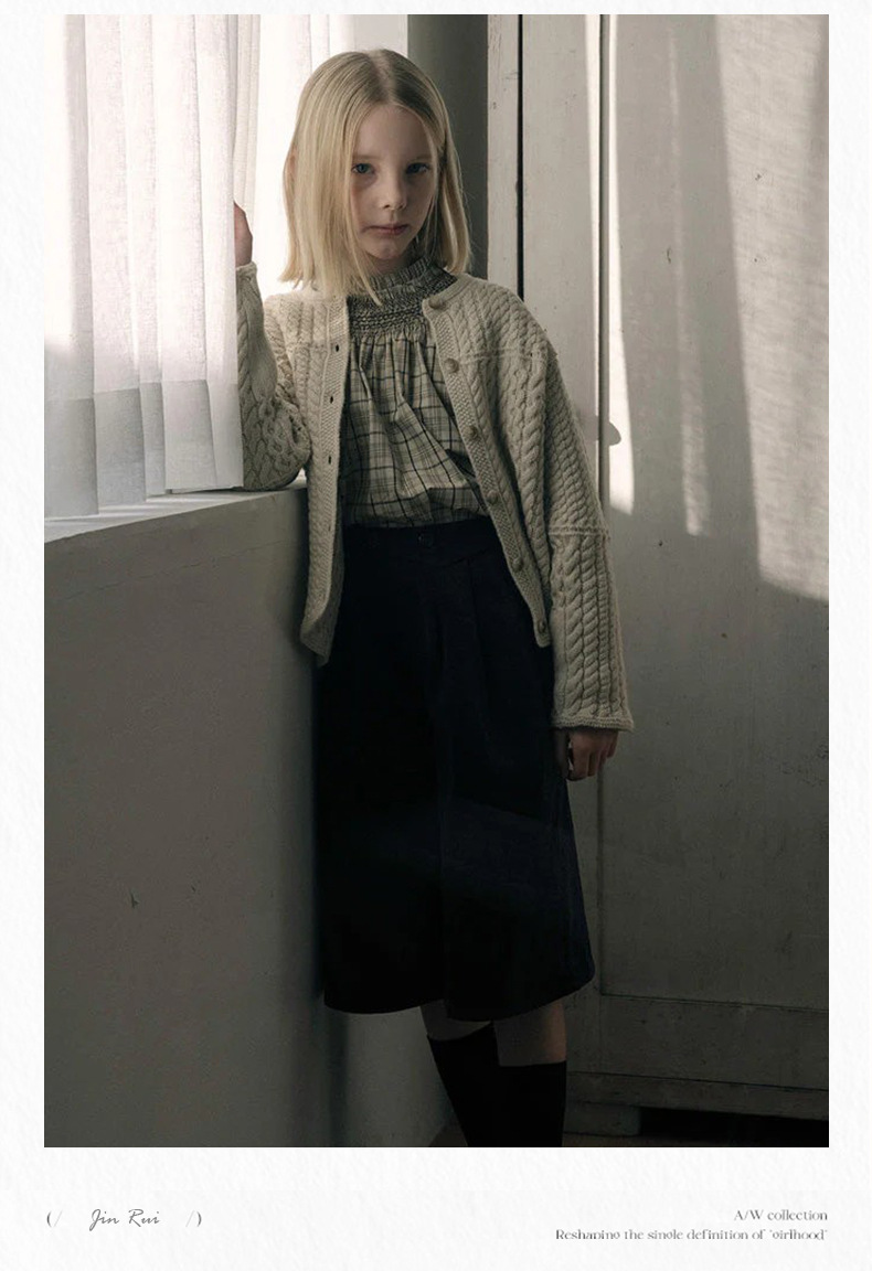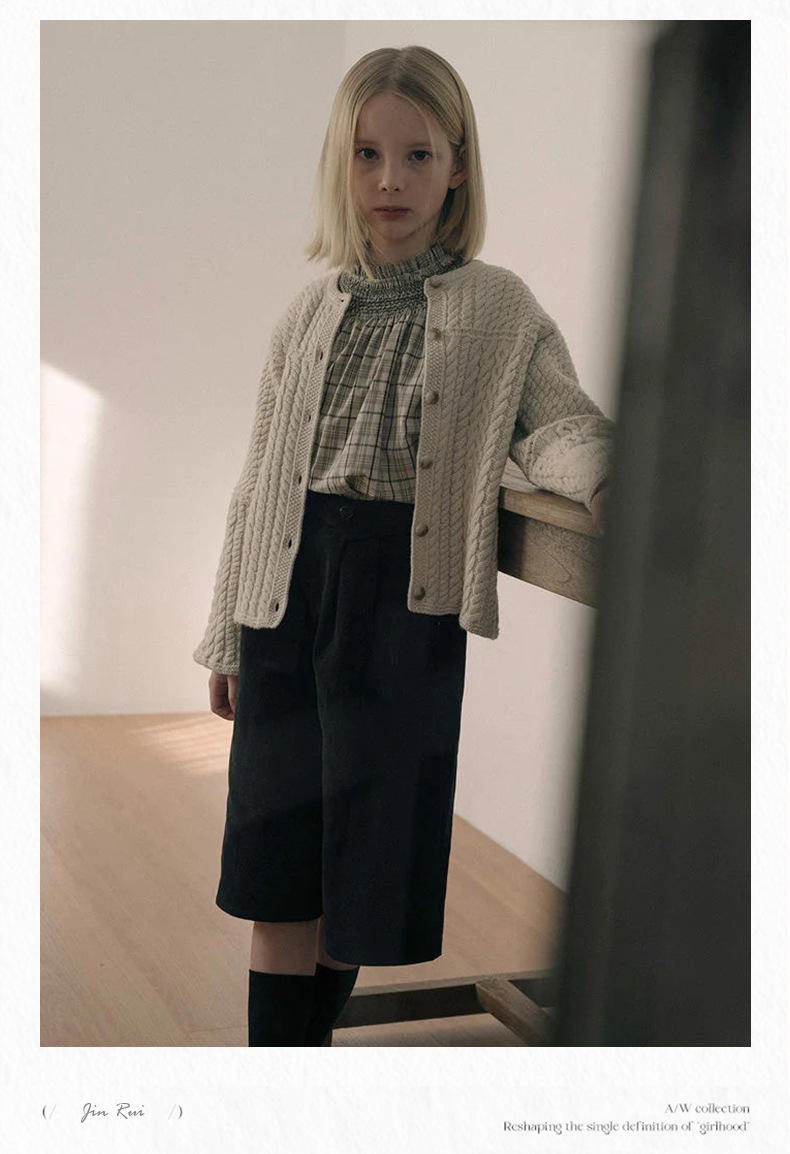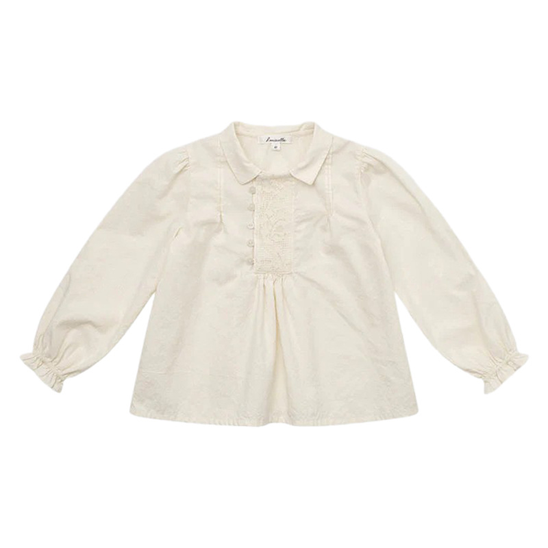 预售 2025秋冬Lou新款女童百搭纯棉长袖衬衣可爱木耳边小碎花上衣