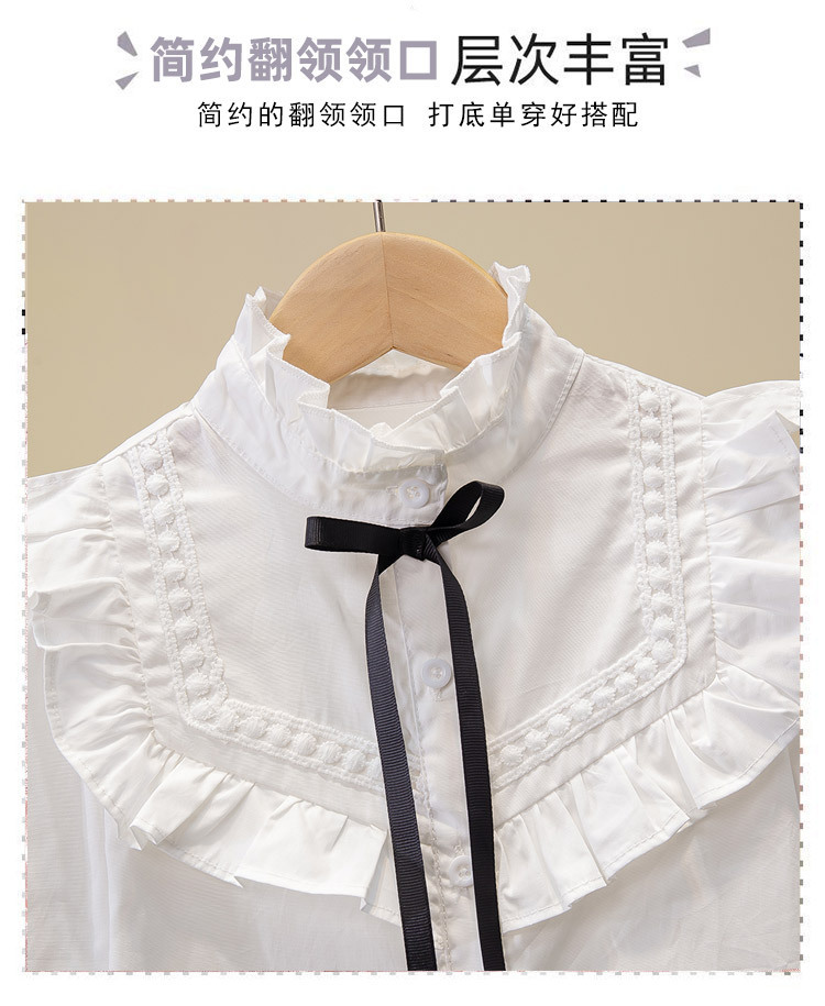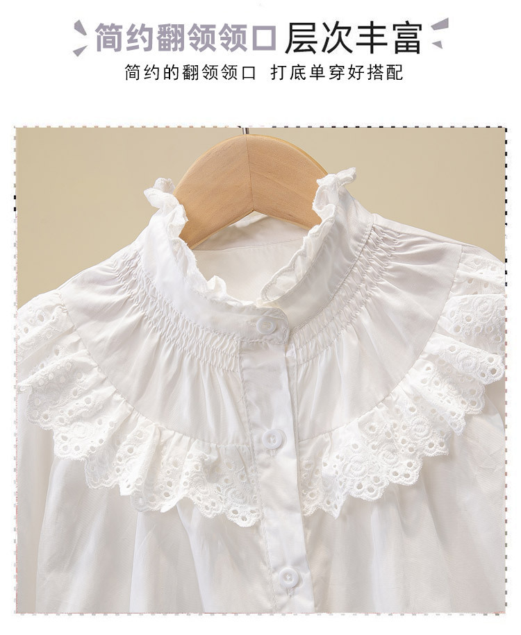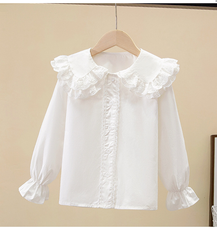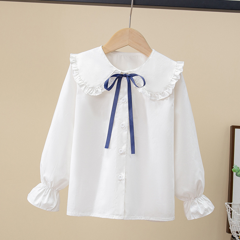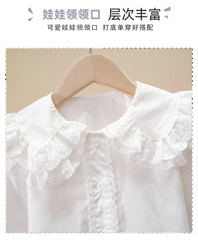 女童白衬衫春秋花边新款上衣儿童娃娃领纯棉韩版衬衣女学生女