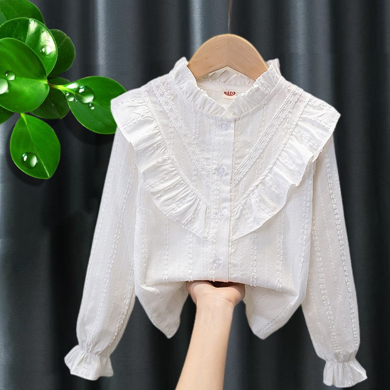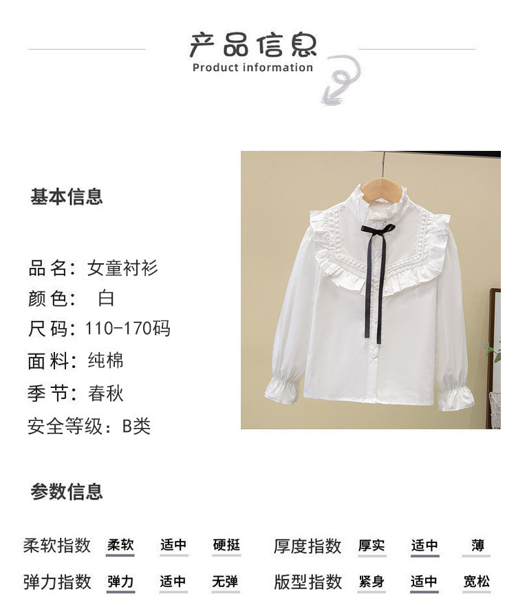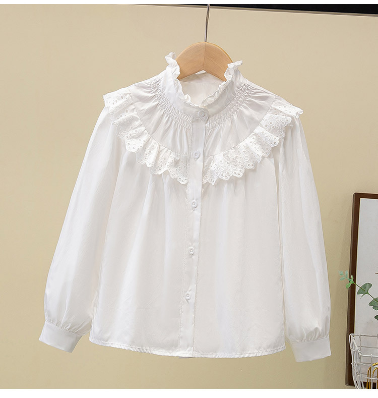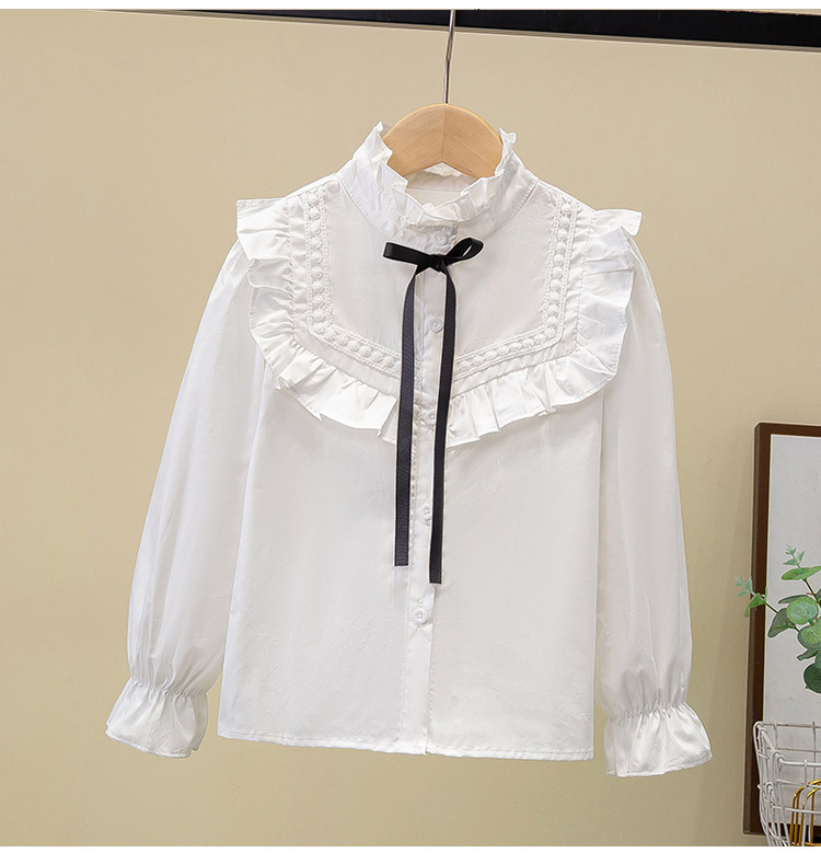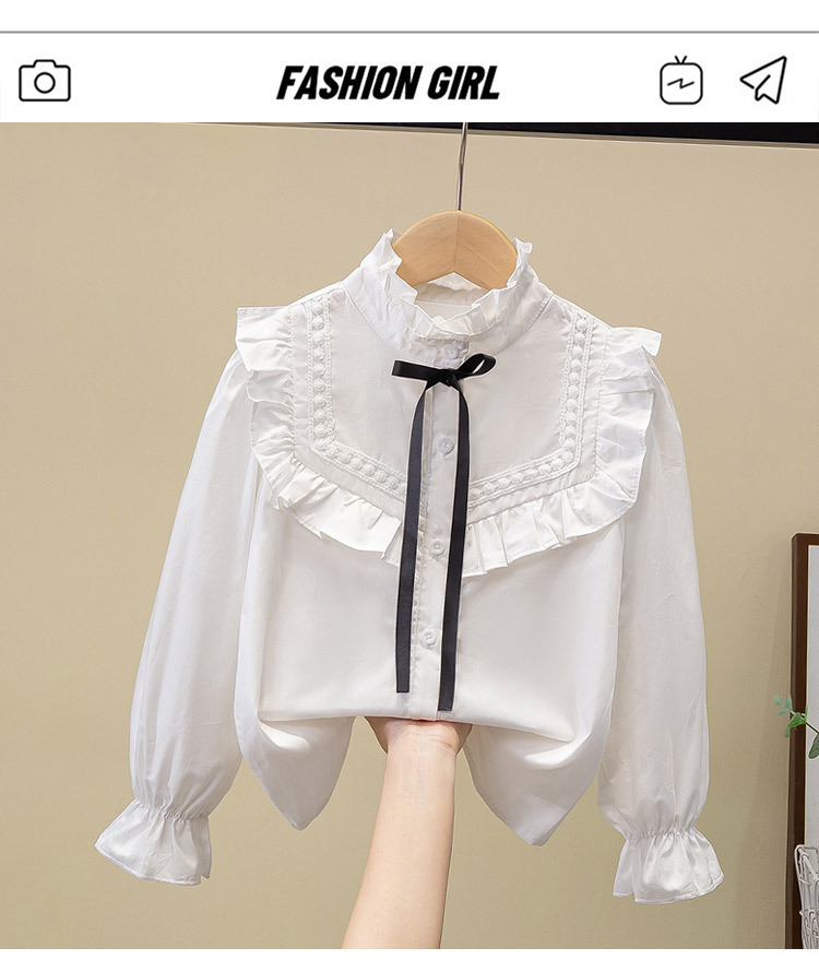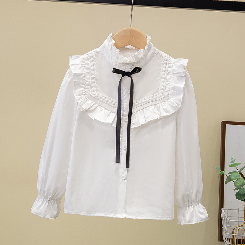 女童白衬衫春秋花边新款上衣儿童娃娃领纯棉韩版衬衣女学生女
