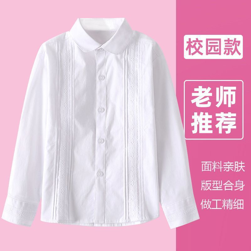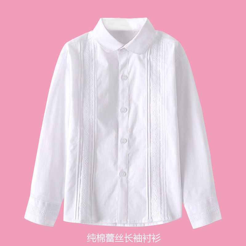 女童白色长袖衬衫中大儿童女孩纯棉圆领蕾丝衬衣小学生表演出校服