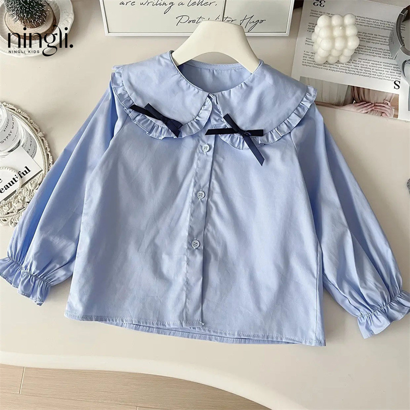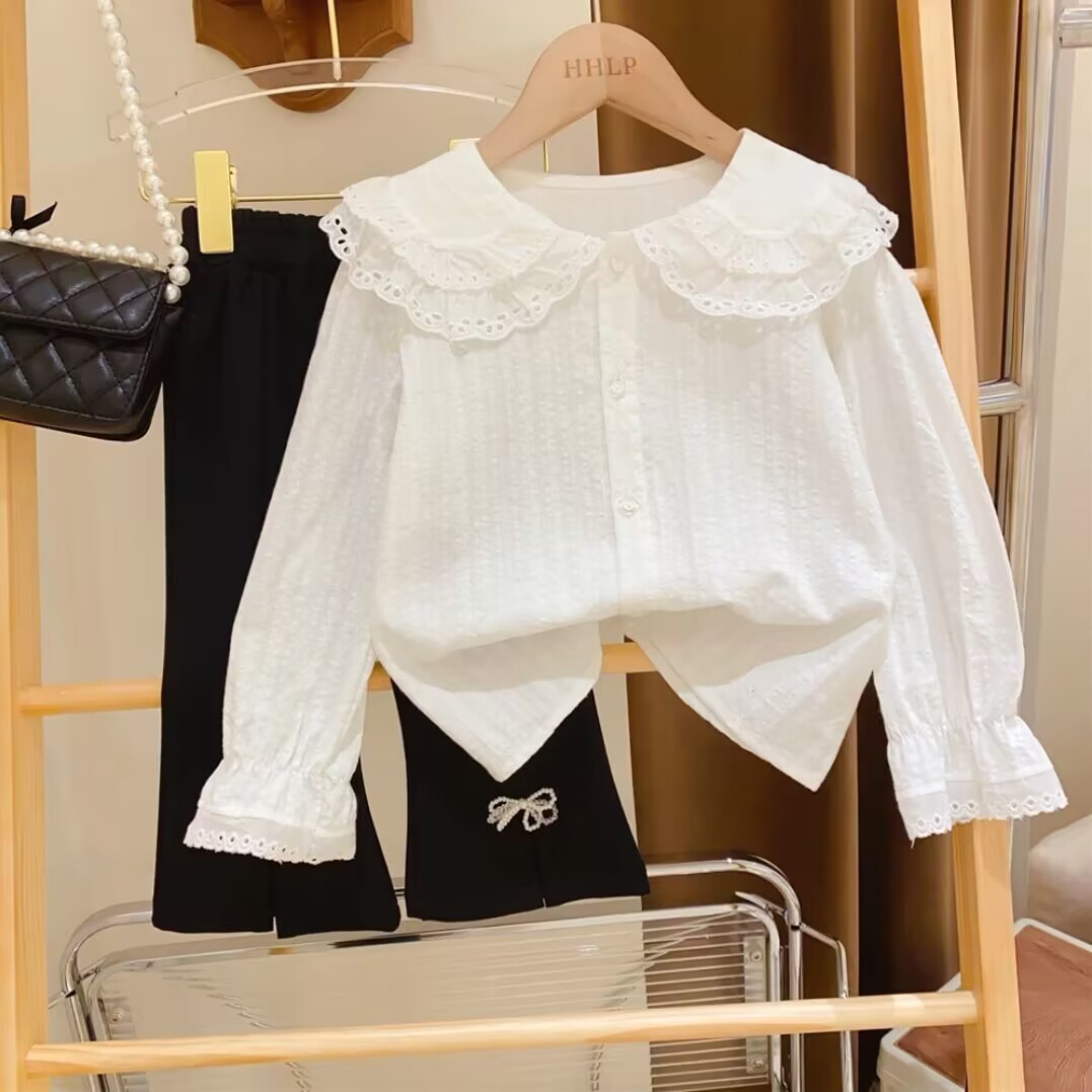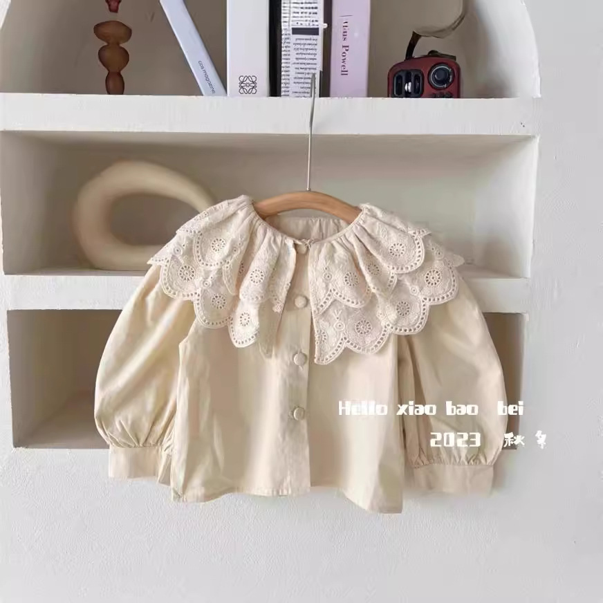 柠里韩版女童衬衫秋季新款洋气甜美时尚女宝宝娃娃领刺绣翻领上衣