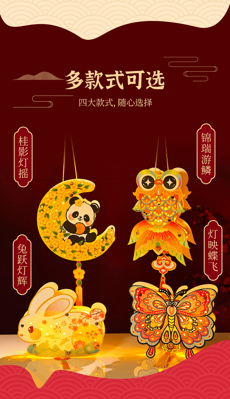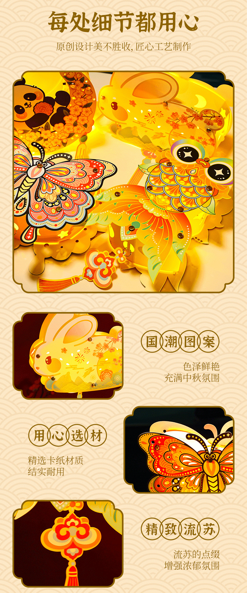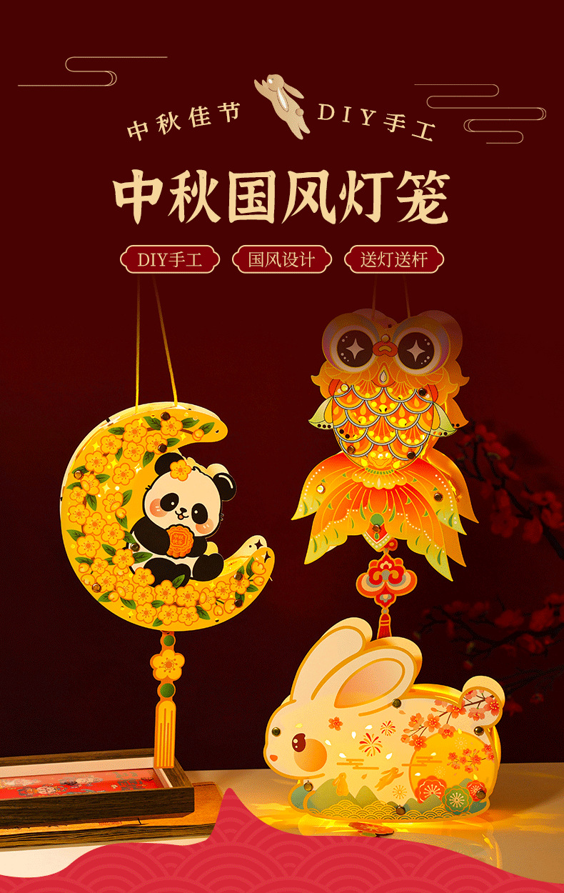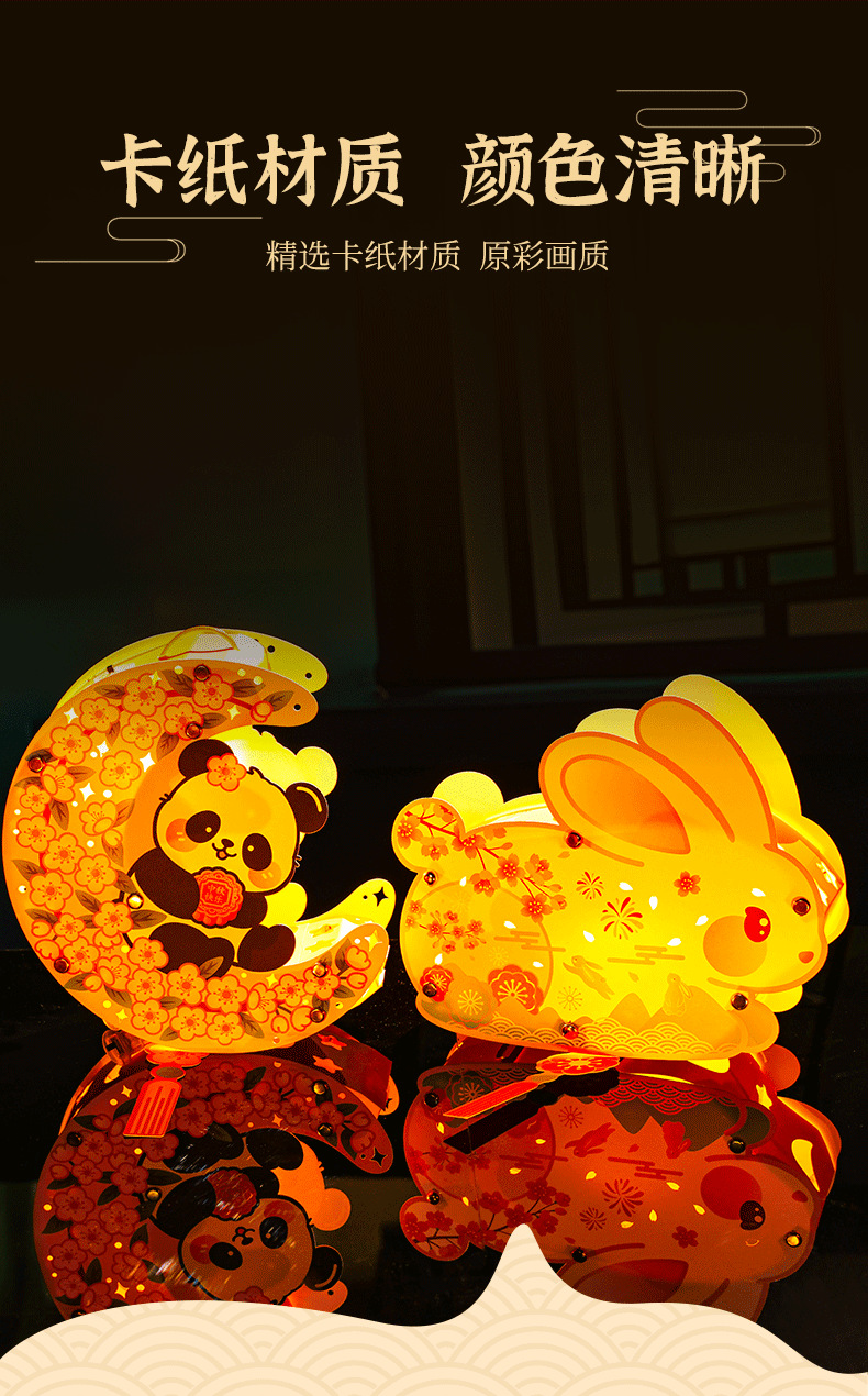 中秋灯笼幼儿园儿童手提发光兔子花灯手工DIY材料包投影提灯摆摊