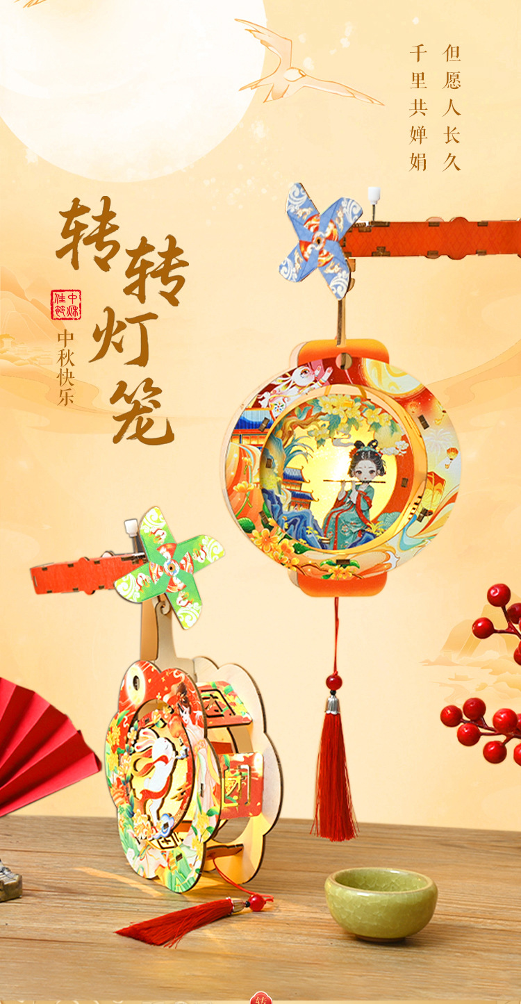 2025中秋节灯笼儿童手提转转发光花灯diy手工材料包蛇年宫灯亲子