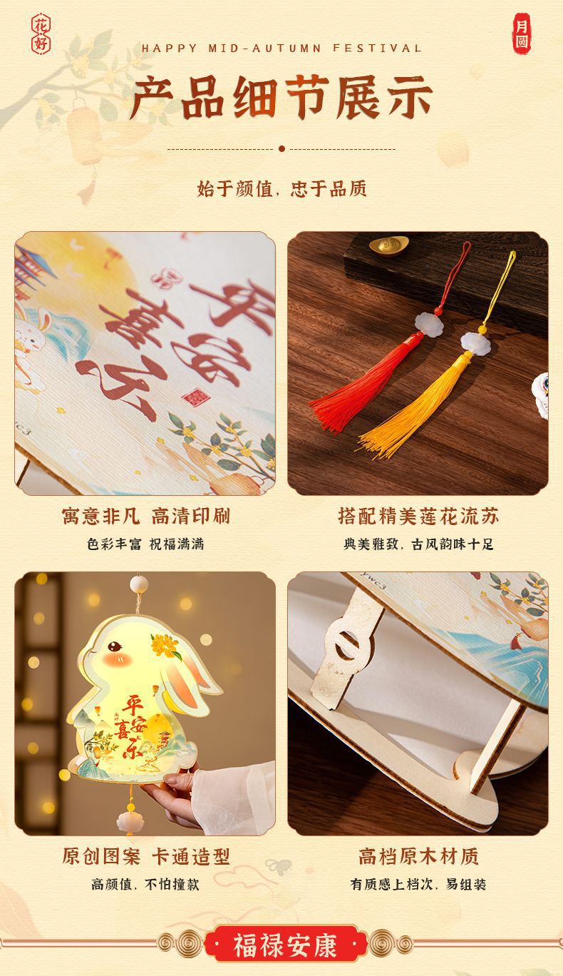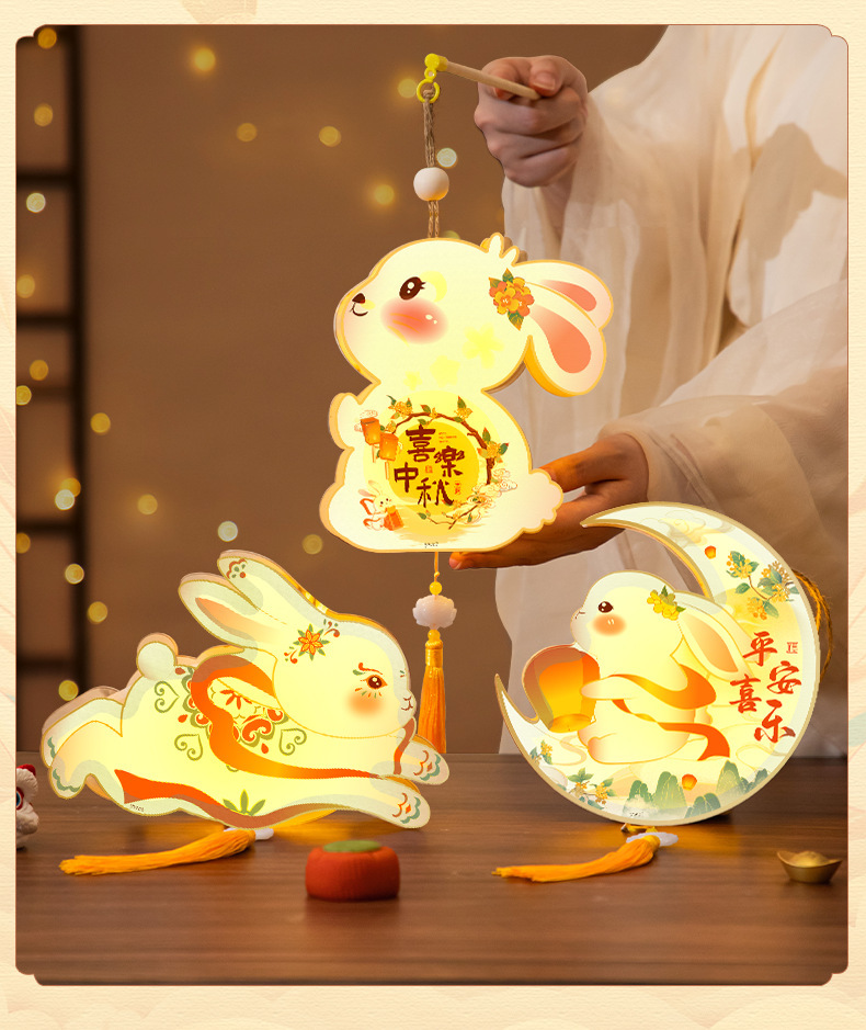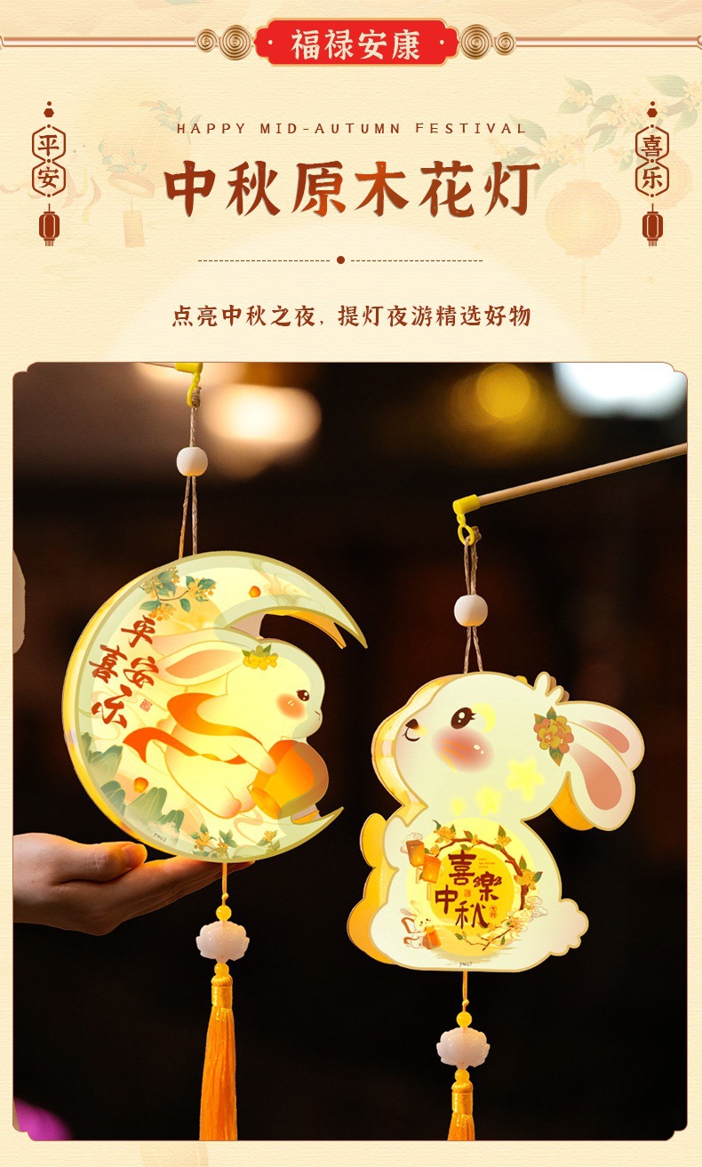 2025新款中秋灯笼儿童幼儿园手工diy材料亲子小兔子古风手提花灯