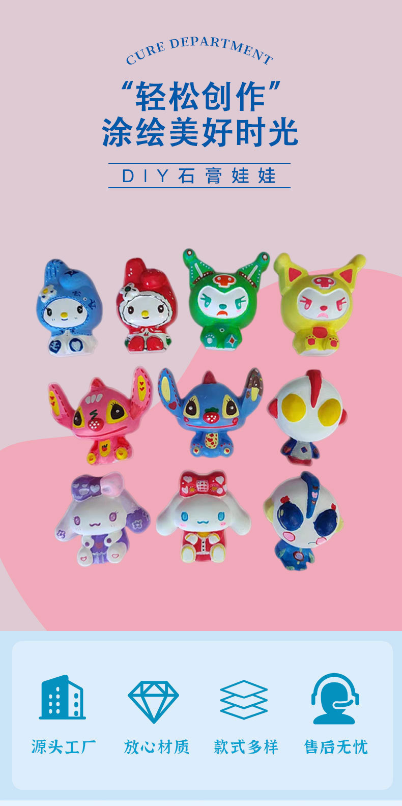 卡通石膏娃娃白坯涂色彩绘DIY迷你公仔小号新款摆件儿童石膏填色