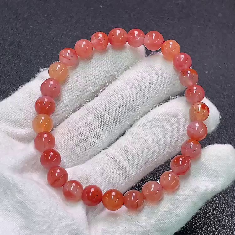 南红玛瑙手串货品总重约17.05克 卡7.7mm左右