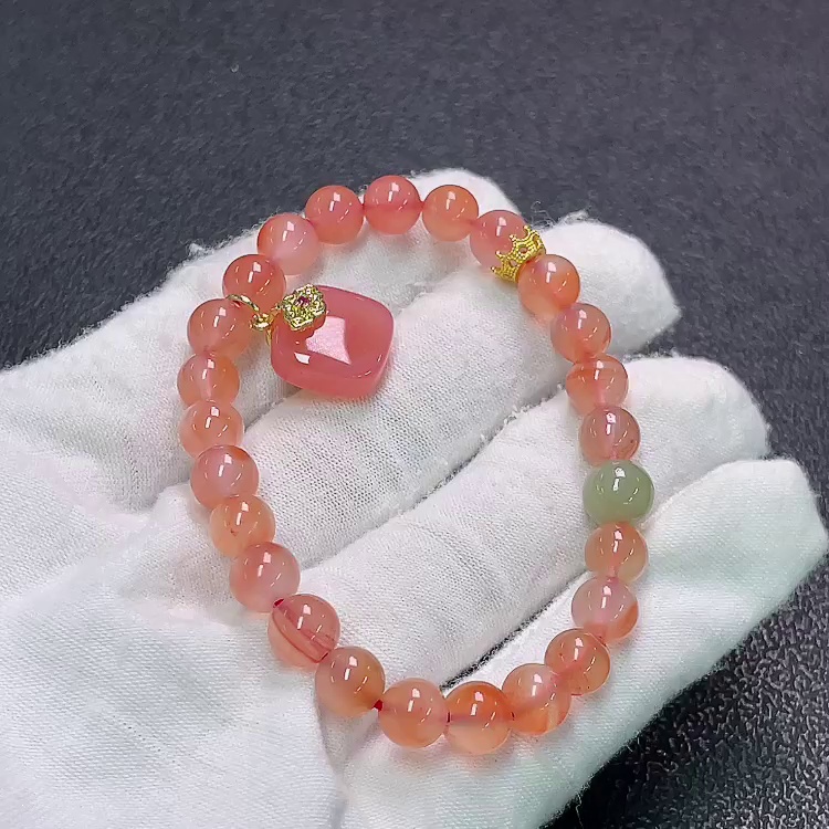 南红玛瑙手串 配和田玉 货品总重约15.82克 卡7.1mm左右工艺品