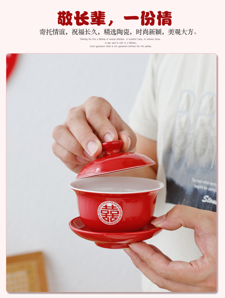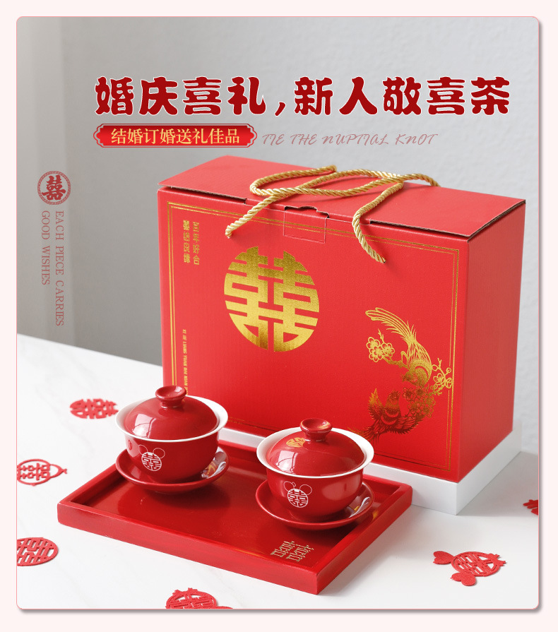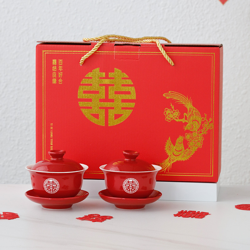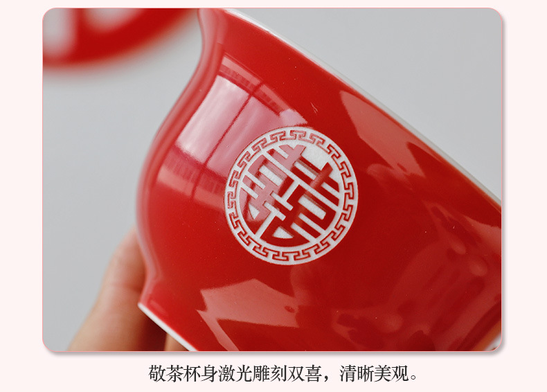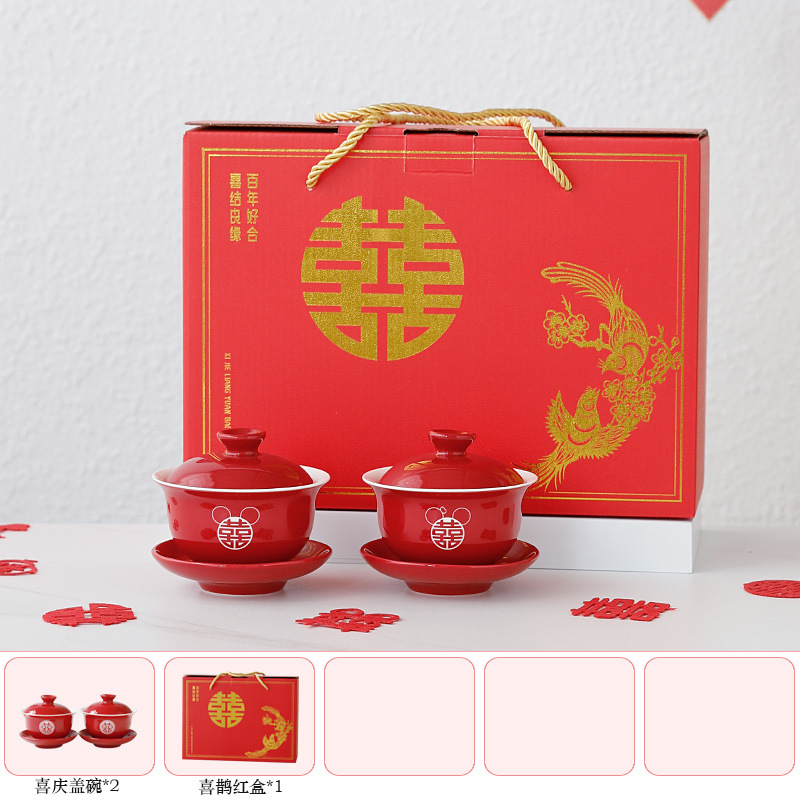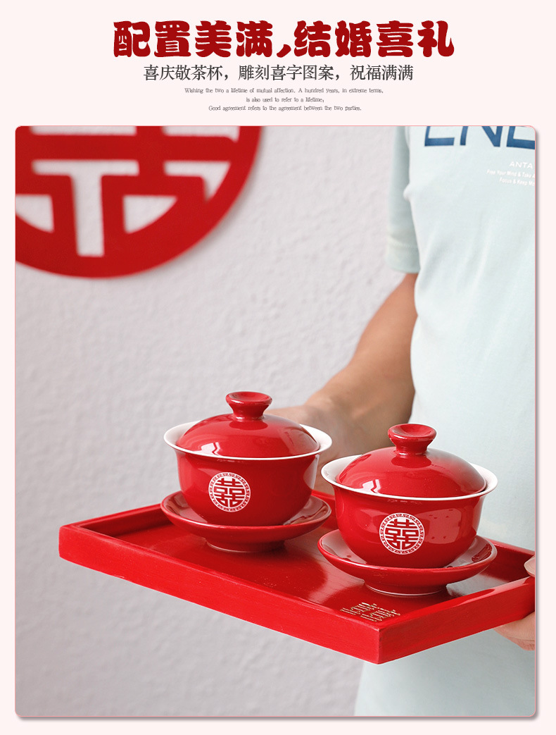 陶瓷改口敬酒敬茶杯茶具碗筷套装结婚喜碗陪嫁喜茶杯红喜盖碗一对