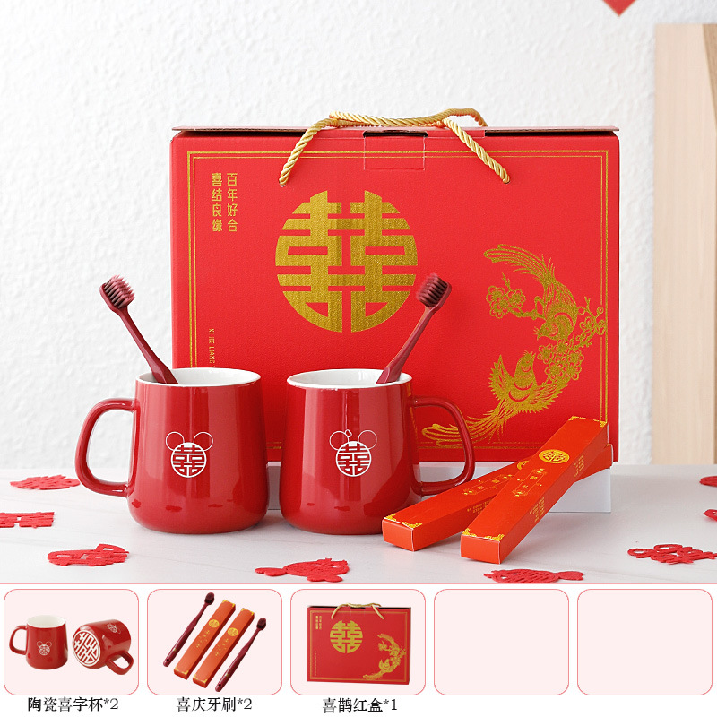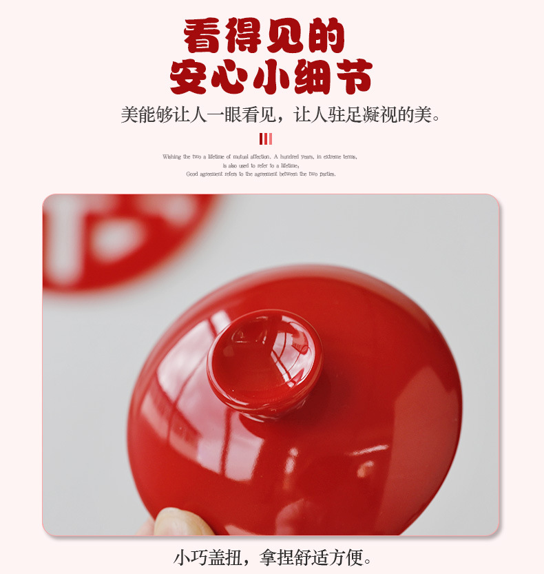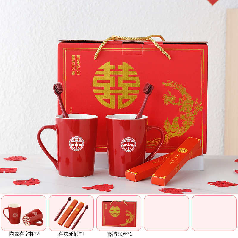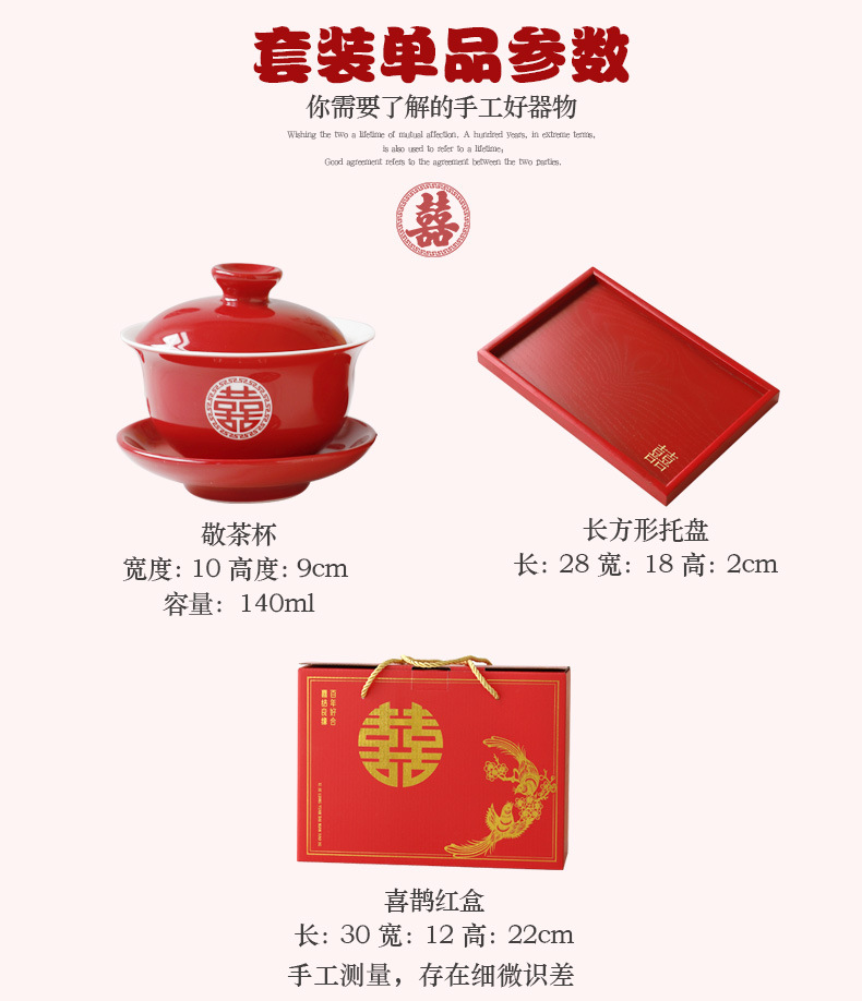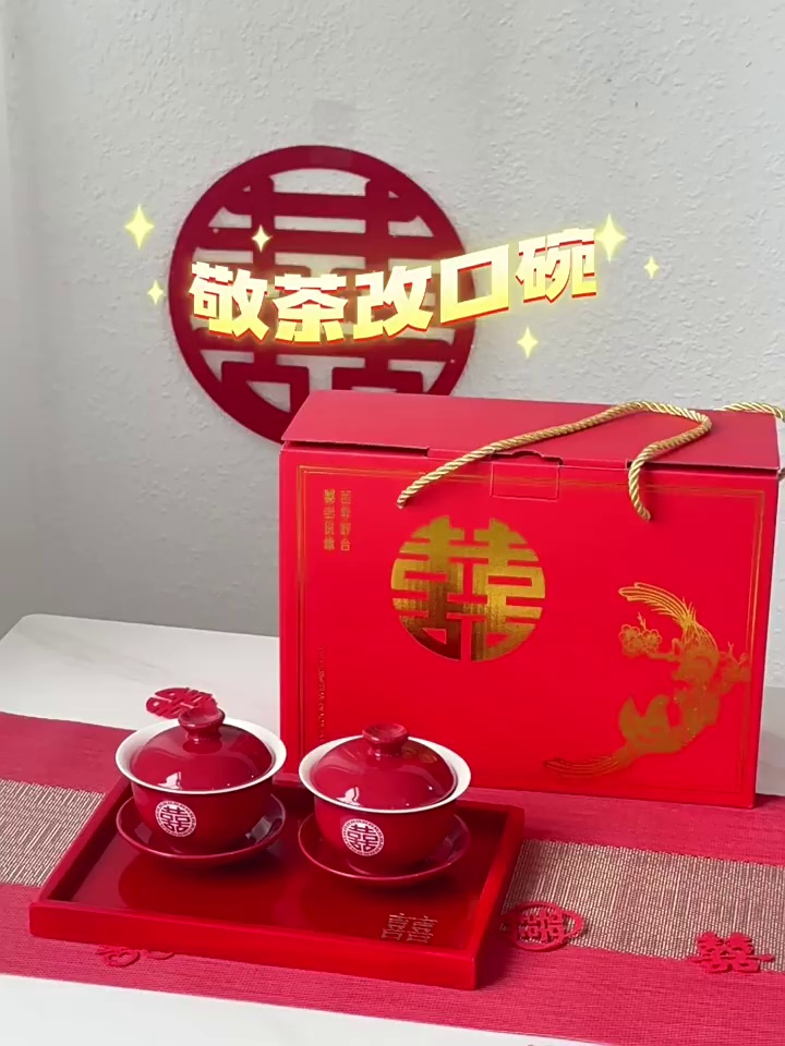 陶瓷改口敬酒敬茶杯茶具碗筷套装结婚喜碗陪嫁喜茶杯红喜盖碗一对