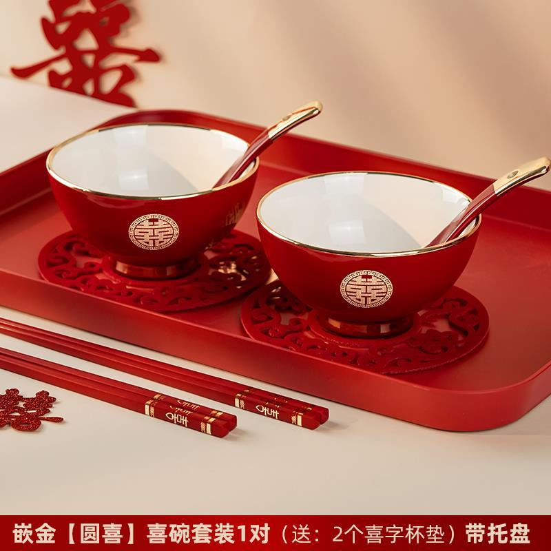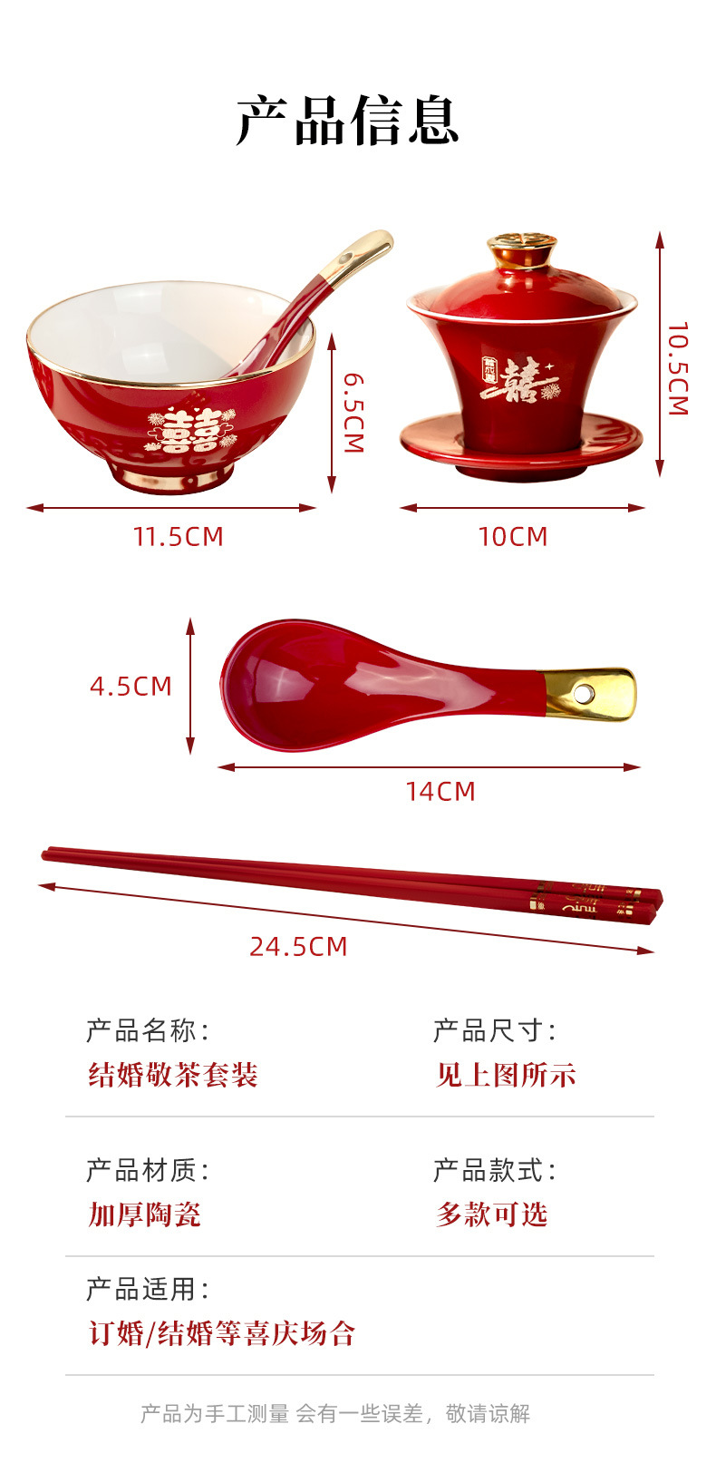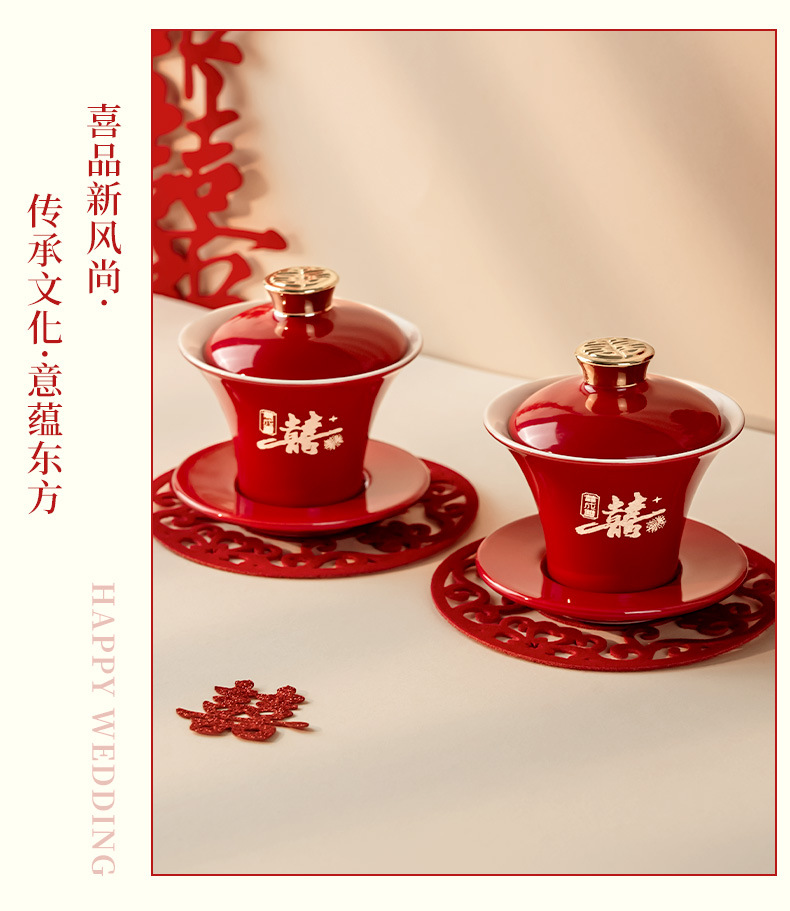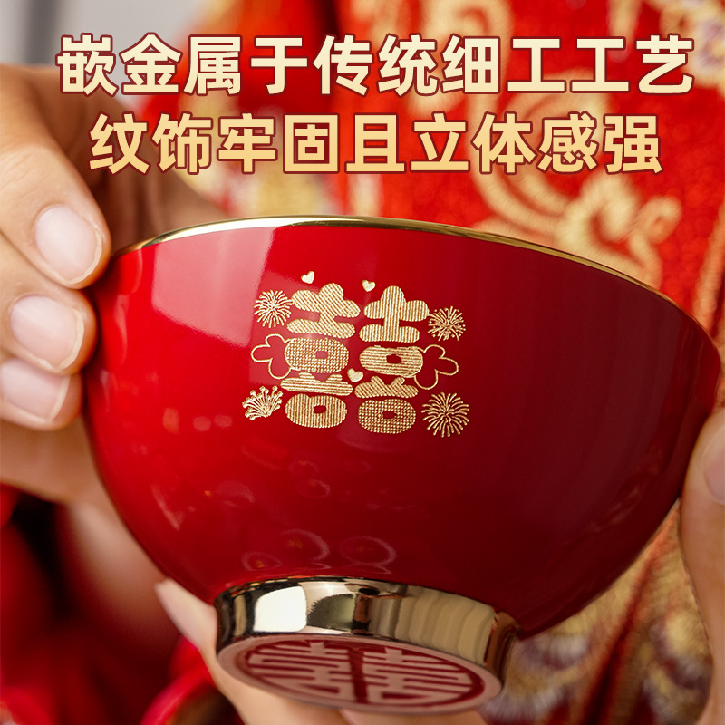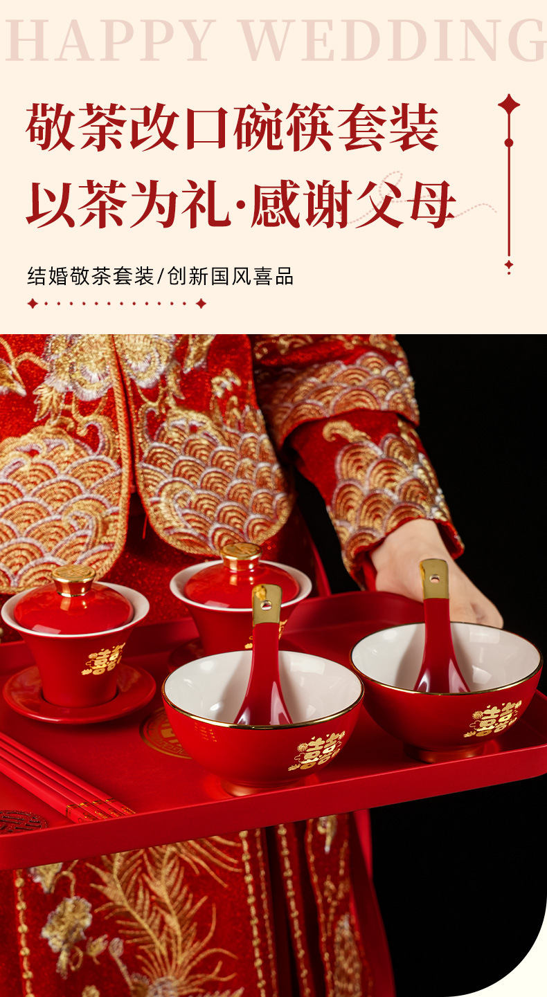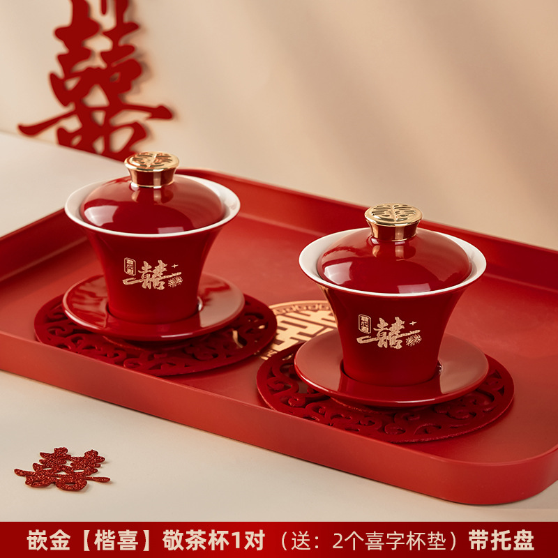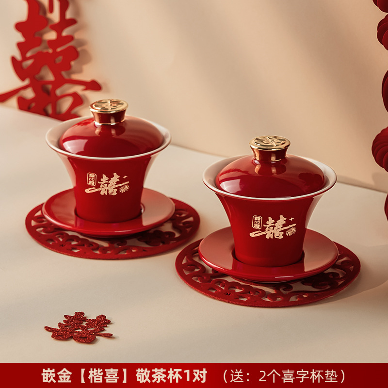 婚礼敬茶改口红色杯子一对高级套装新婚陪嫁喜碗茶具结婚用品大全