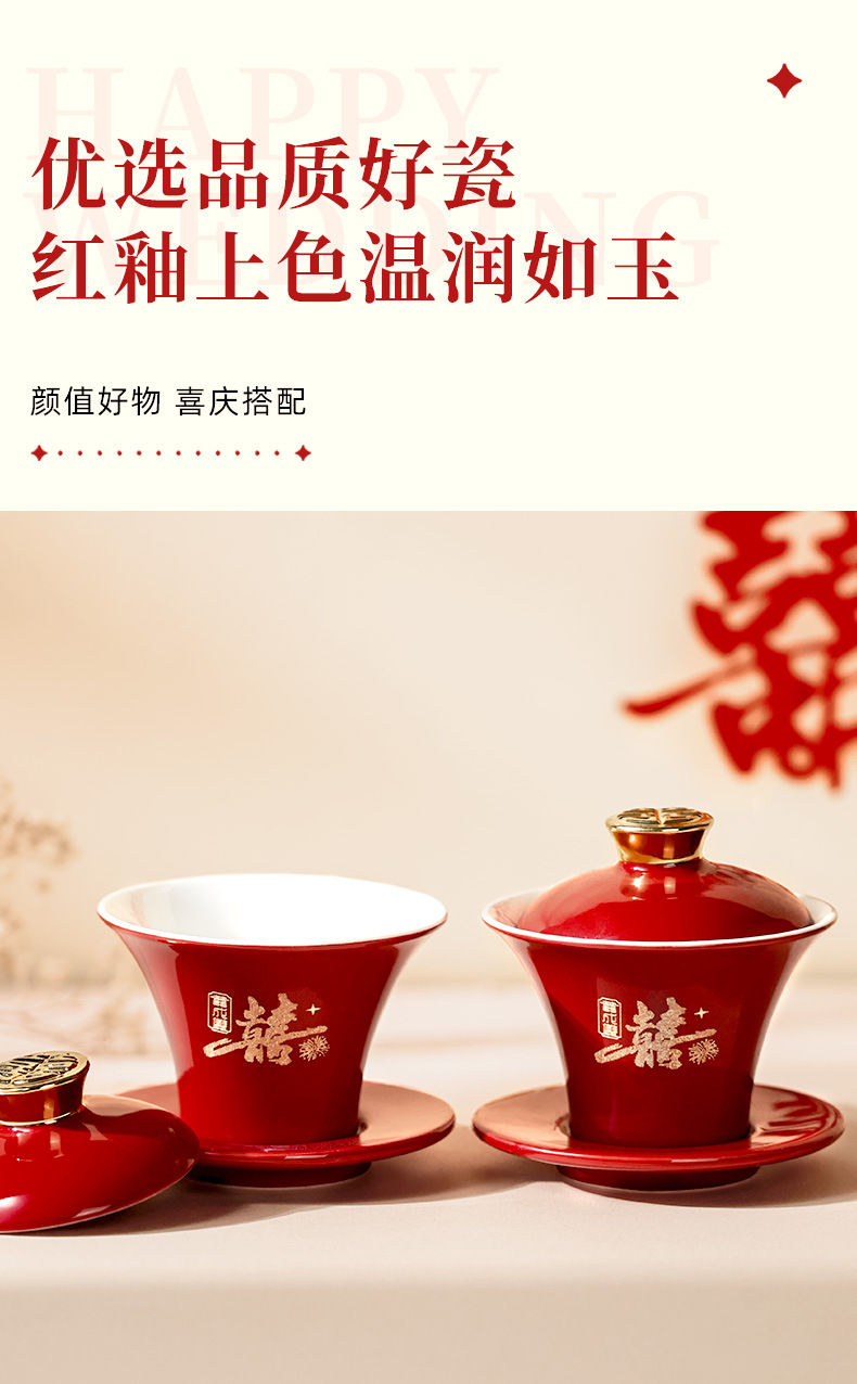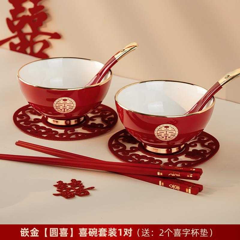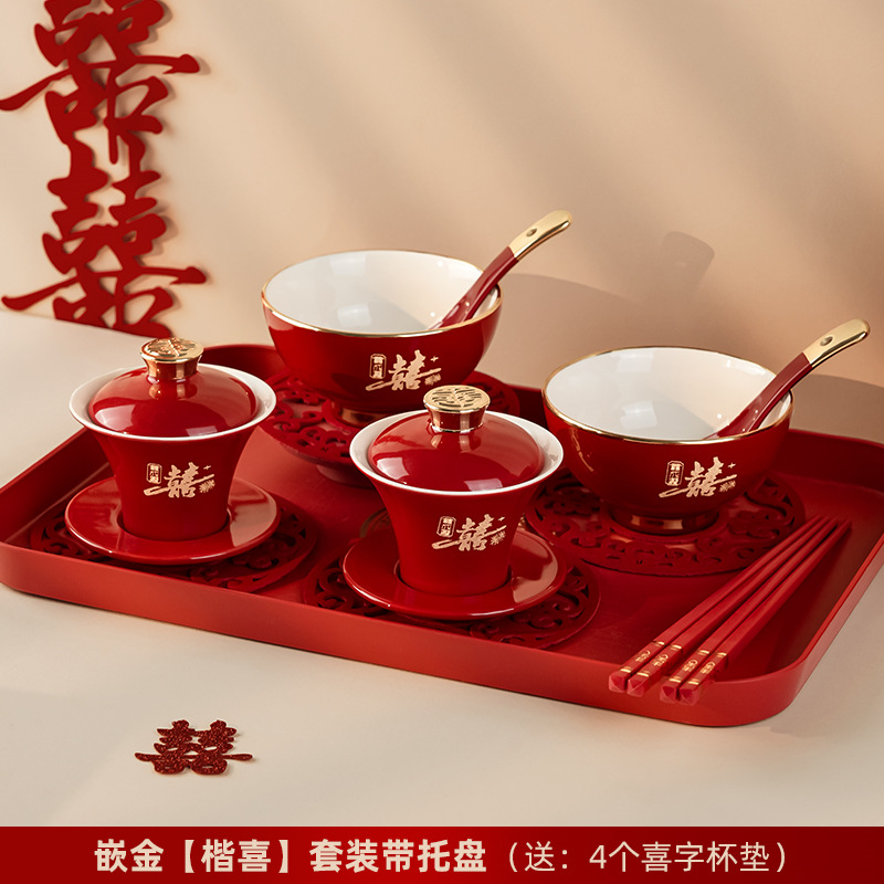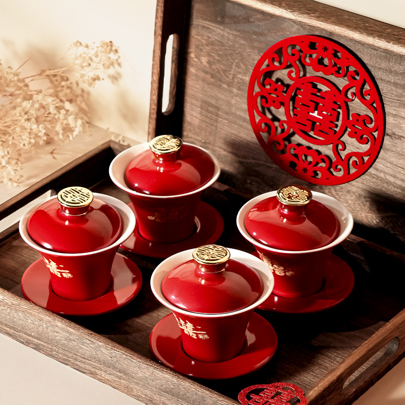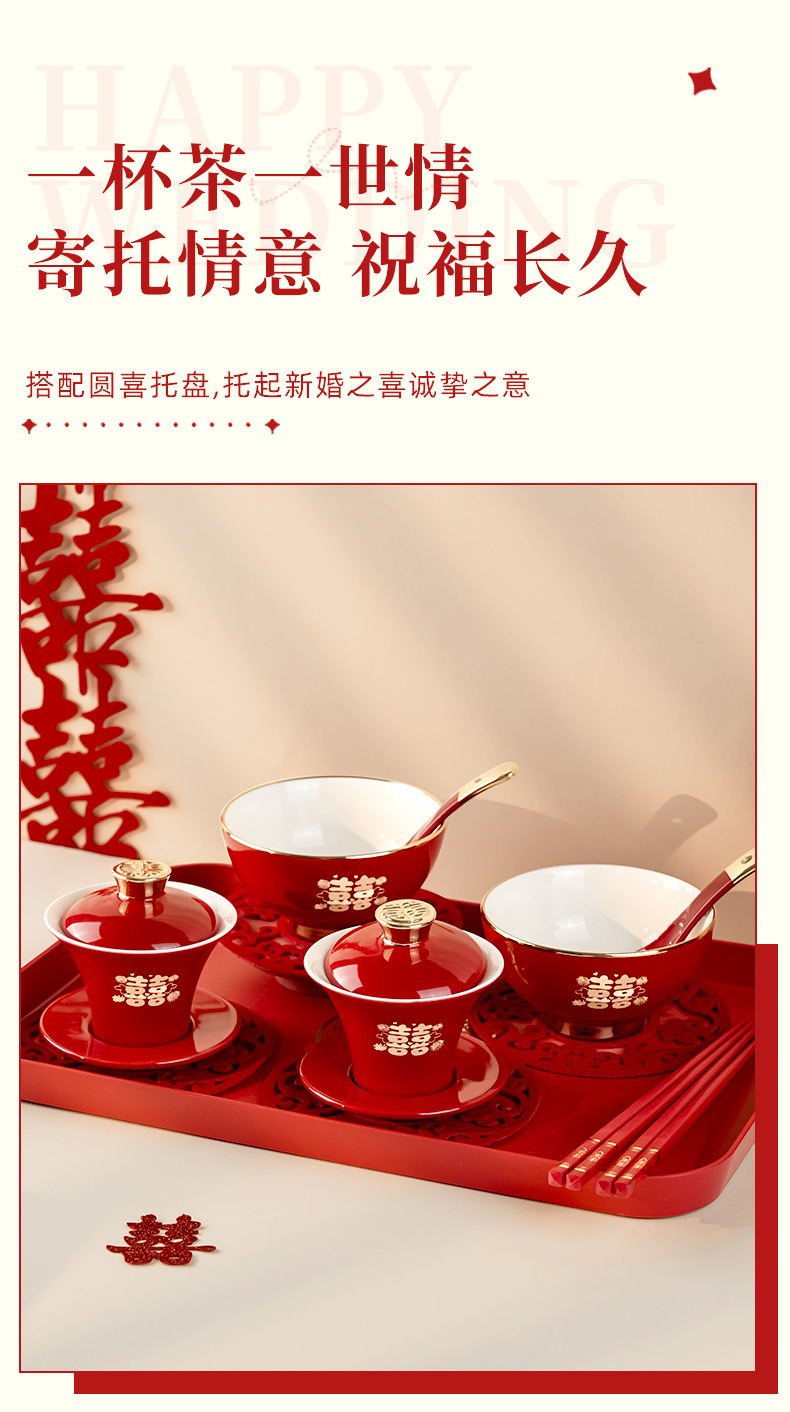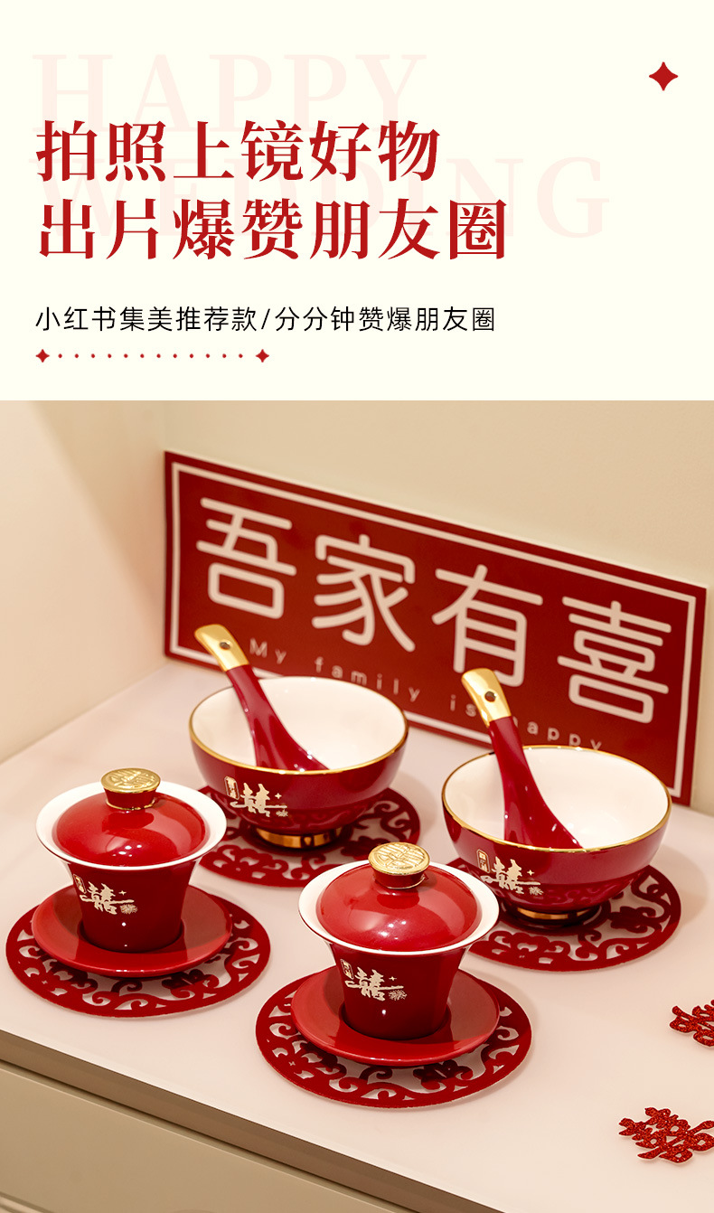 婚礼敬茶改口红色杯子一对高级套装新婚陪嫁喜碗茶具结婚用品大全
