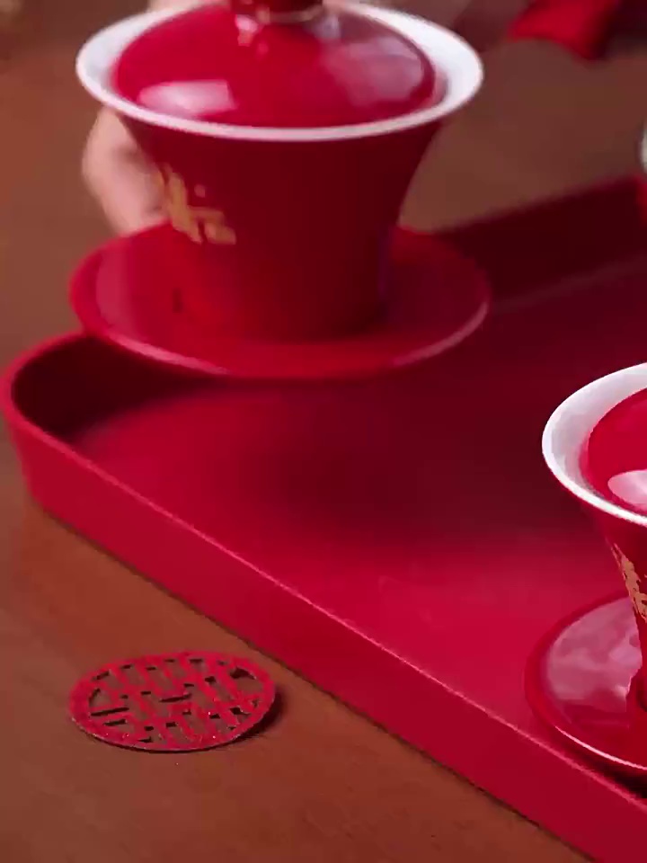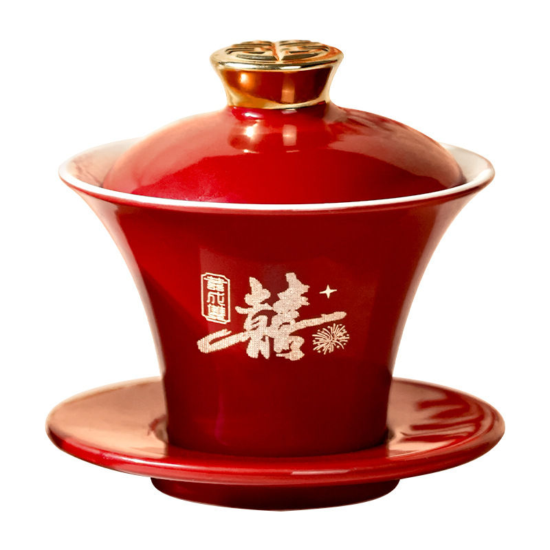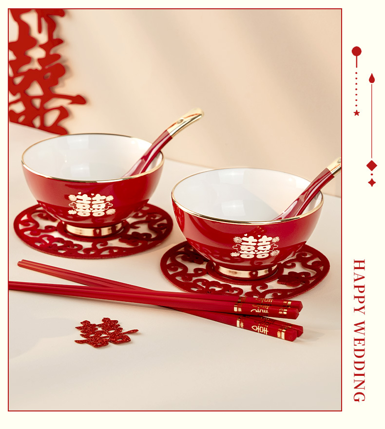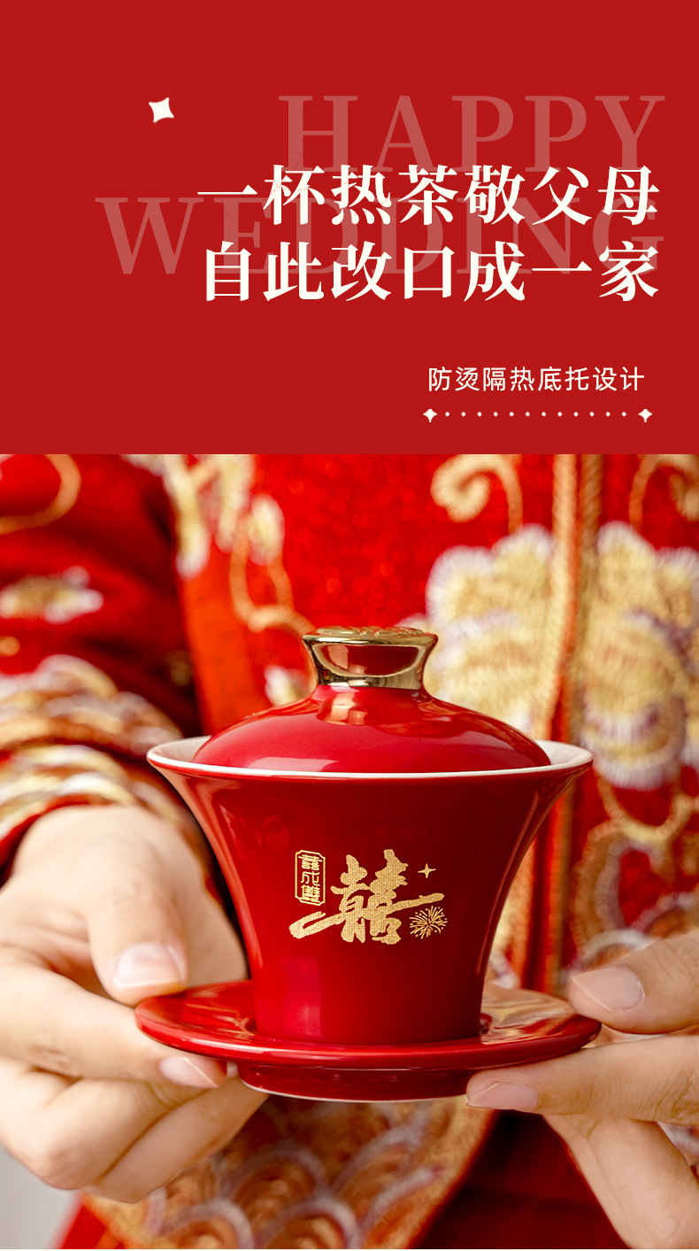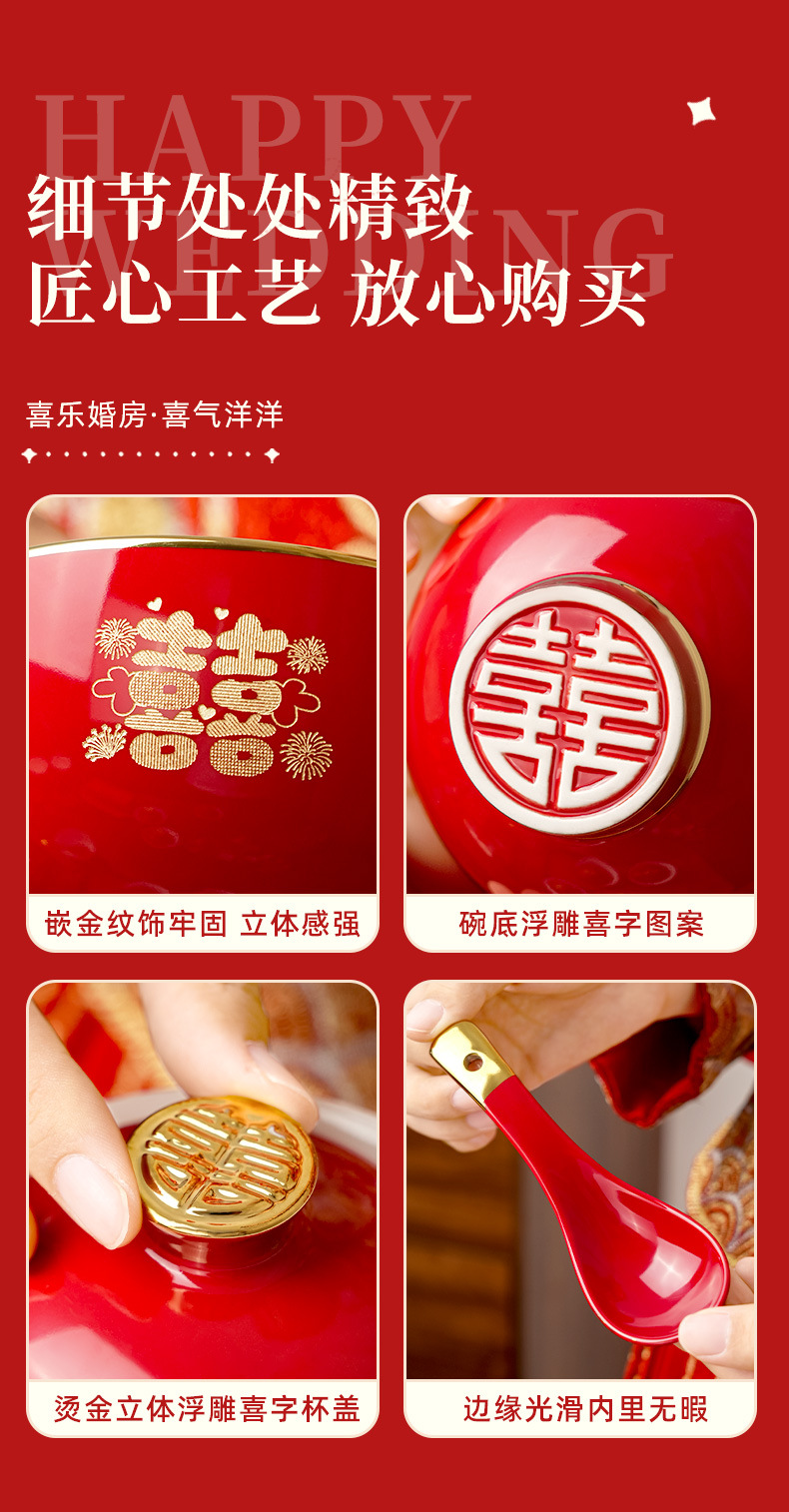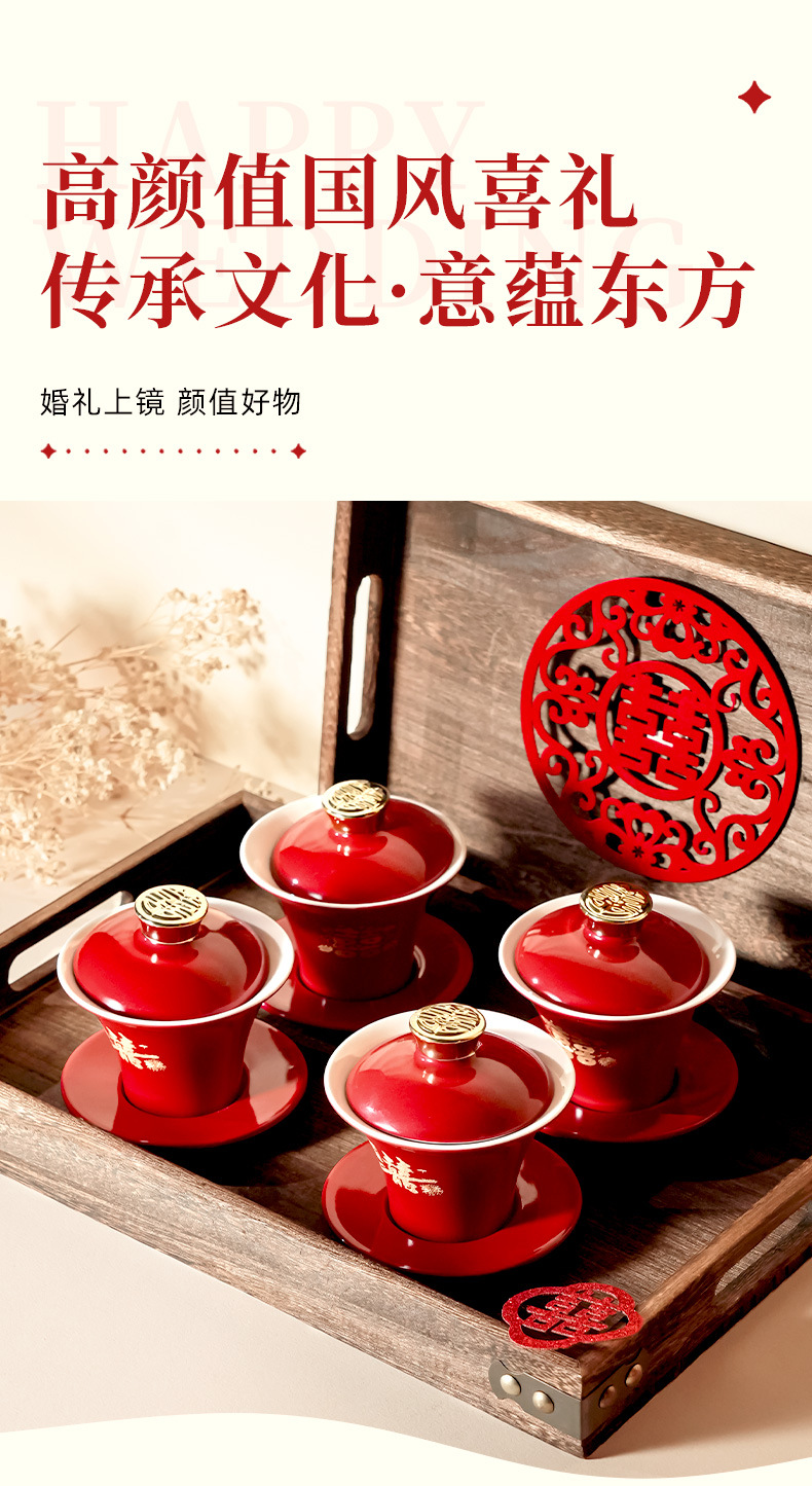 婚礼敬茶改口红色杯子一对高级套装新婚陪嫁喜碗茶具结婚用品大全