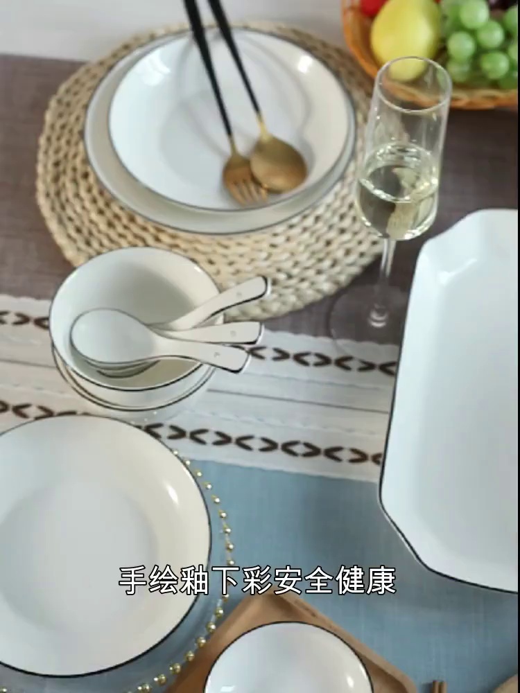 釉下彩陶瓷餐具菜碟简约北欧风网红碗盘家用碗碟套装微波炉吃饭碗